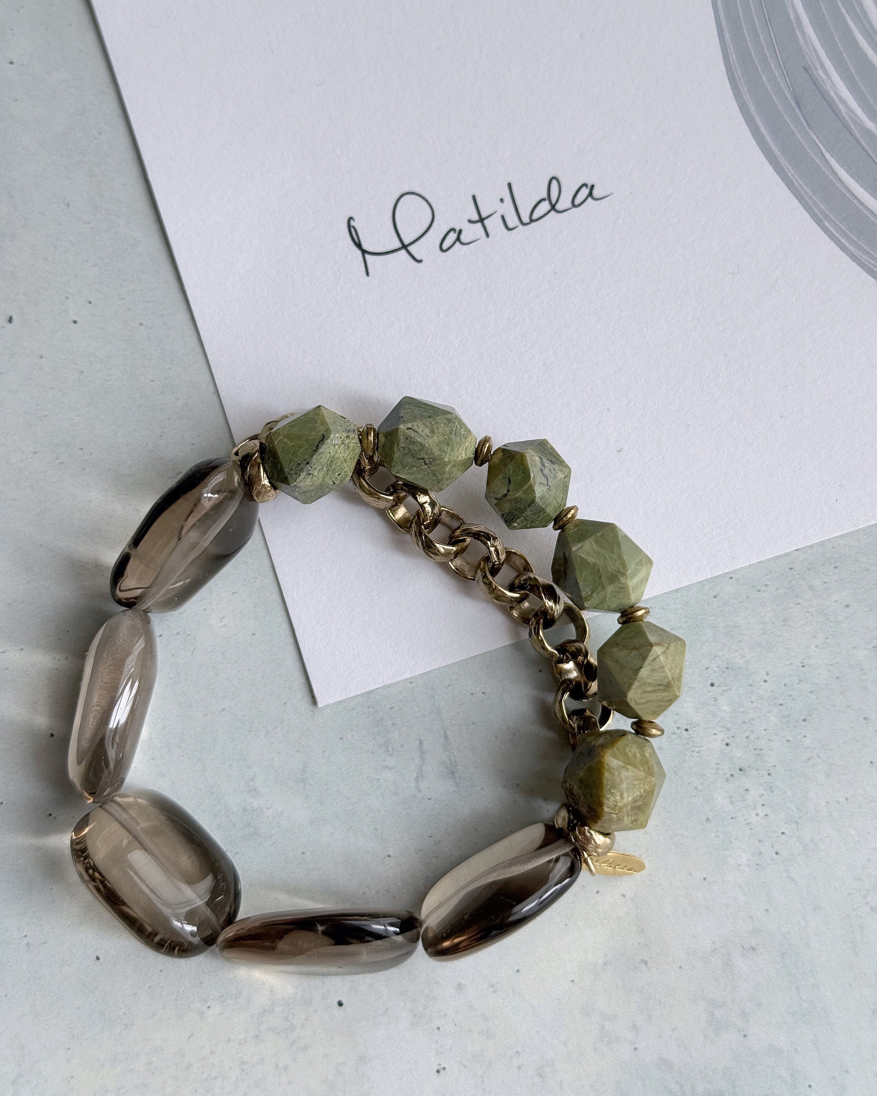 Chain & stone bracelet(グリーンオパール×スモーキークォーツ)