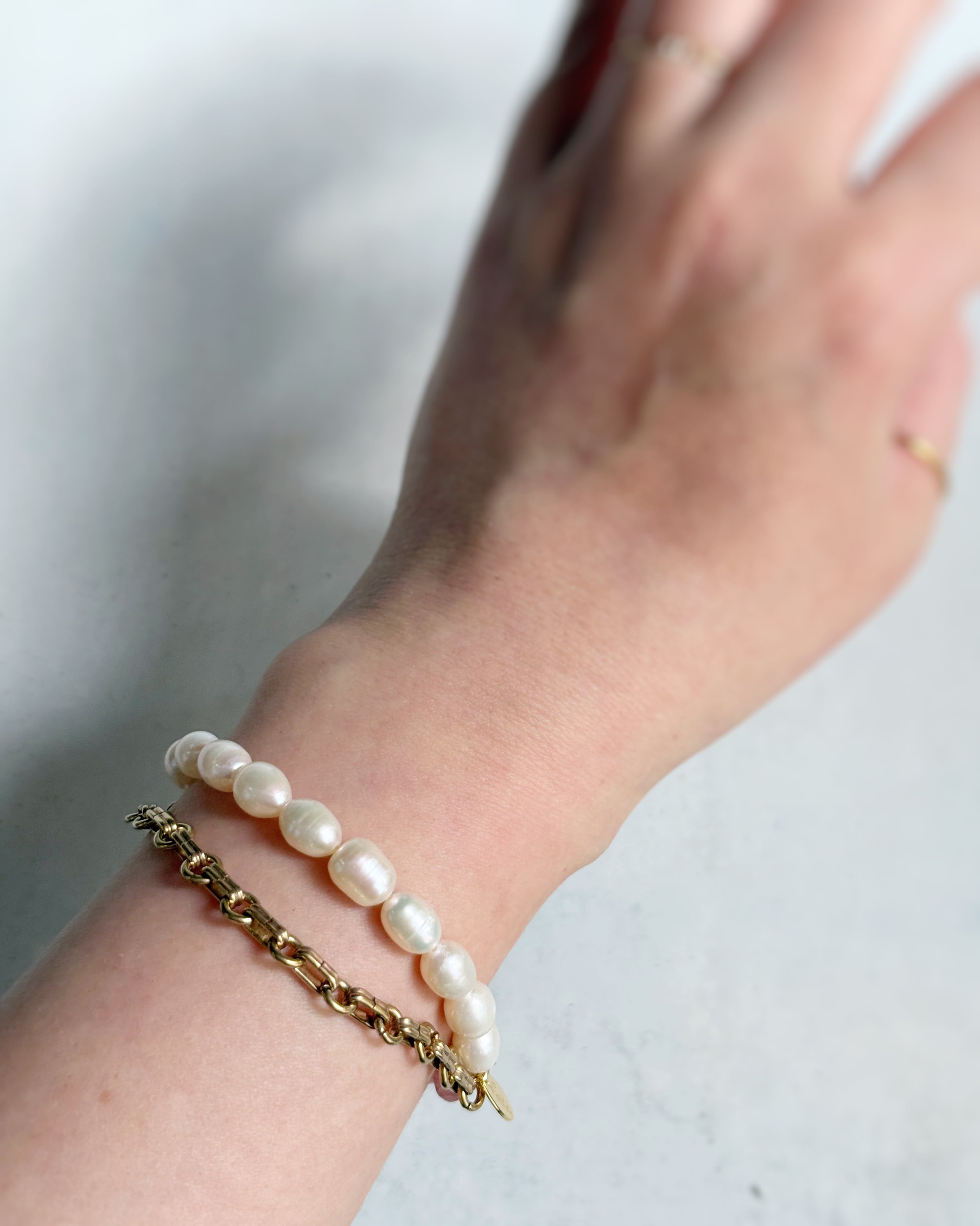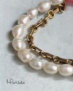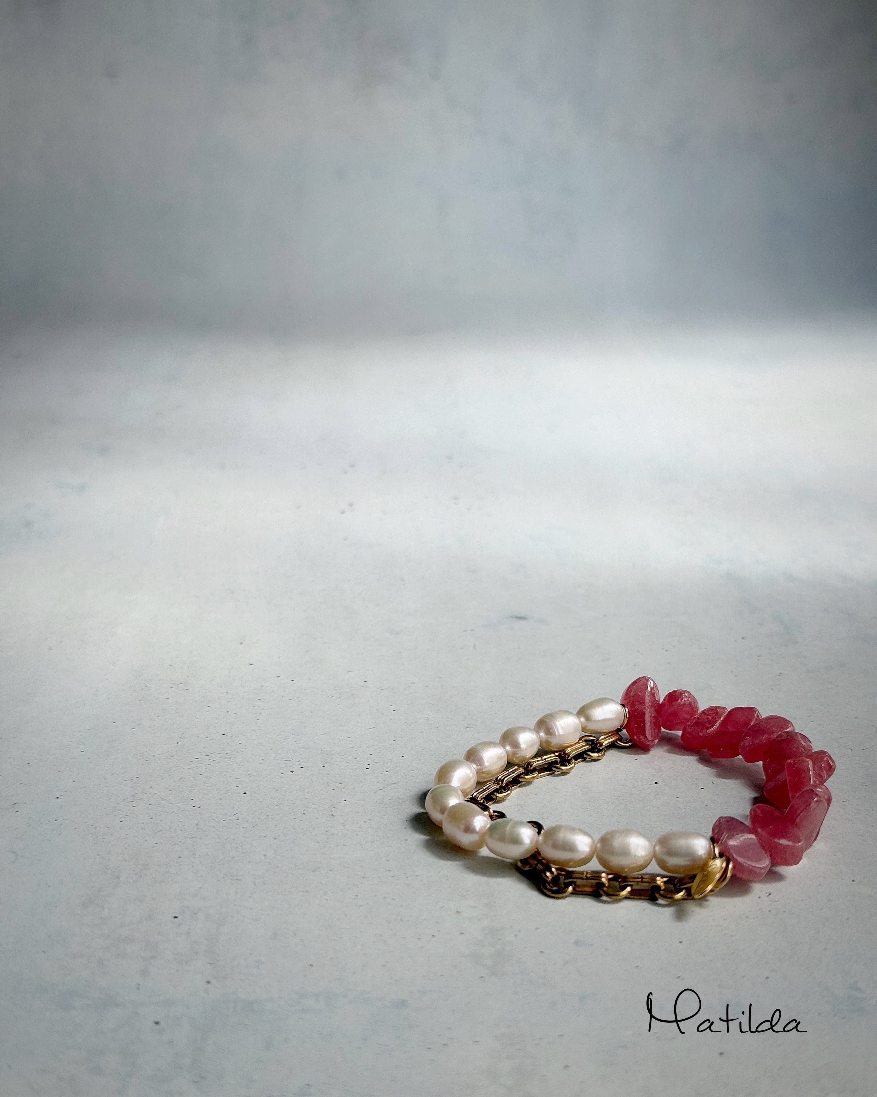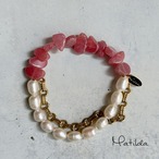 Chain & stone bracelet(ロードクロサイト×淡水パール)
