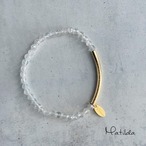 繊細に施されたカッティングの楚々としたきらめきと肌を透かす透明感が艶かしいホワイトトパーズにシックなゴールドカラーの真鍮ビーズを合わせて。