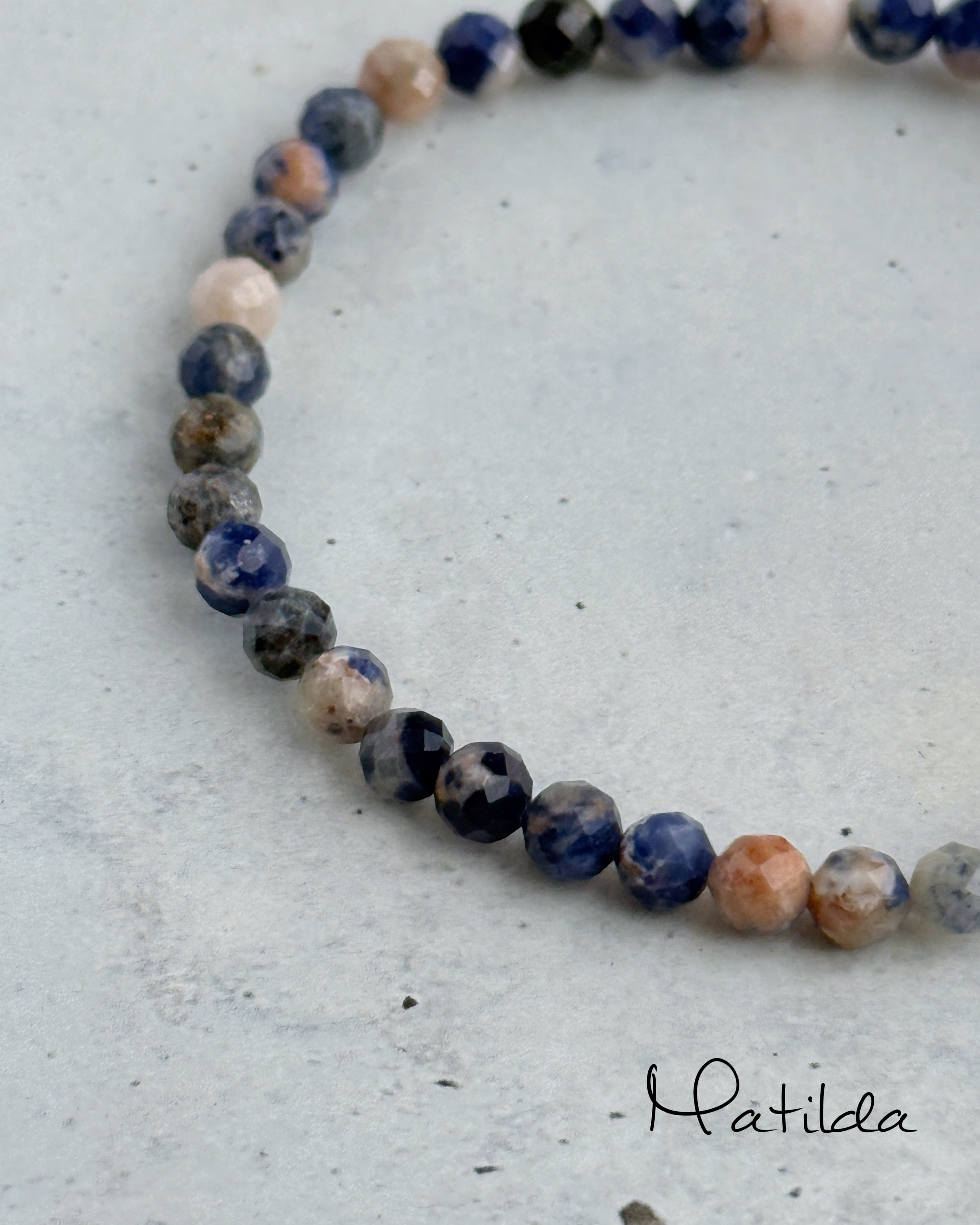 ゼオライトのオレンジが映えるソーダライトにゴールドカラーの真鍮ビーズを合わせて。