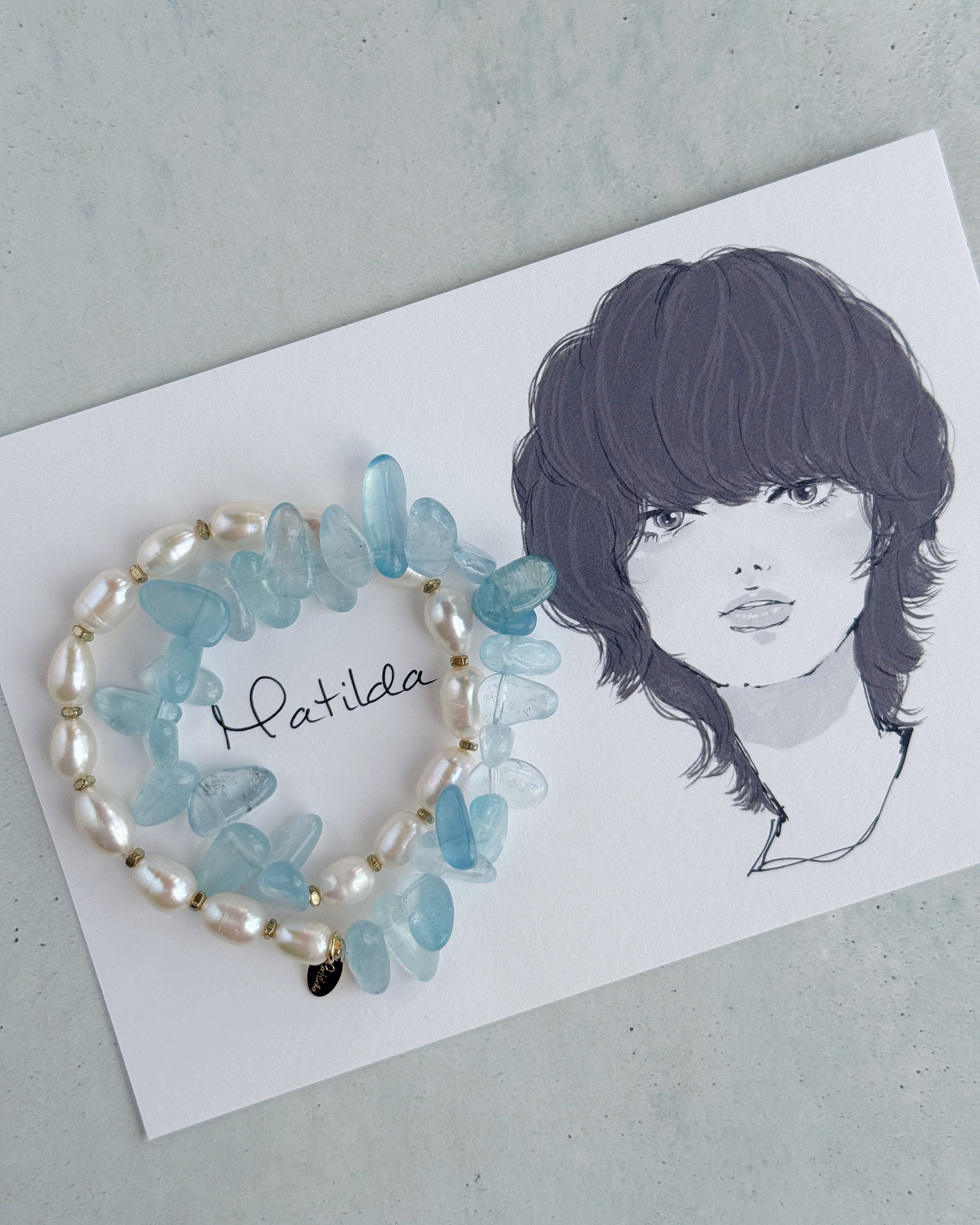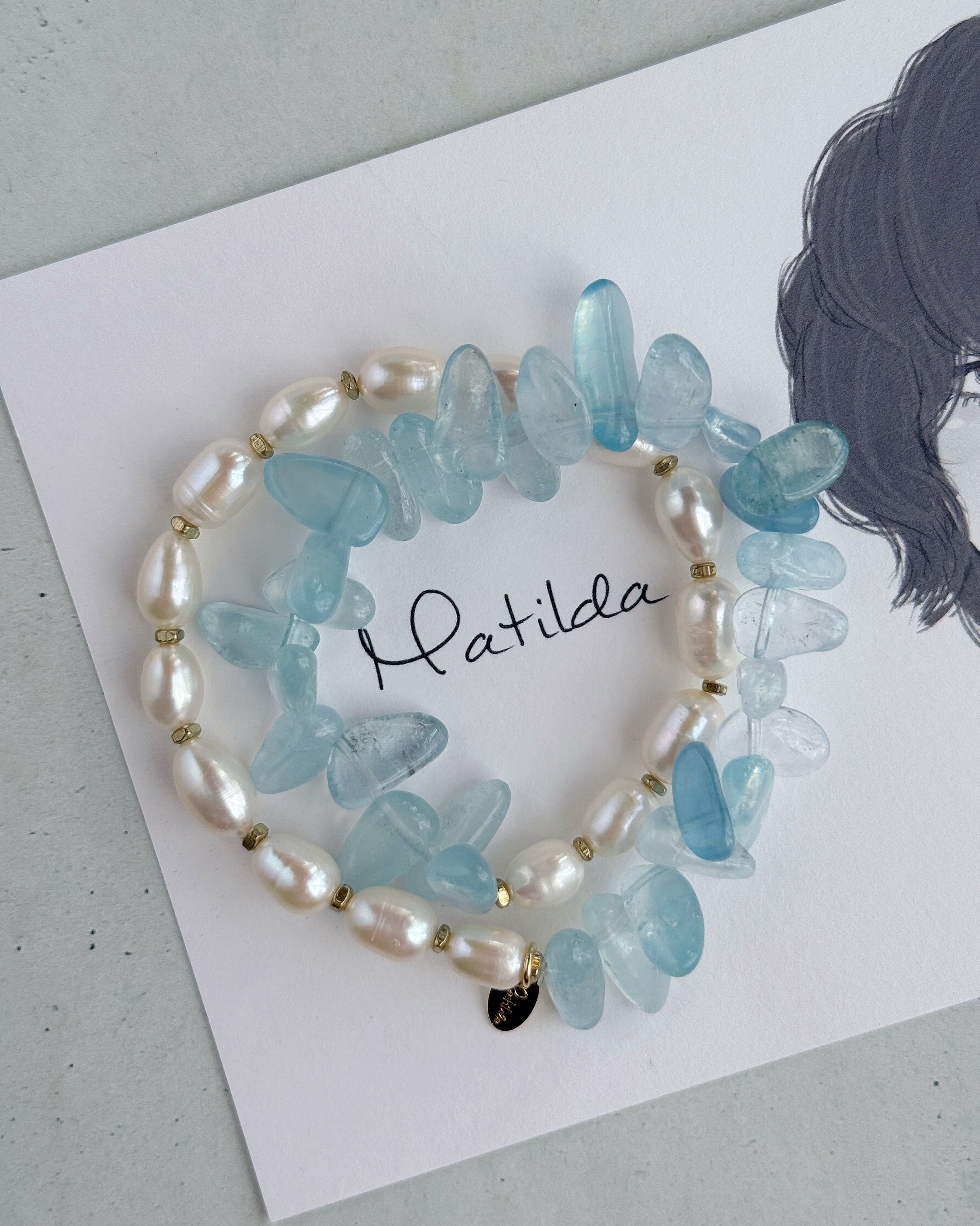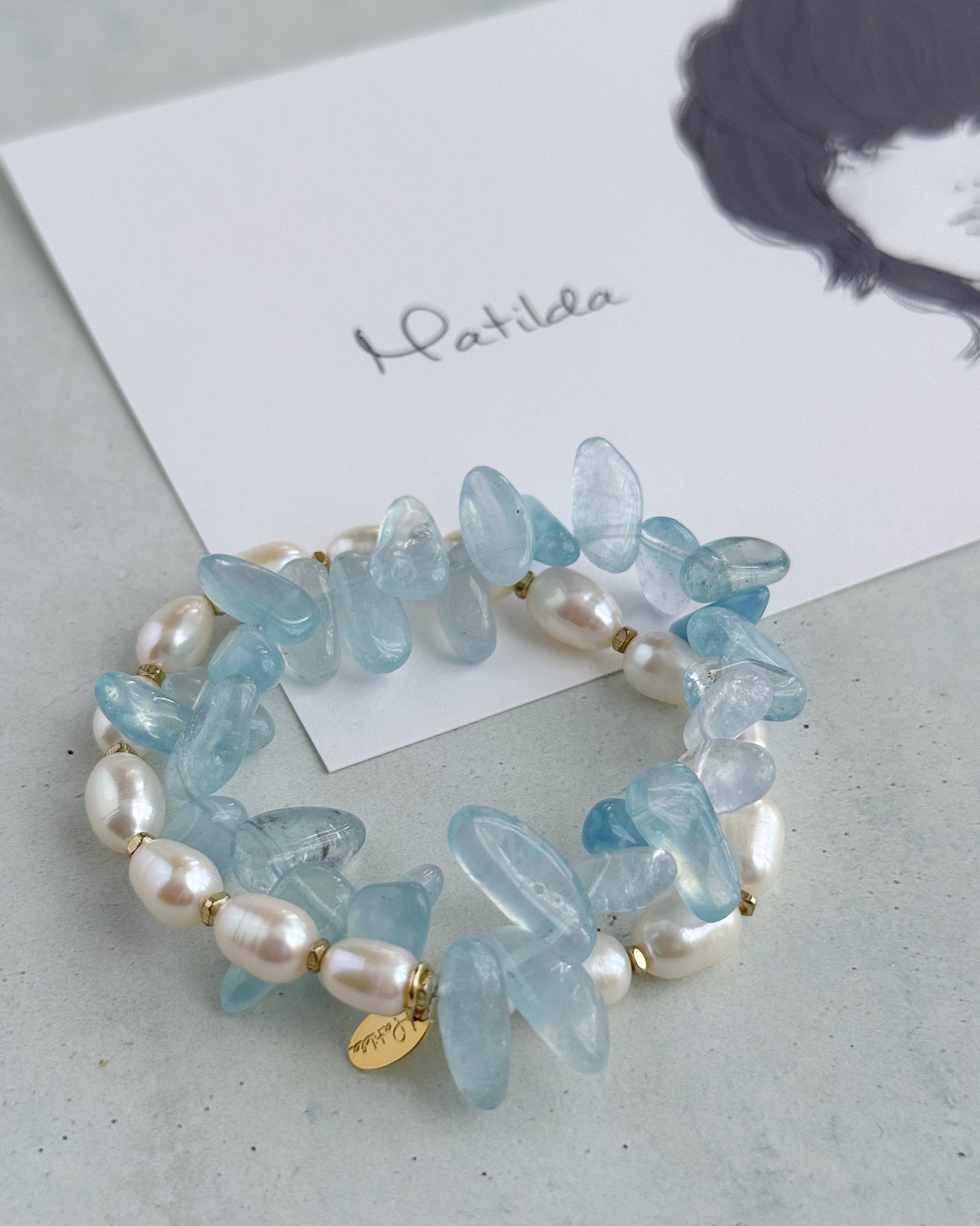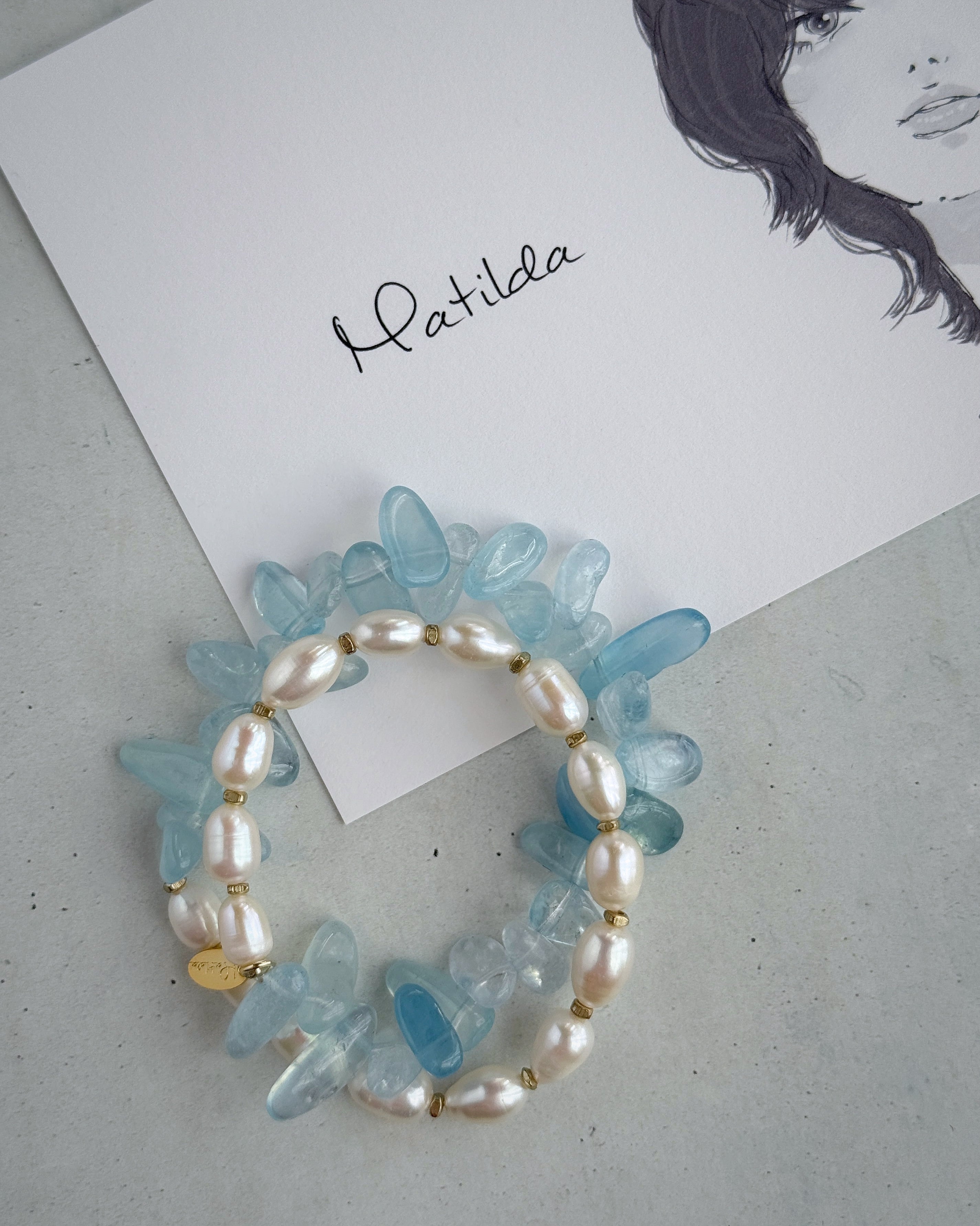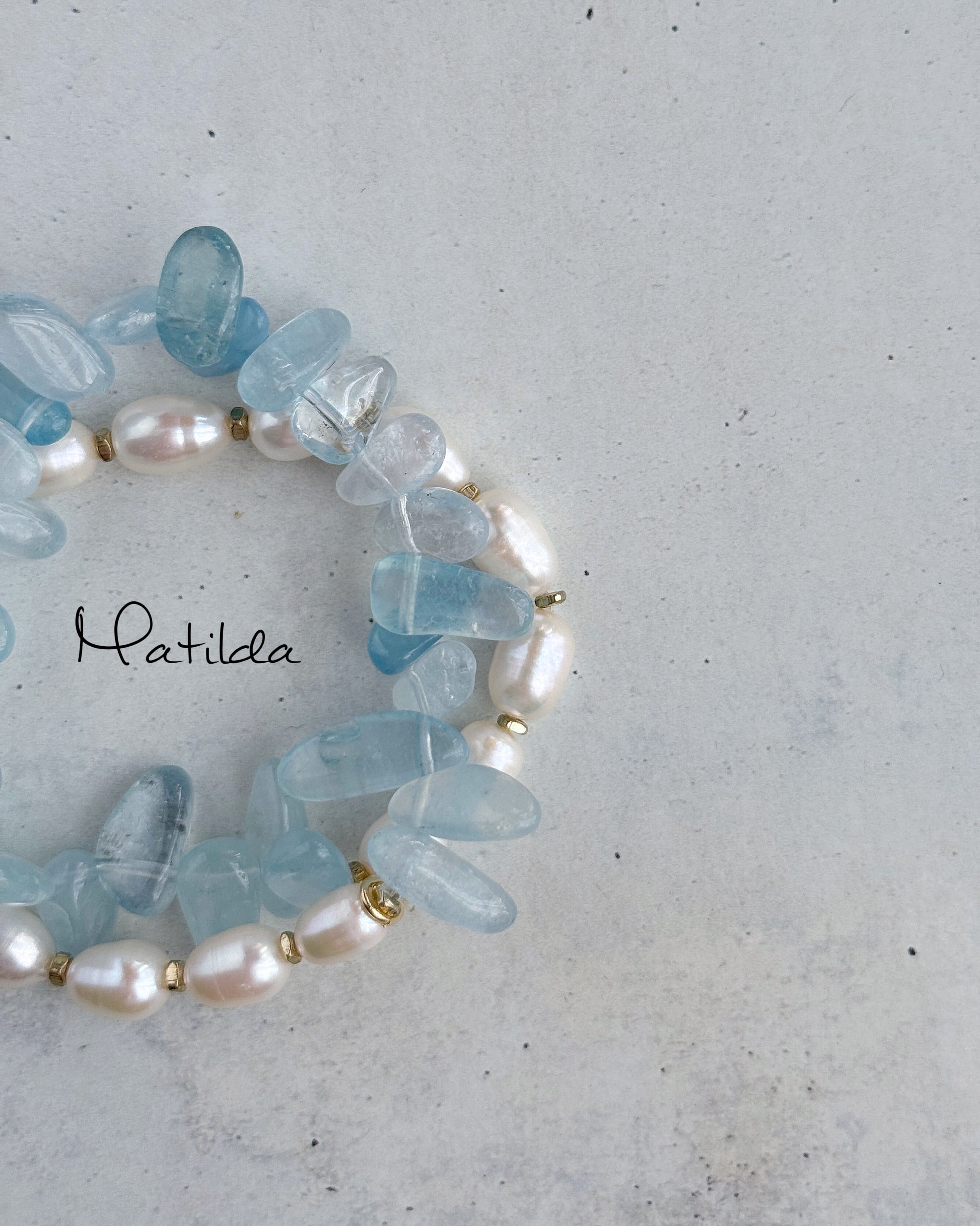 パールホワイト×クリアブルーのペアリングが瑞々しいMatildaの2連ブレスレット。