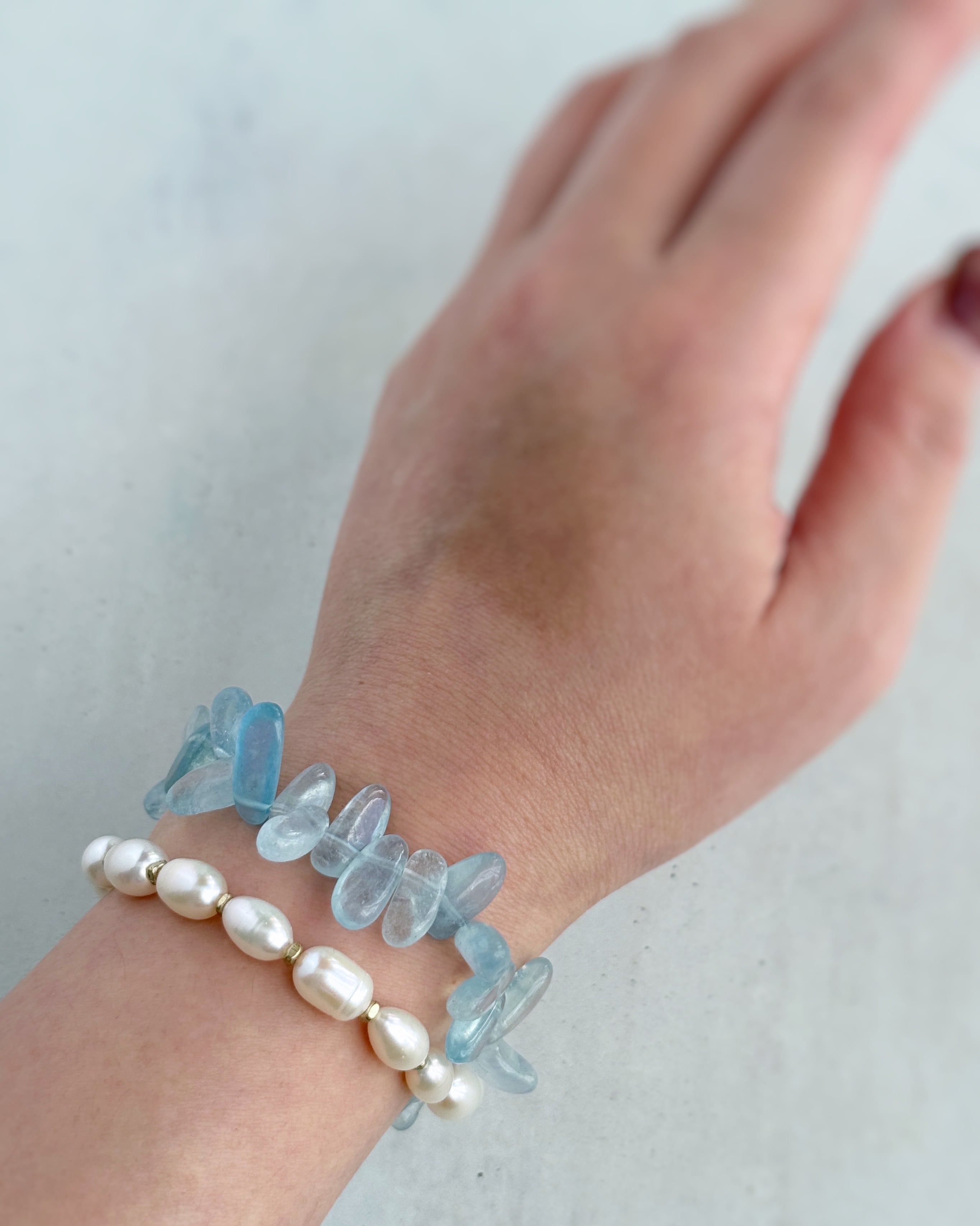 layered bracelet(アクアマリン×淡水パール)