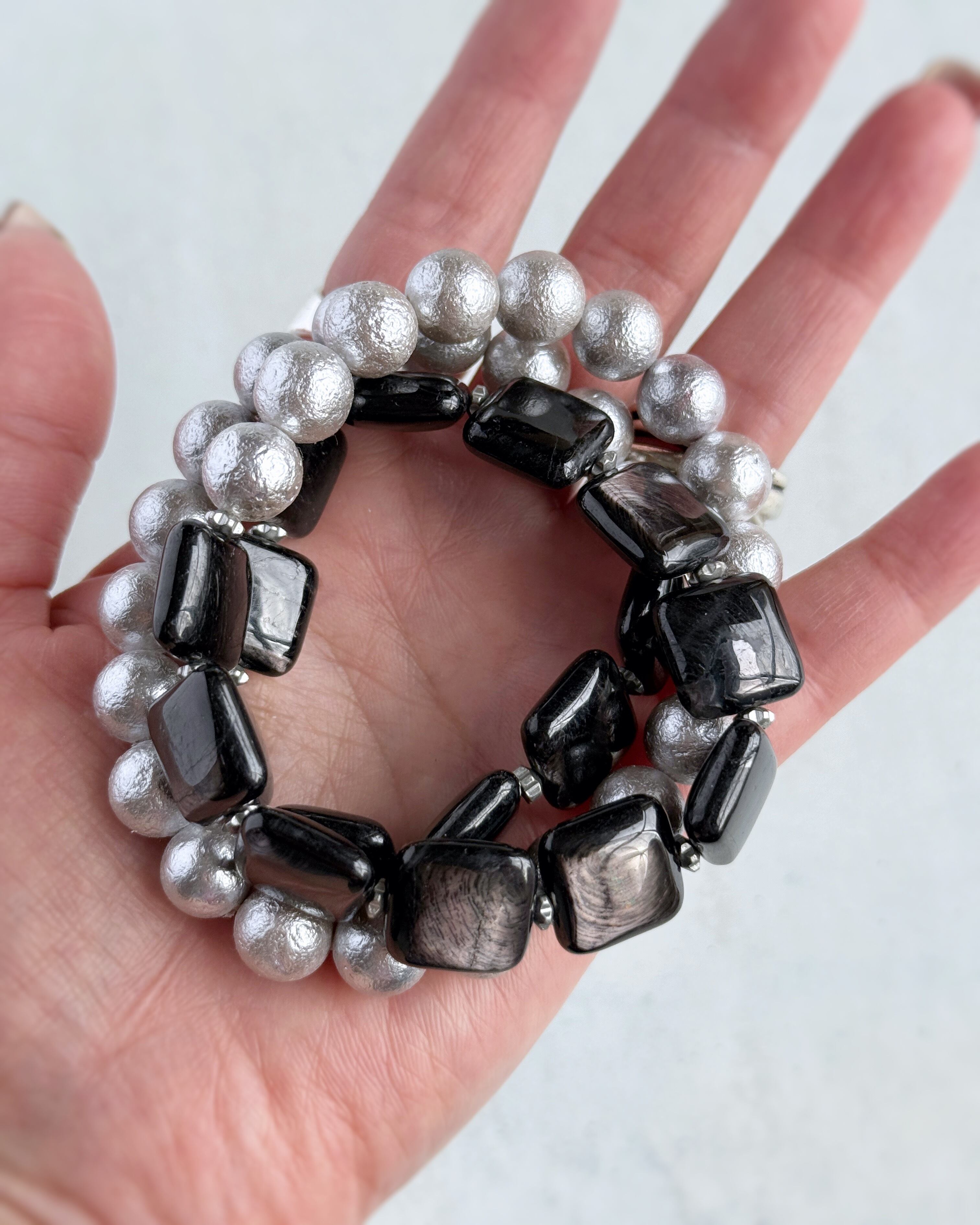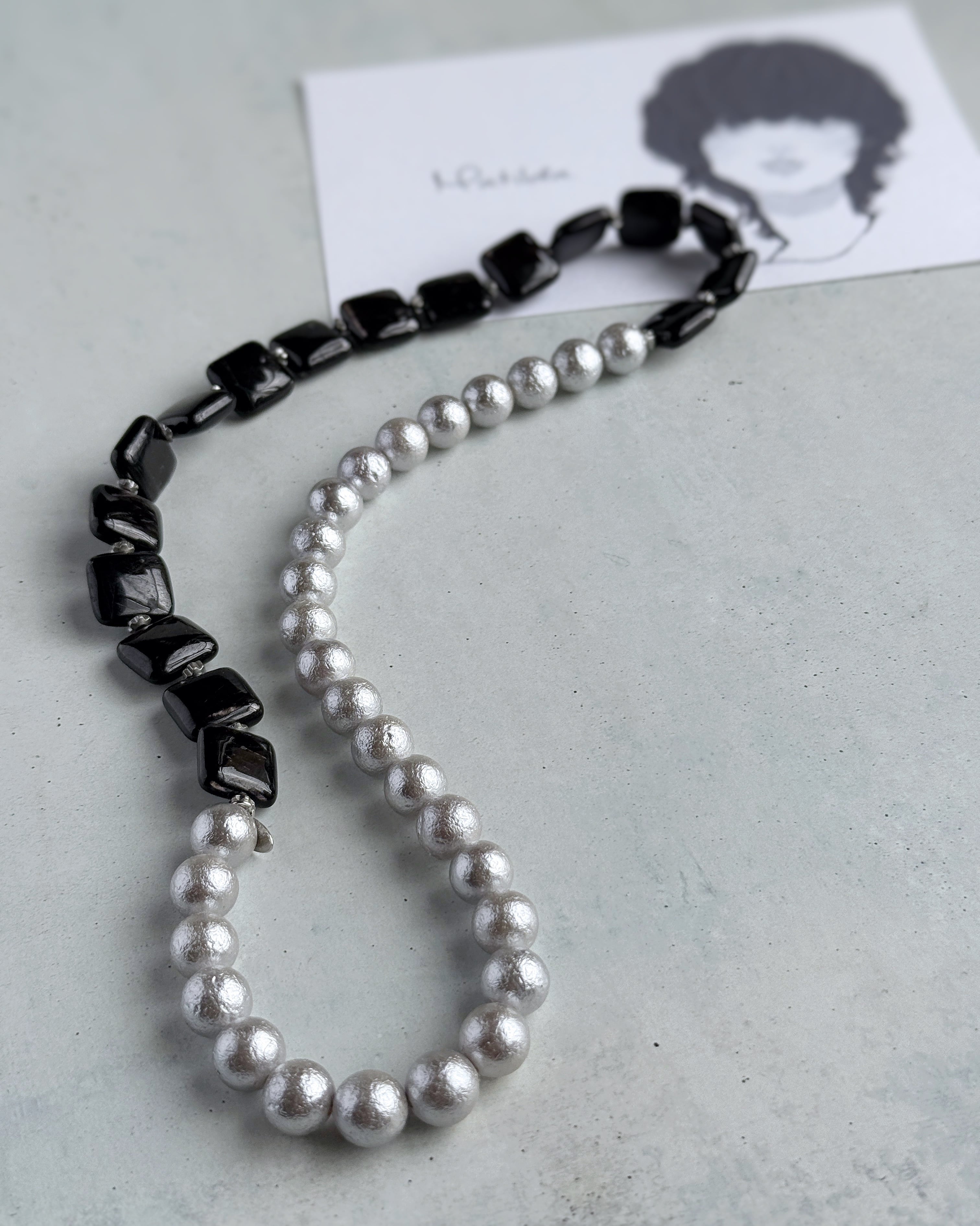 ホワイトメタルを合わせた隙がないほどシャープなハイパーシーンのタブレットに、シルバーカラーの貝パールをペアリング。