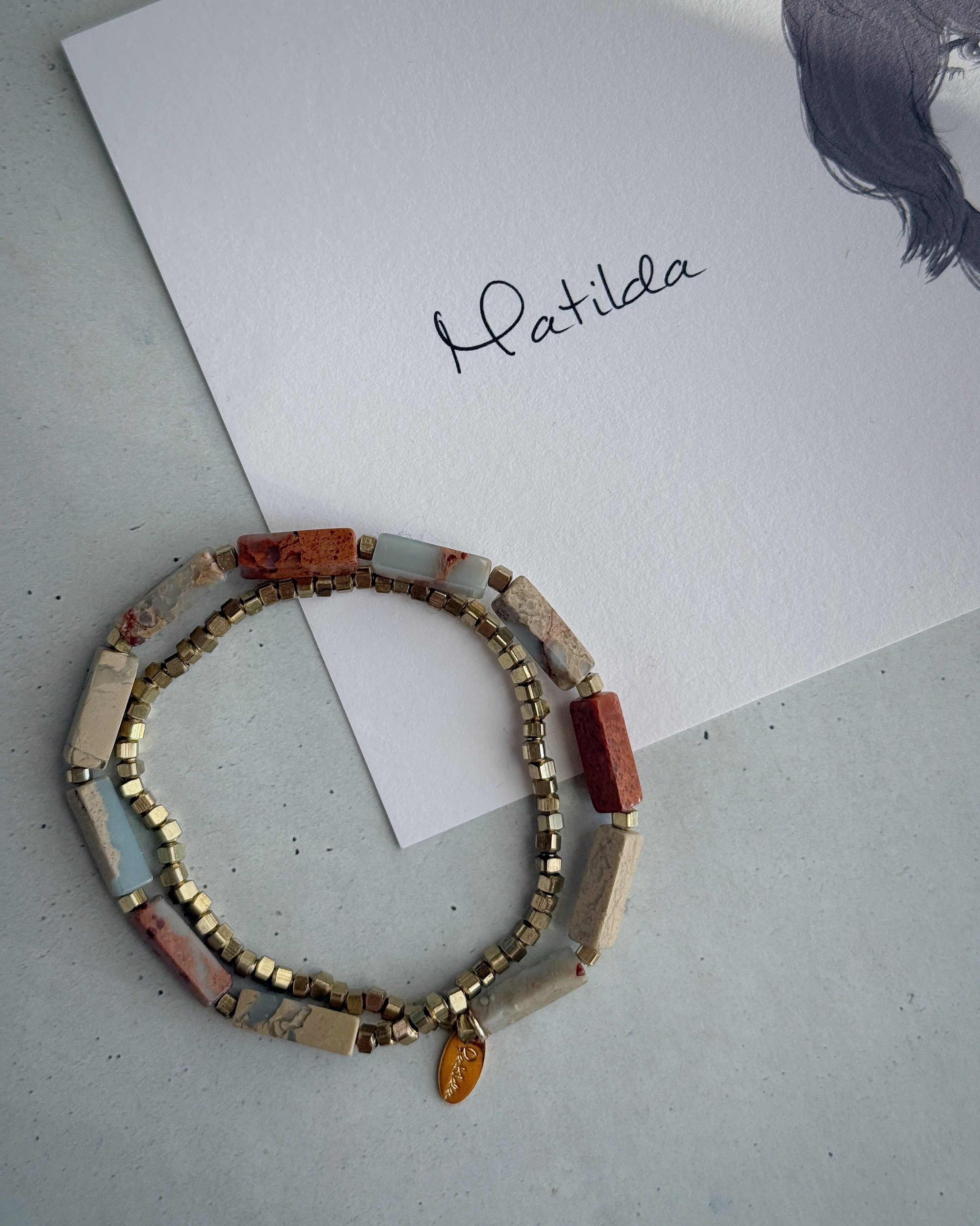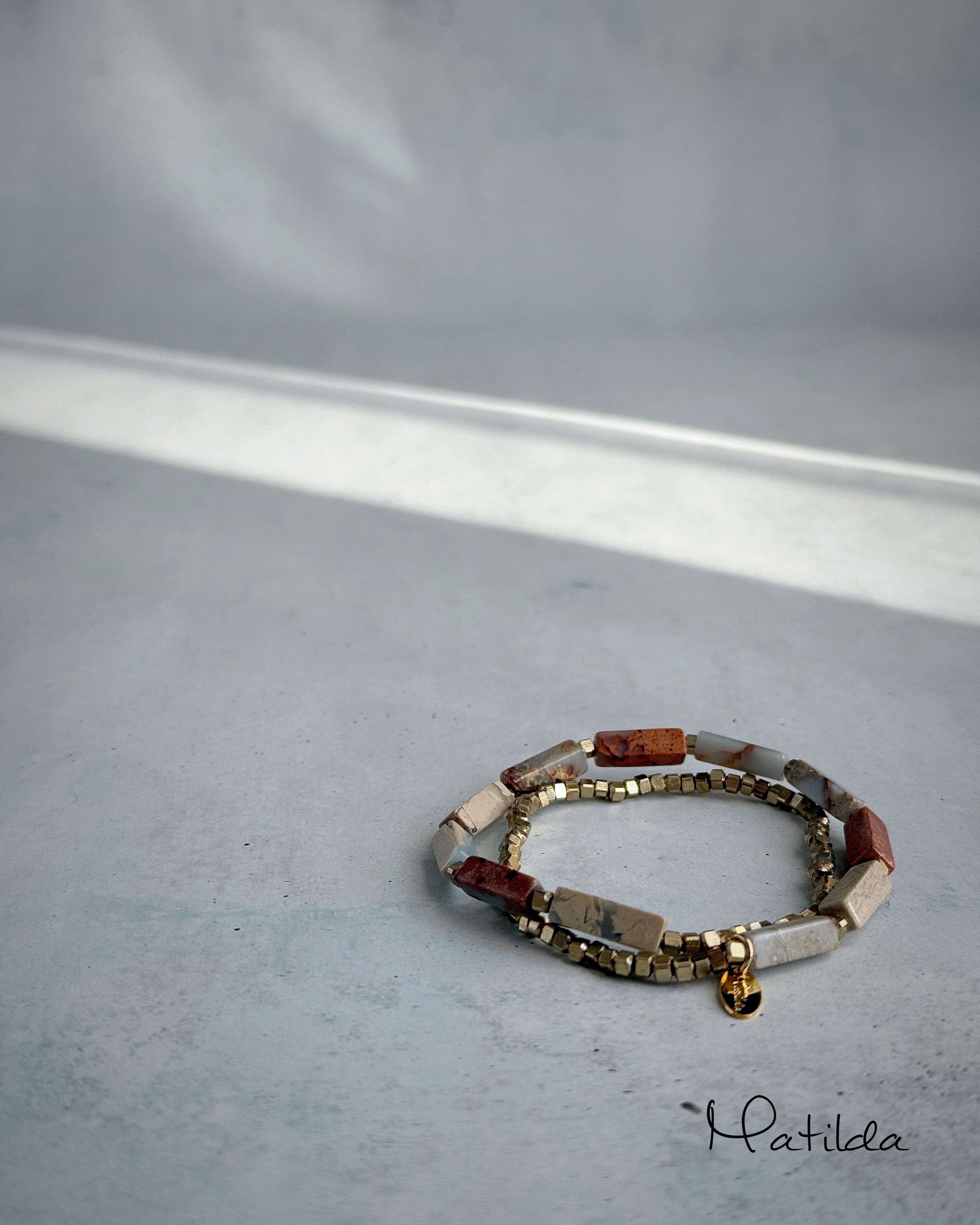 アーシィなぬくもりとクリーンな抜け感が端正なMatildaの2連ブレスレット。