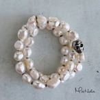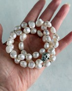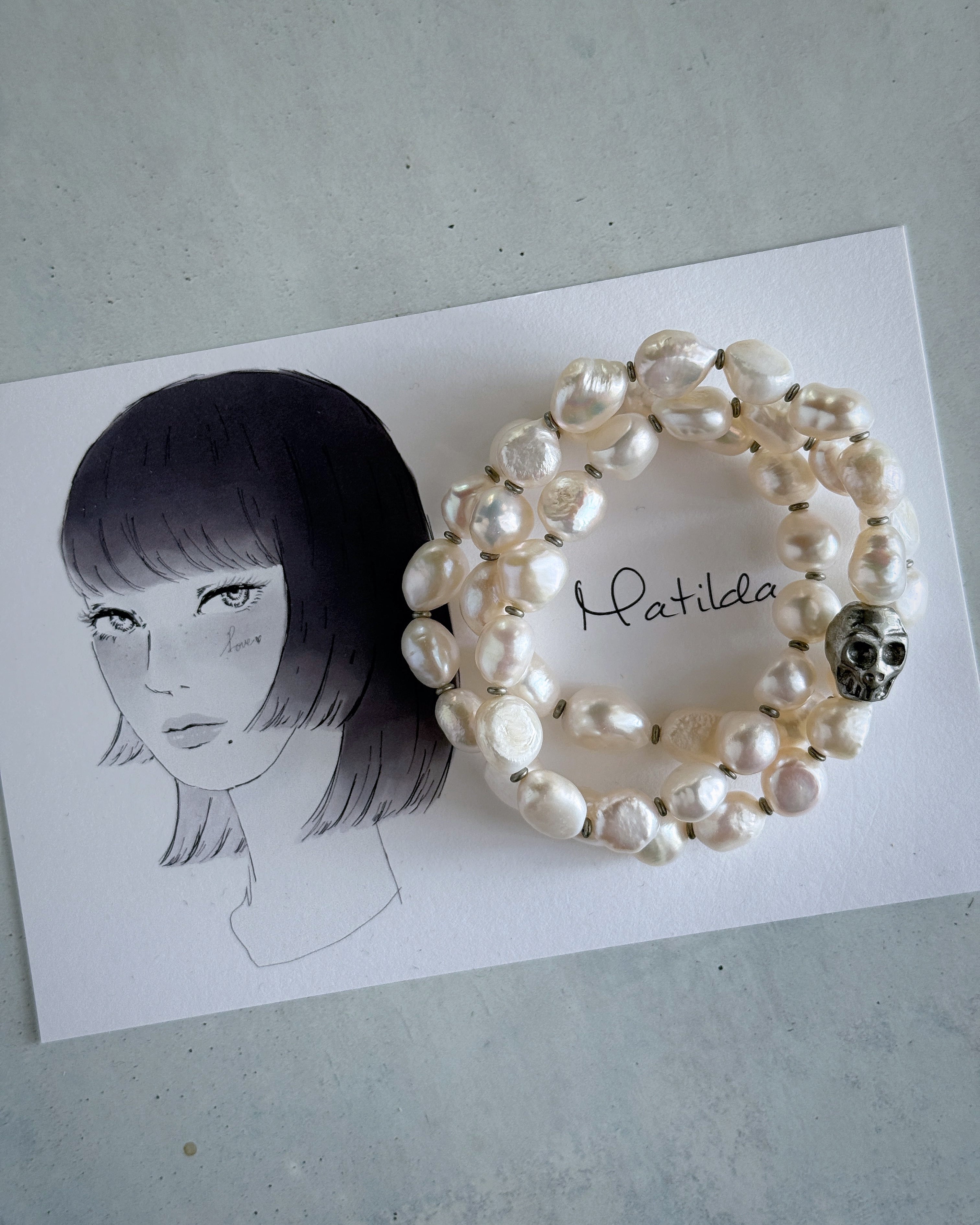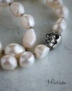 エレガントな淡水パールの連なりに、スカルのシルバービーズを一粒だけ忍ばせて。