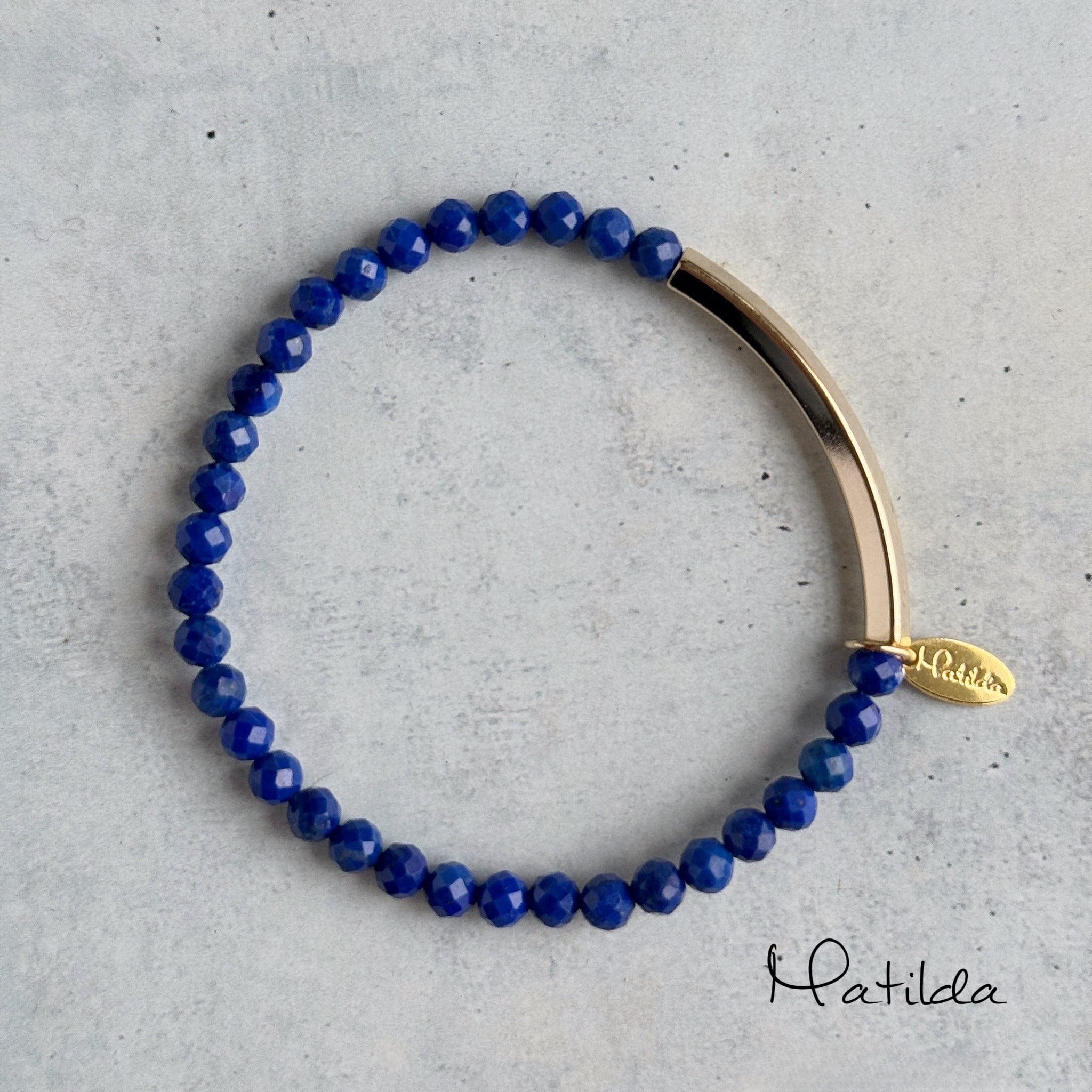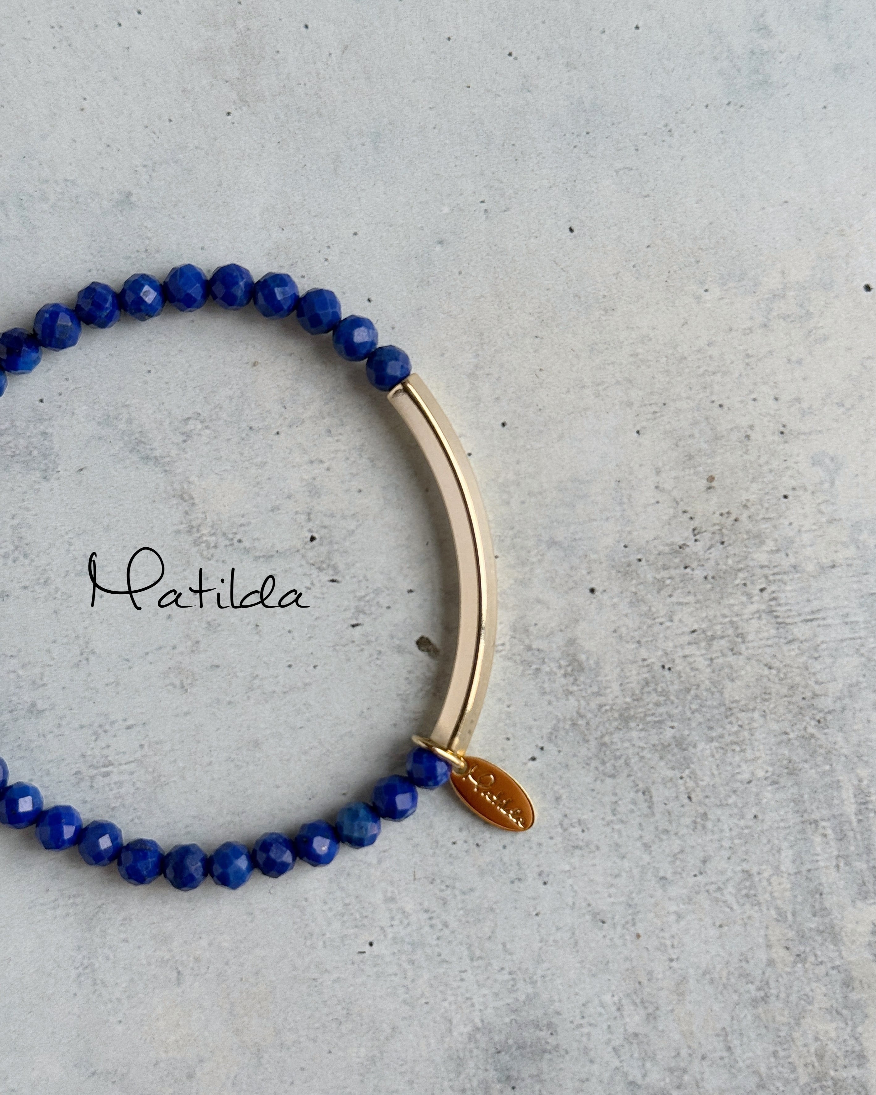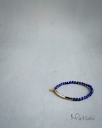 凛としたインディゴブルーに、ゴールドカラーのエッジィな真鍮チューブを合わせて。