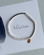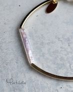 小粒パールの淑やかな連なりに、シャープな真鍮のチューブとスリムバーシェイプの淡水パールを合わせてユニークなシルエットに。