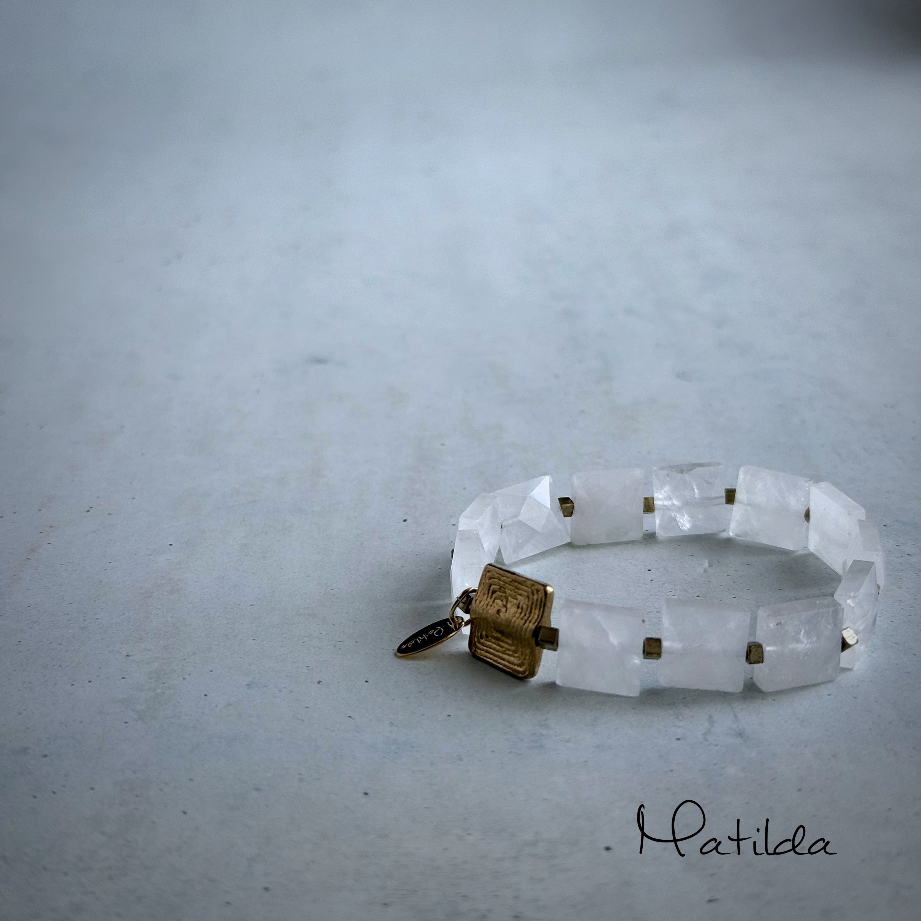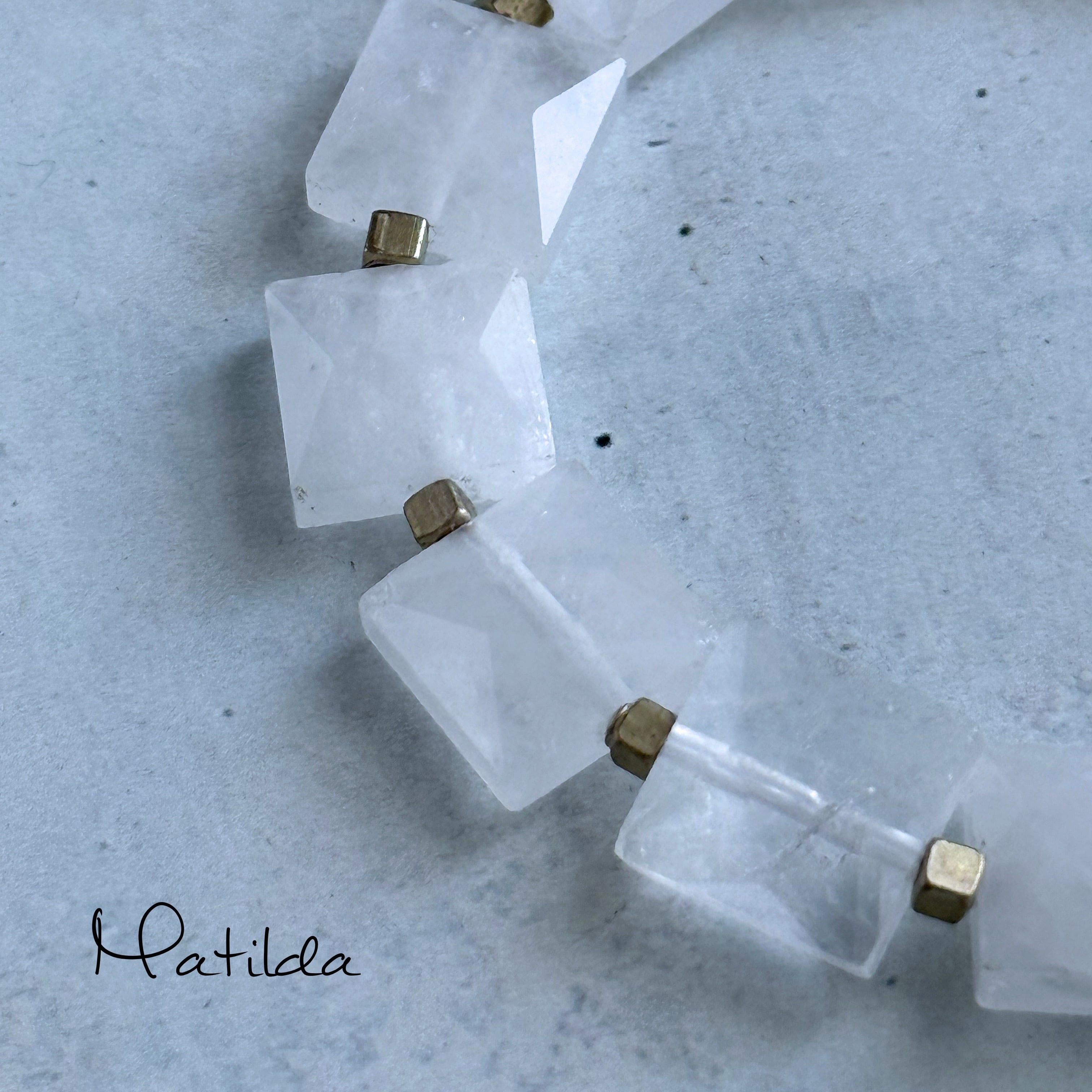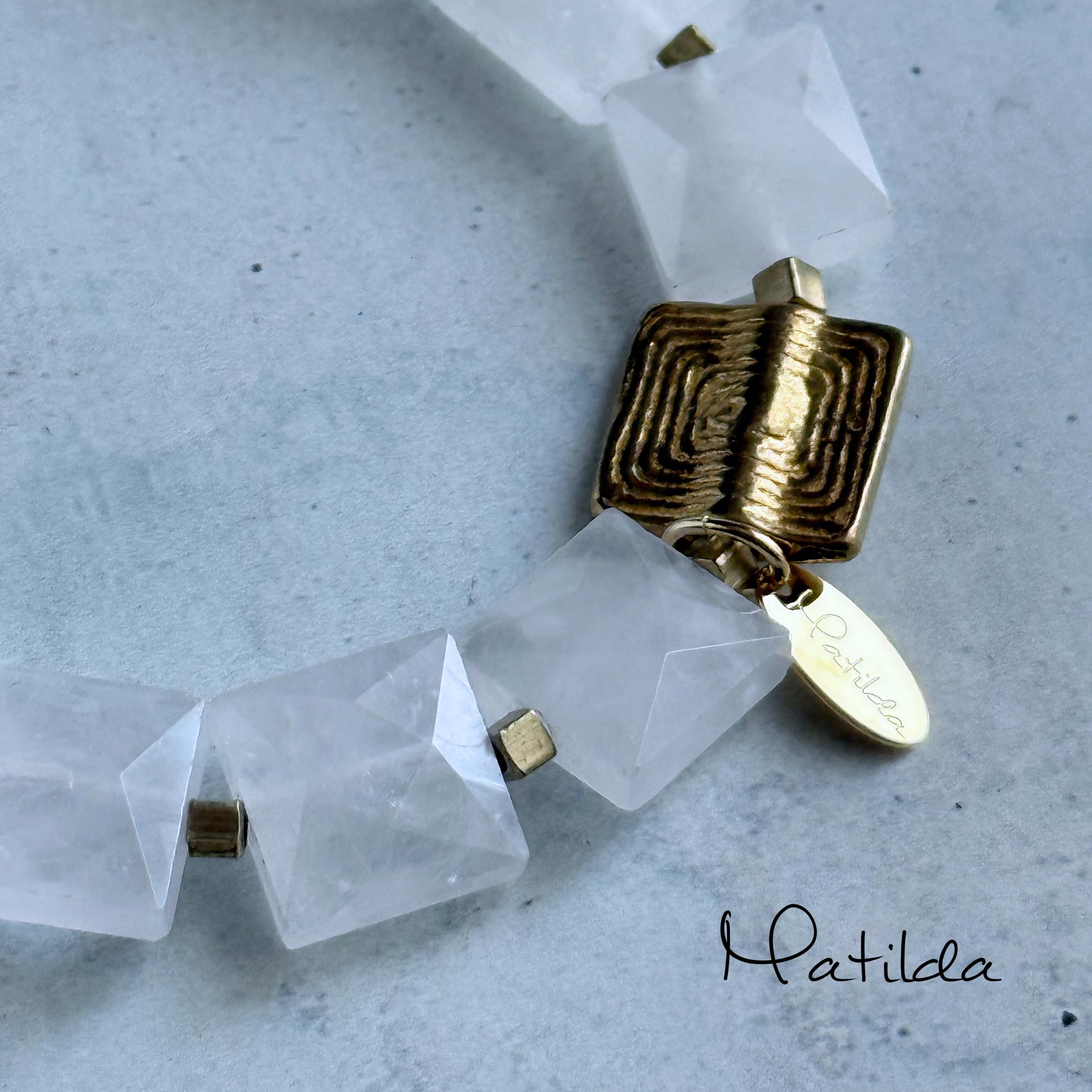 繊細なクラックによって現れる幻想的な表情を宿すクォーツに、シックなゴールドの真鍮ビーズとモチーフをペアリング。