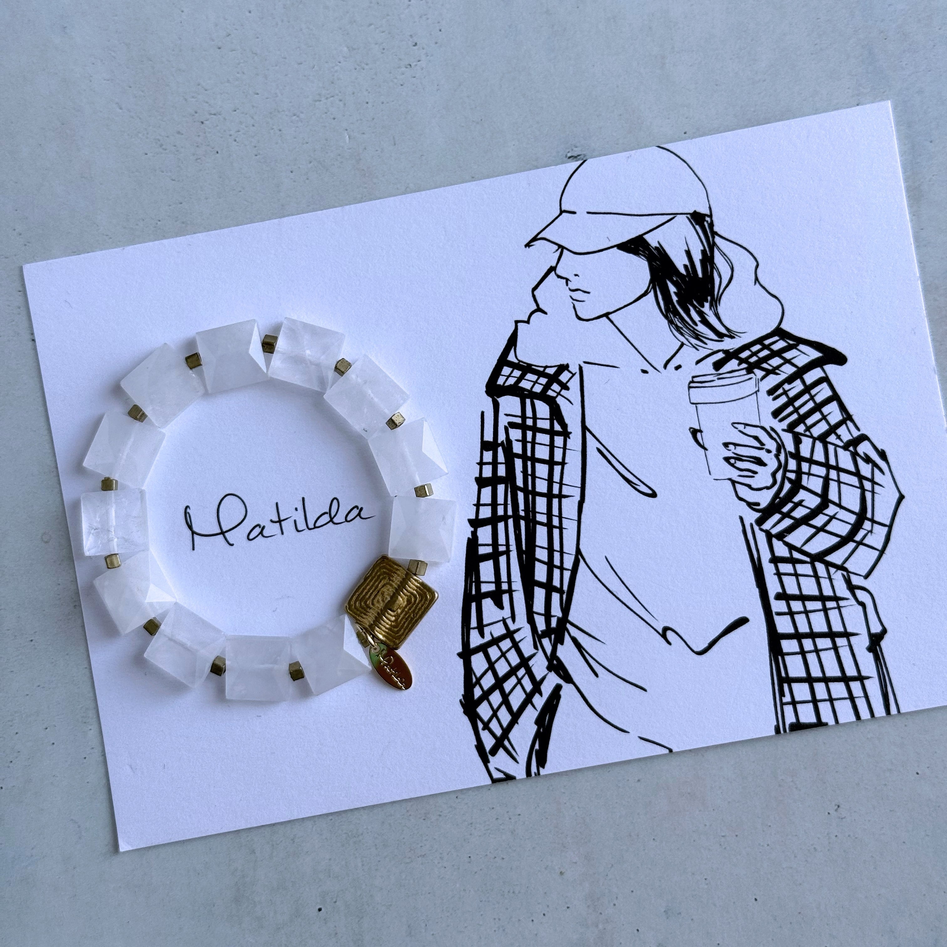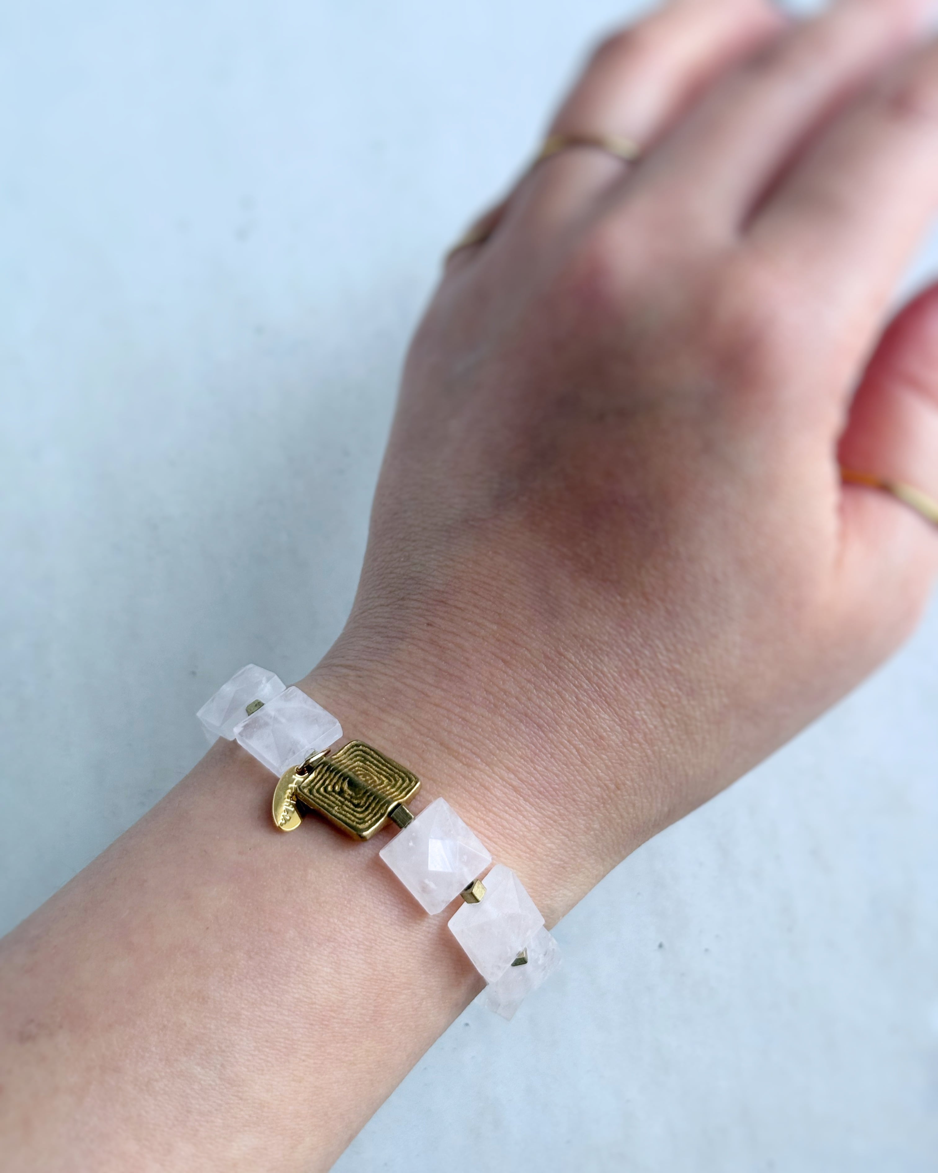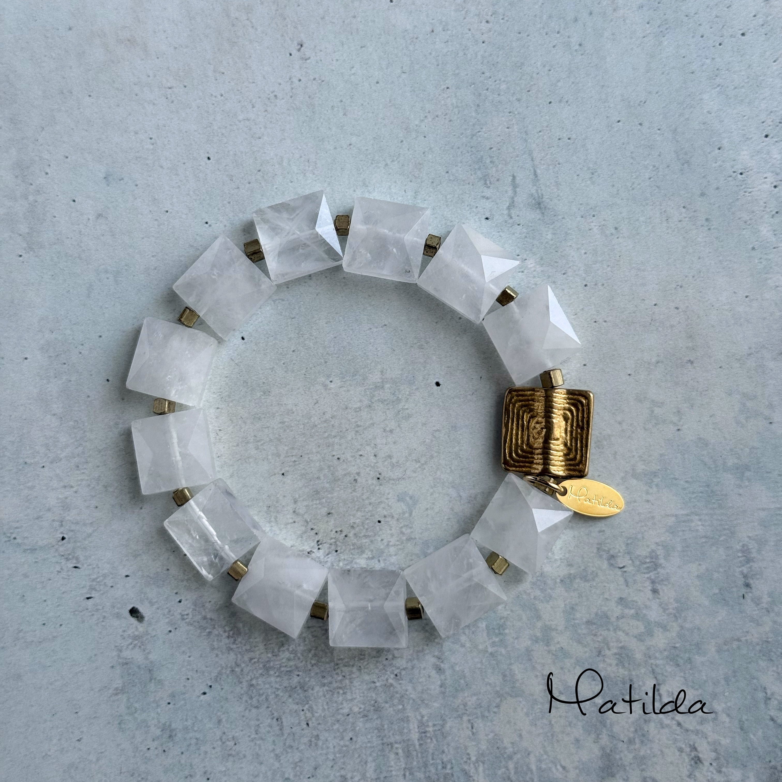 繊細なクラックによって現れる幻想的な表情を宿すクォーツに、シックなゴールドの真鍮ビーズとモチーフをペアリング。
