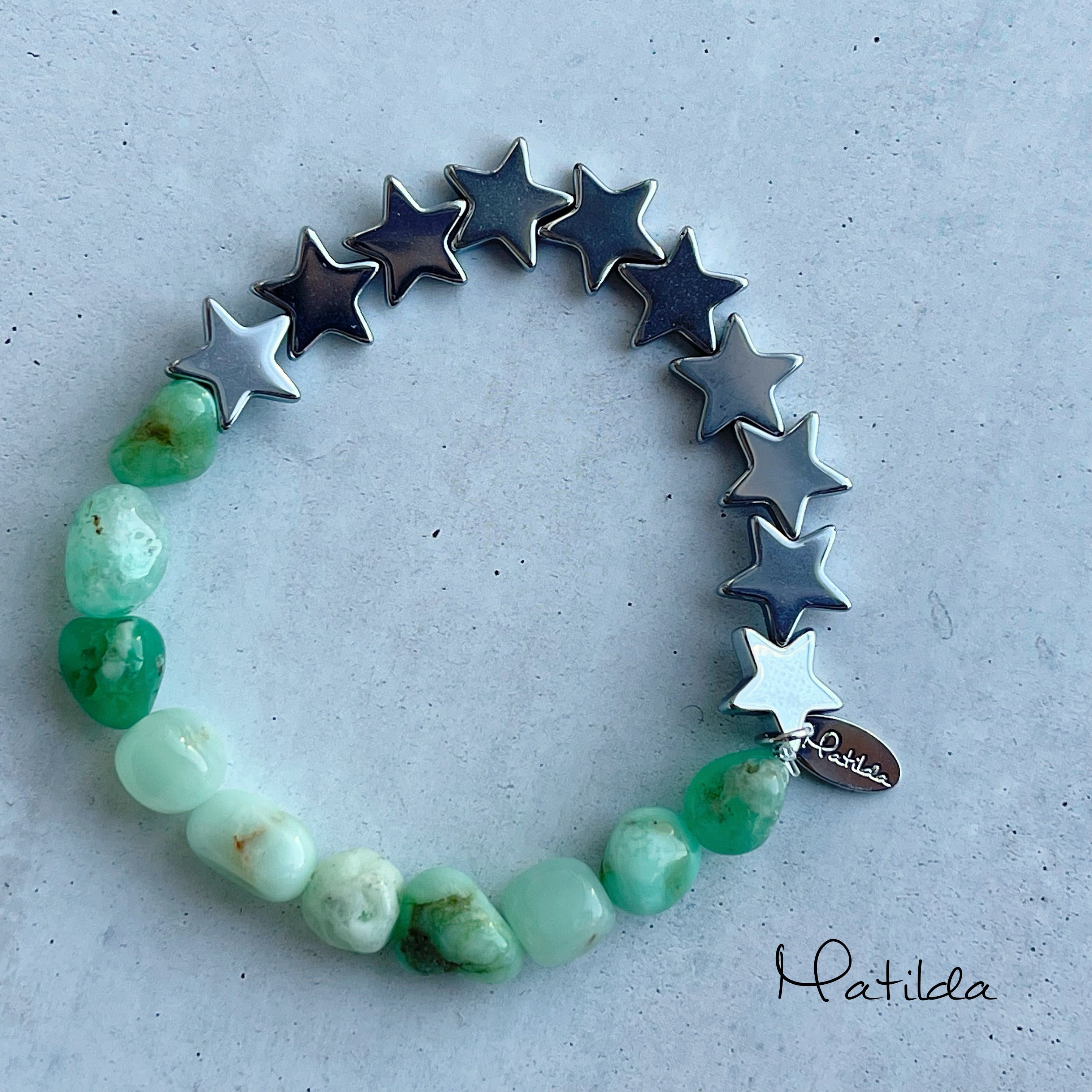 コーデのスパイスになる、メタルカラーの星形ヘマタイトをブレスレットに仕立てました。