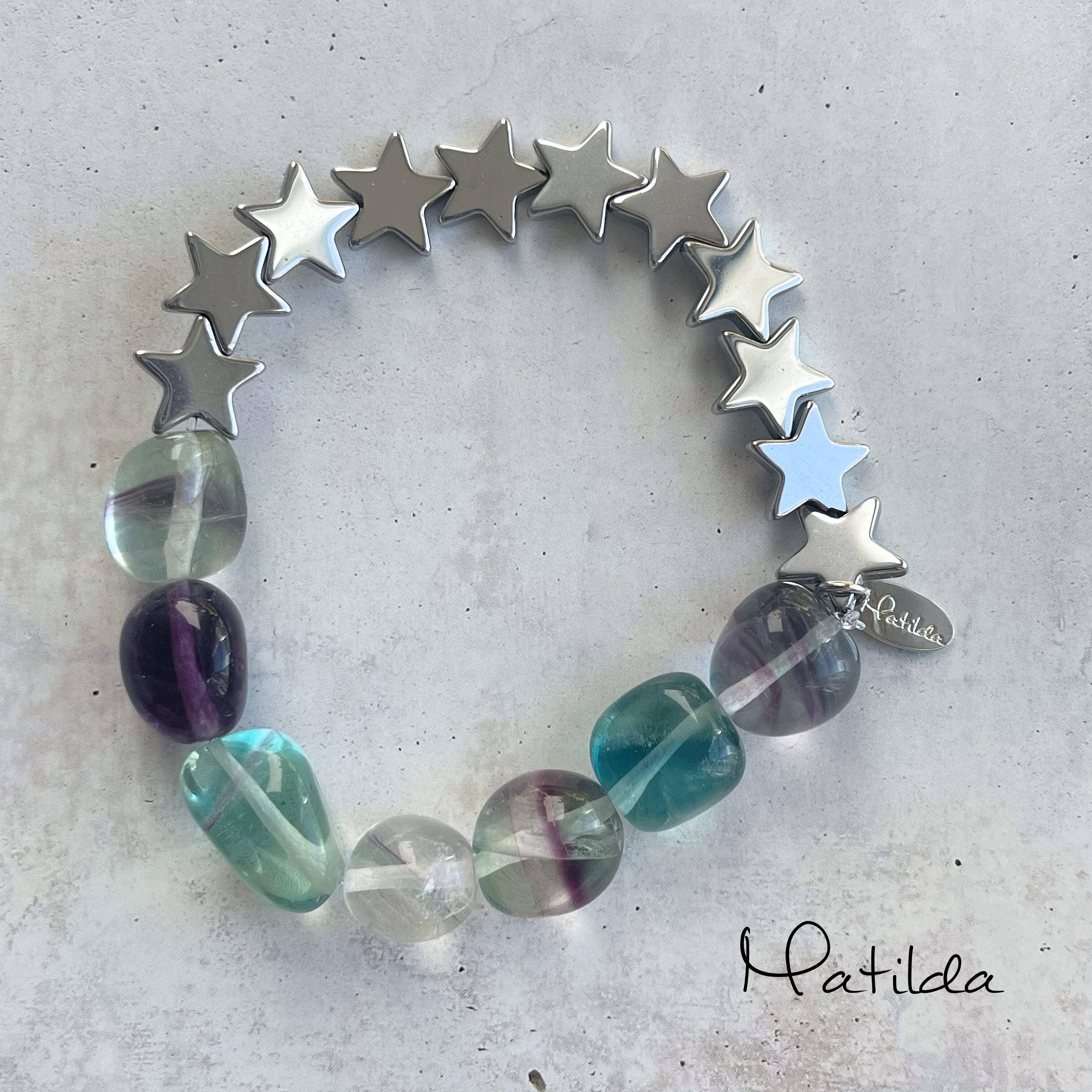 粒によって様々な色合いを見せてくれるカラフルな石、フローライト。