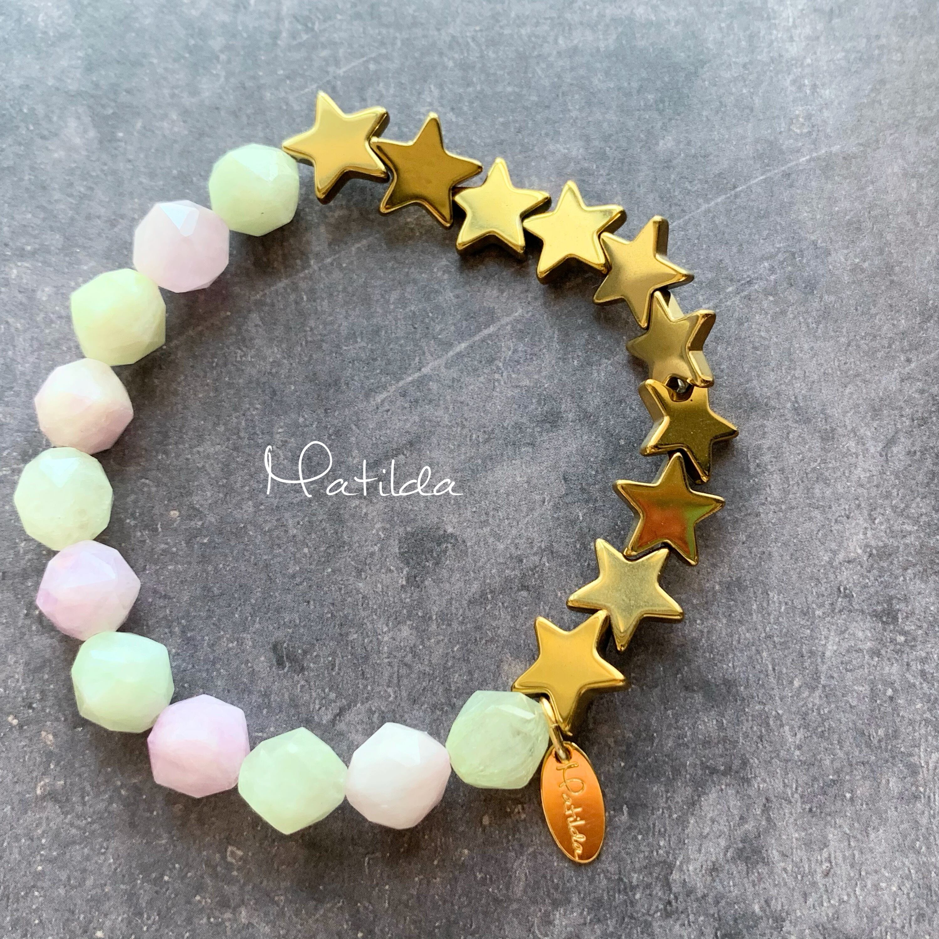 ゴールドスターと合わせて、甘すぎない大人可愛いブレスレットに。