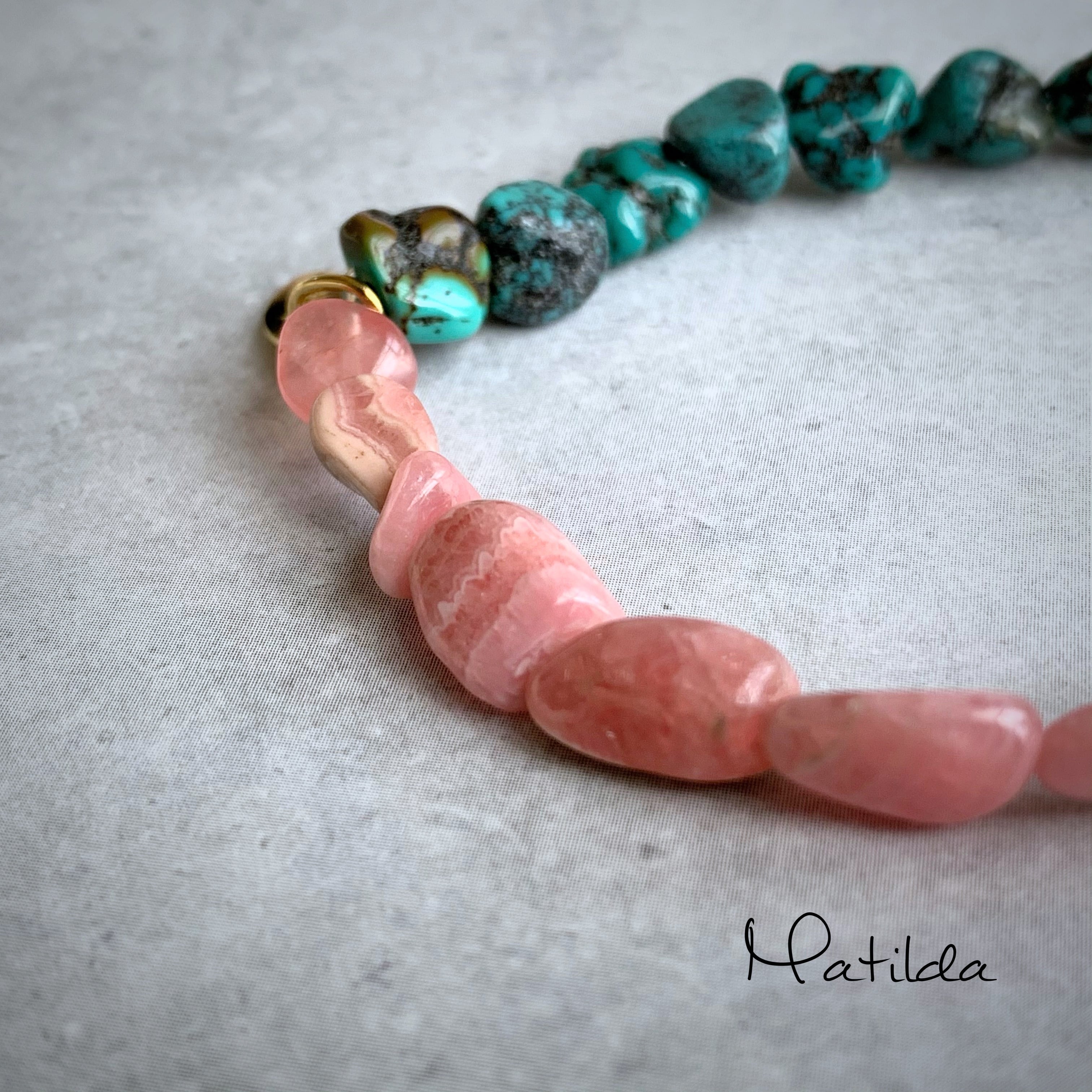 鮮やかな色合いの組み合わせ、ターコイズ×インカローズ。