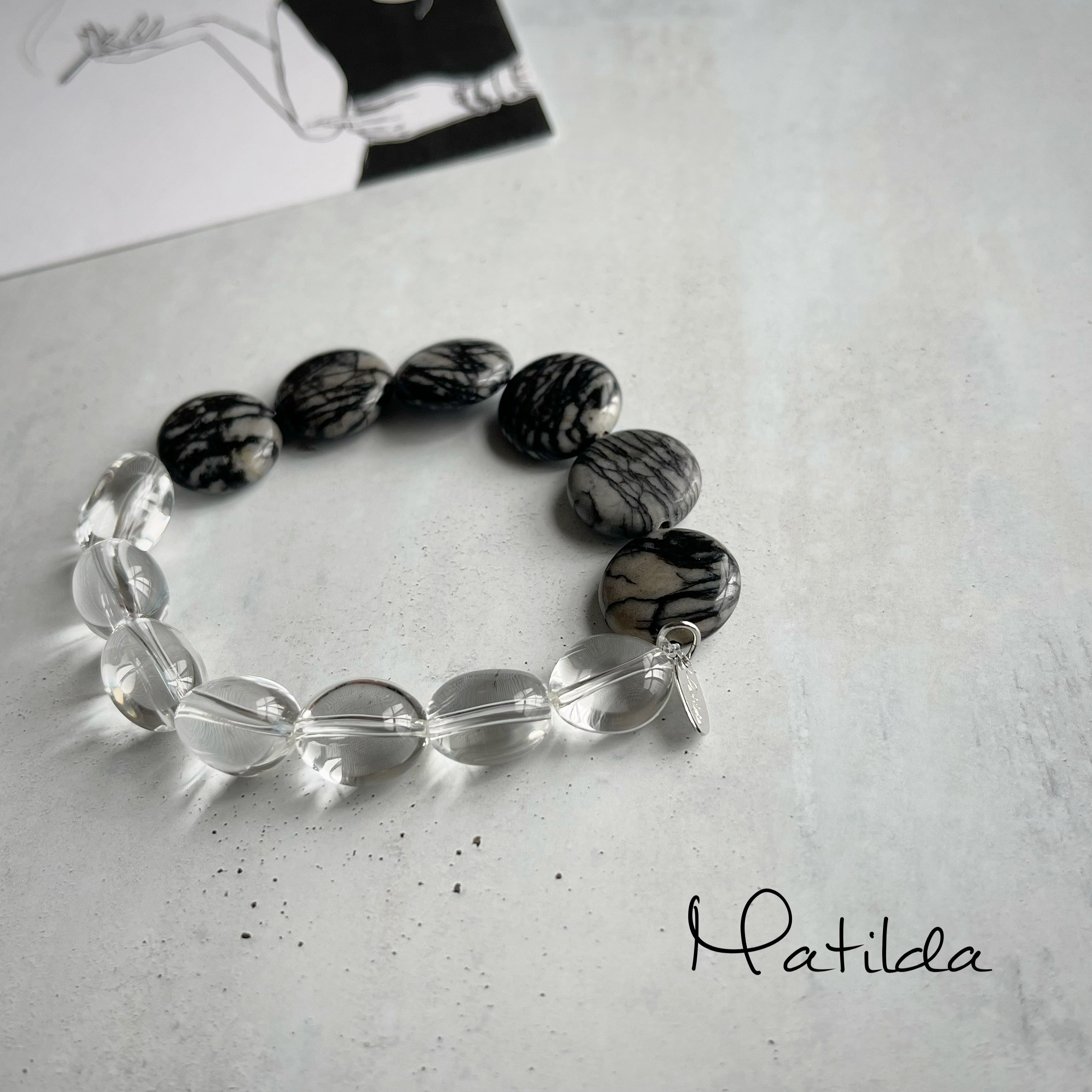 bicolor bracelet(クリスタル×ゼブラジャスパー)