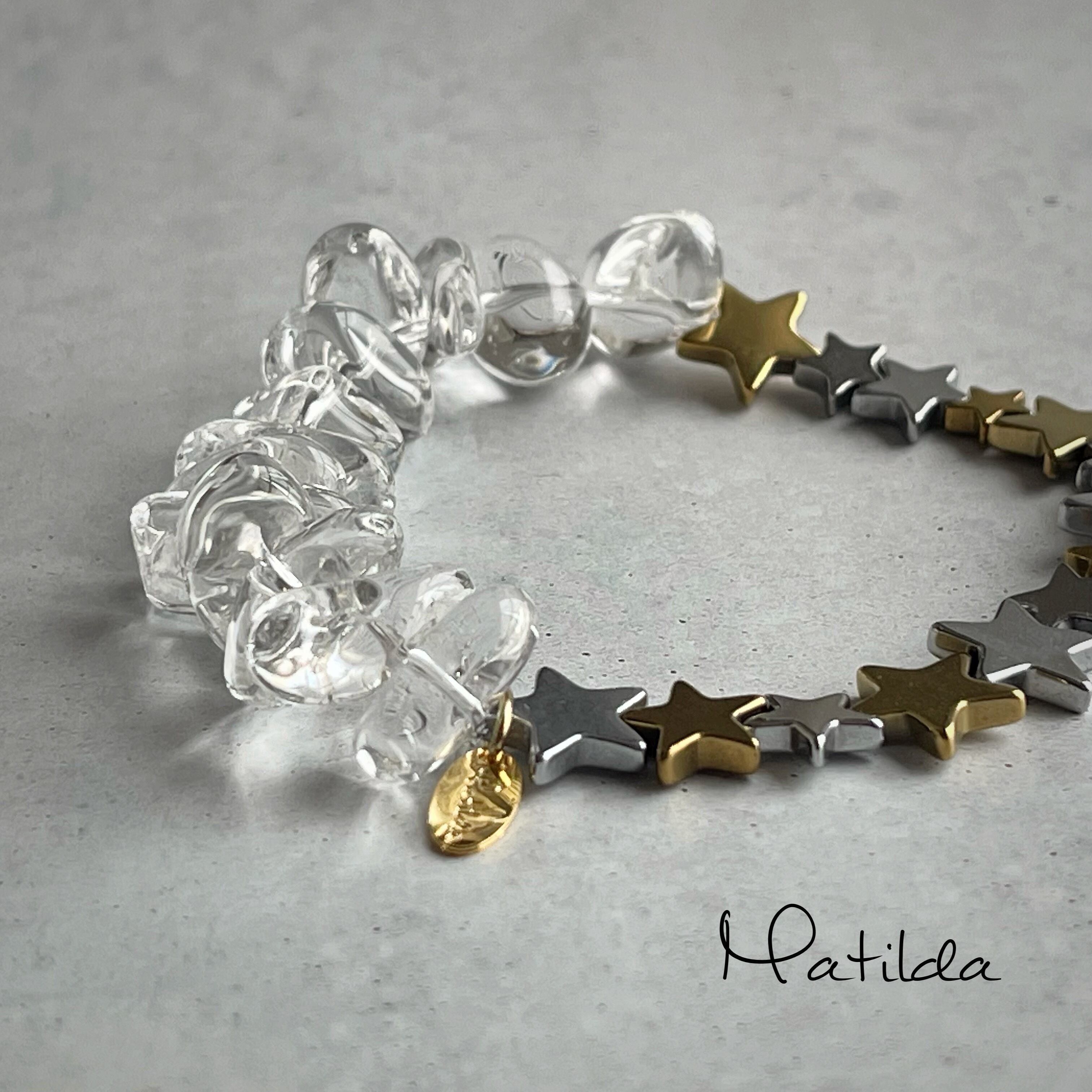 ゴールド&シルバーカラーの星と、クリスタルのブレスレット。