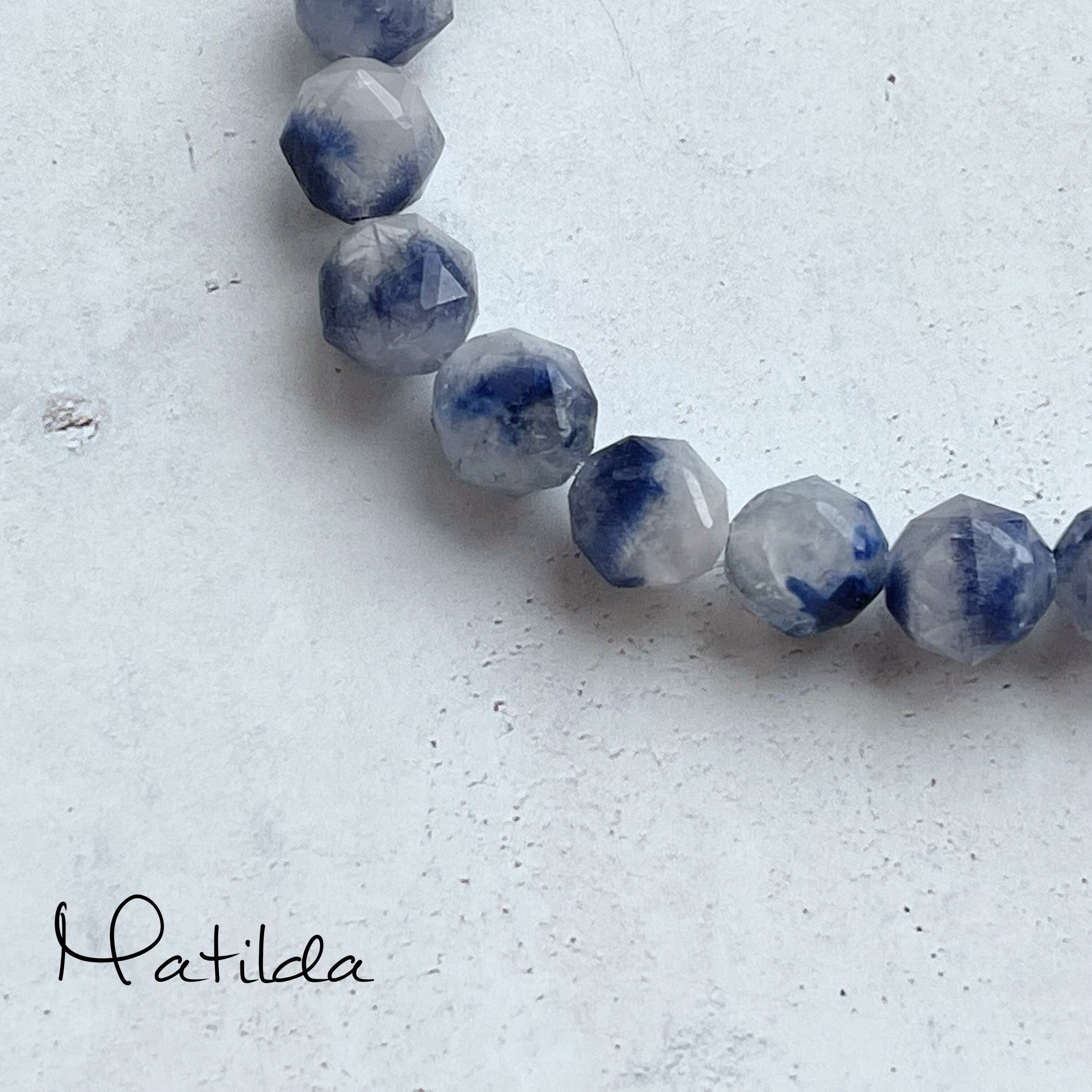 クォーツの中に見えるブルーの内包物が神秘的な雰囲気のデュモルチェライトインクォーツ。