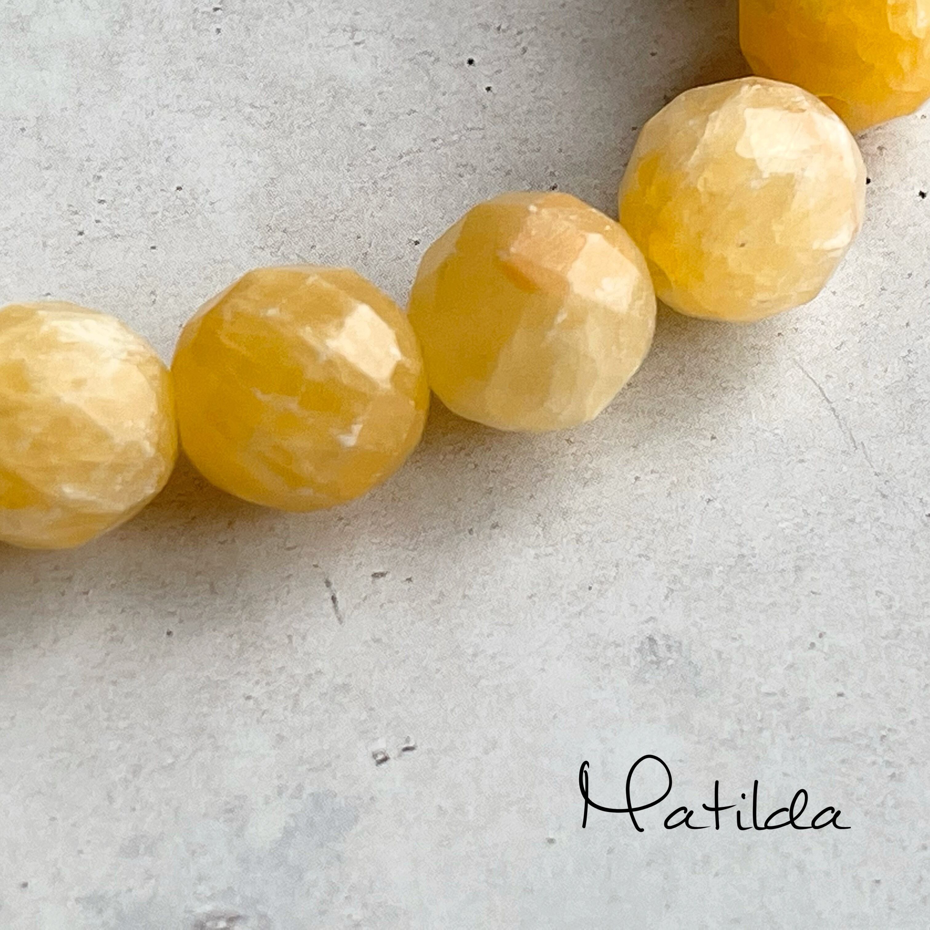 ひとつひとつ異なる濃淡のグレークォーツと、優しいイエローのアラゴナイト。