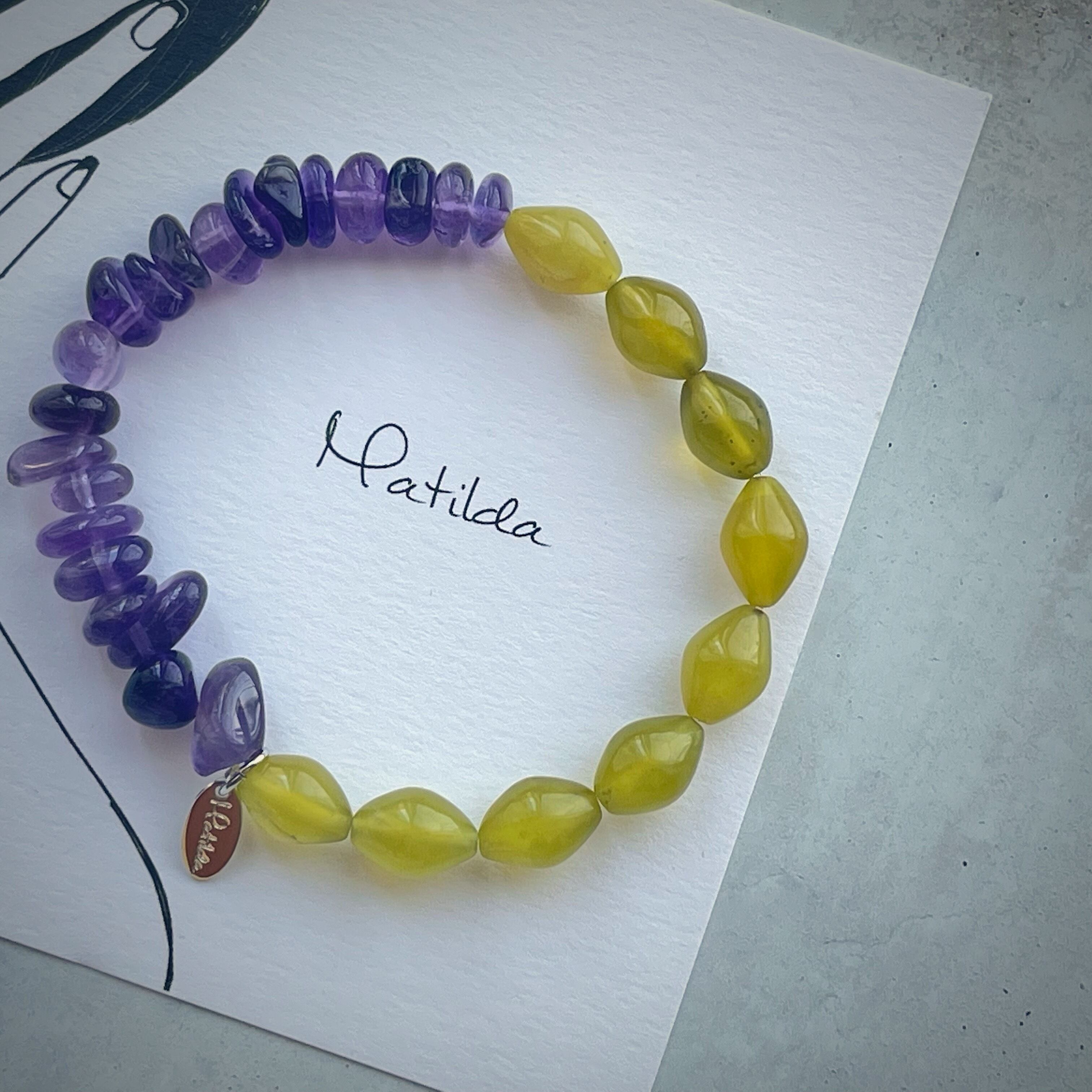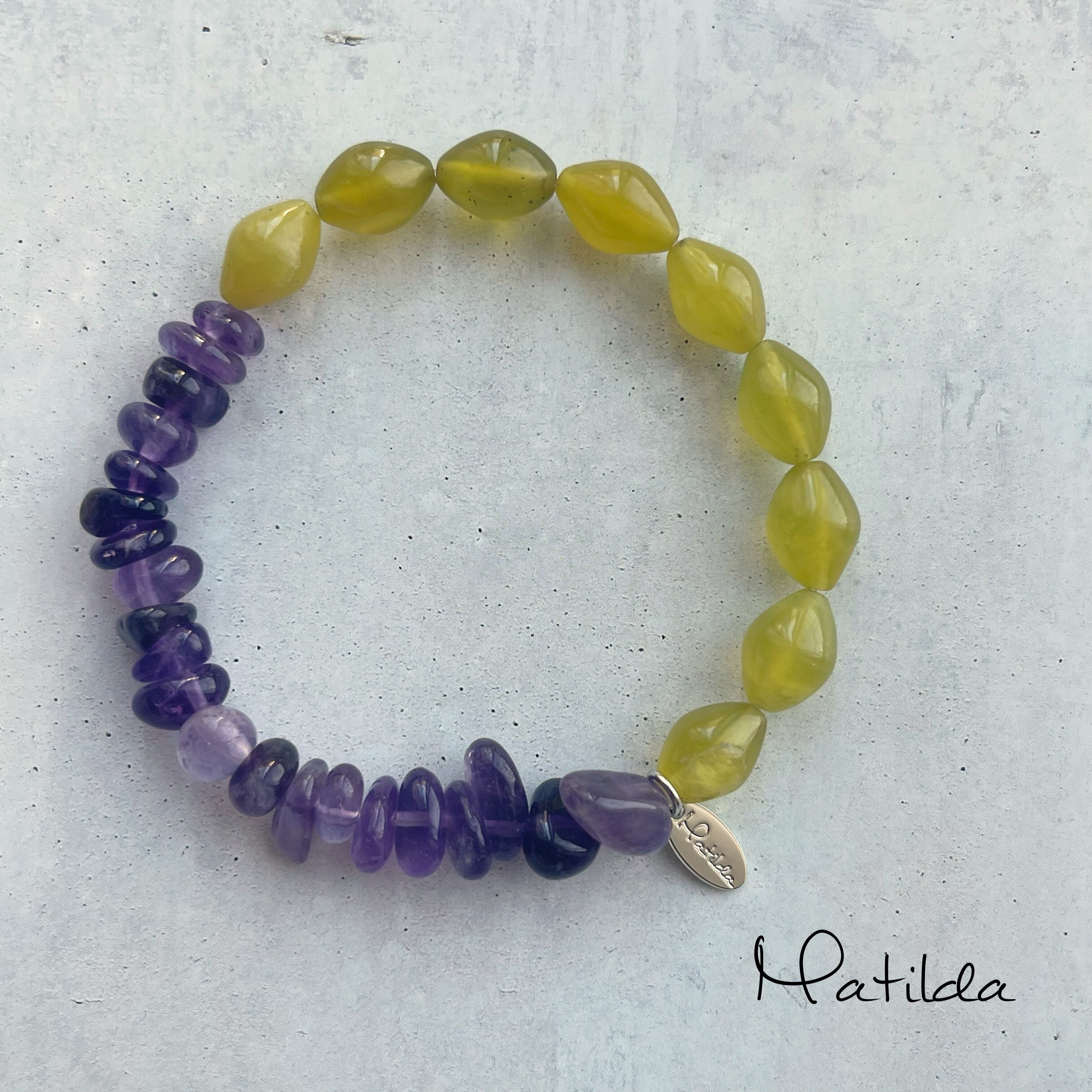 秋の実りカラーのアメジスト×オリーブジェイド。