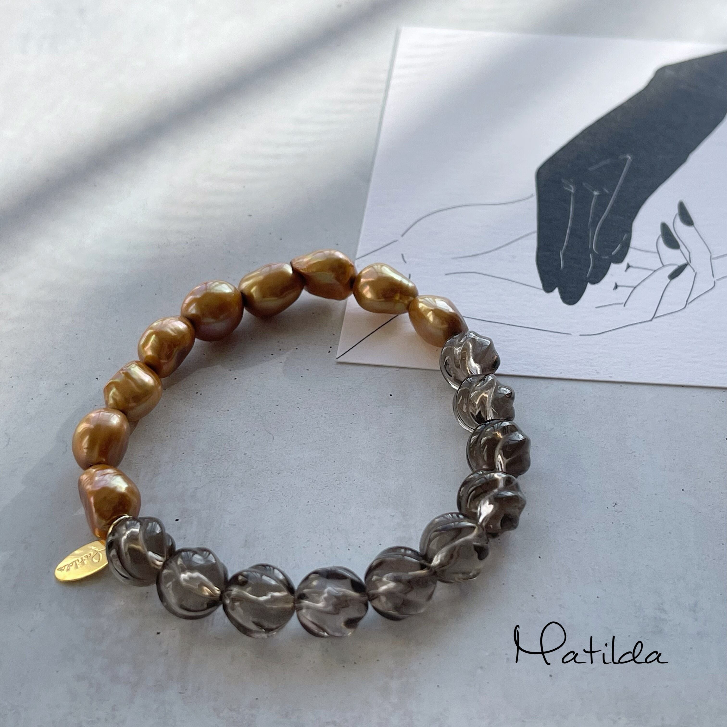 【再販】bicolor bracelet(淡水パール×スモーキークォーツ)