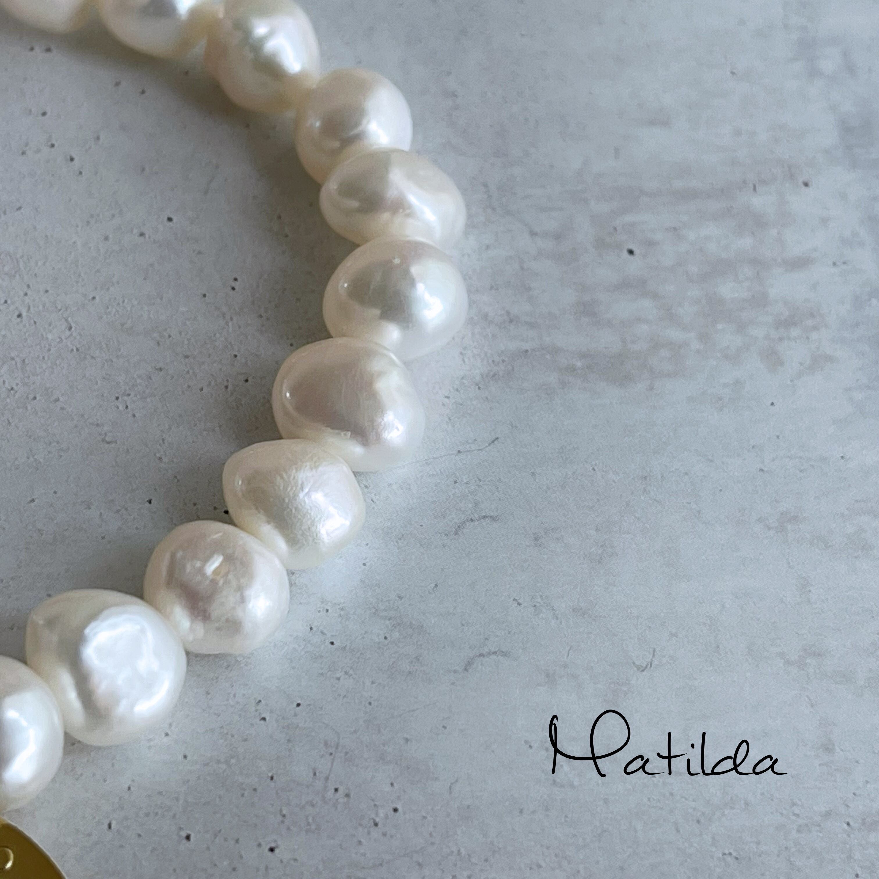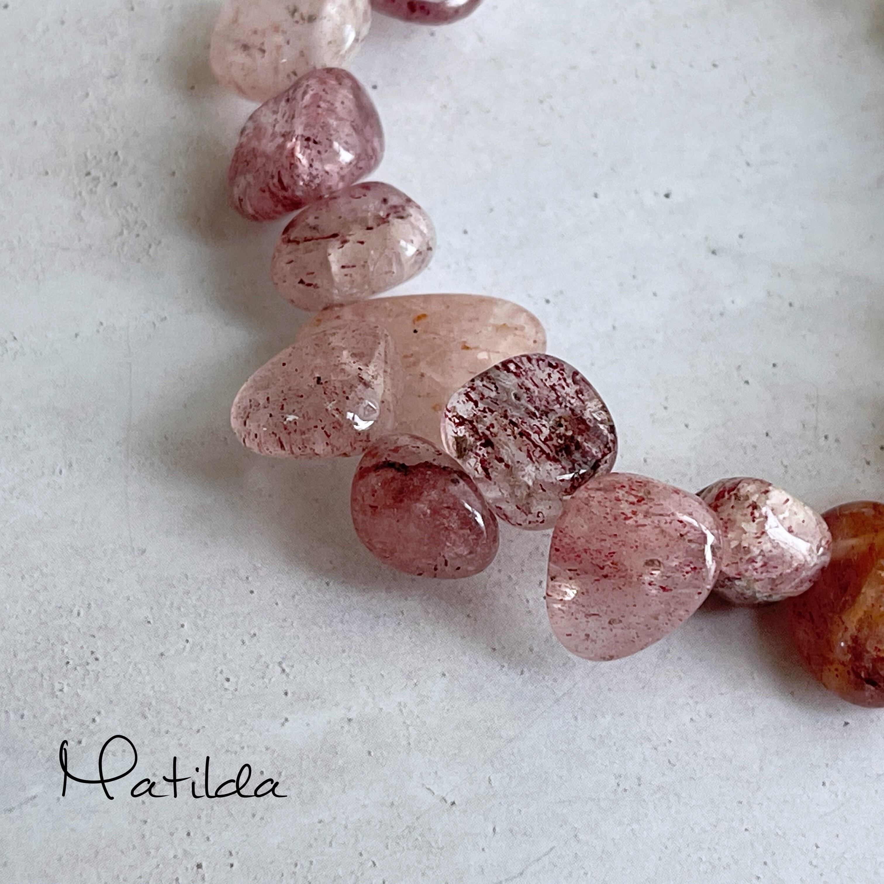 花弁のような形状がキュートなストロベリークォーツと淡水パール。