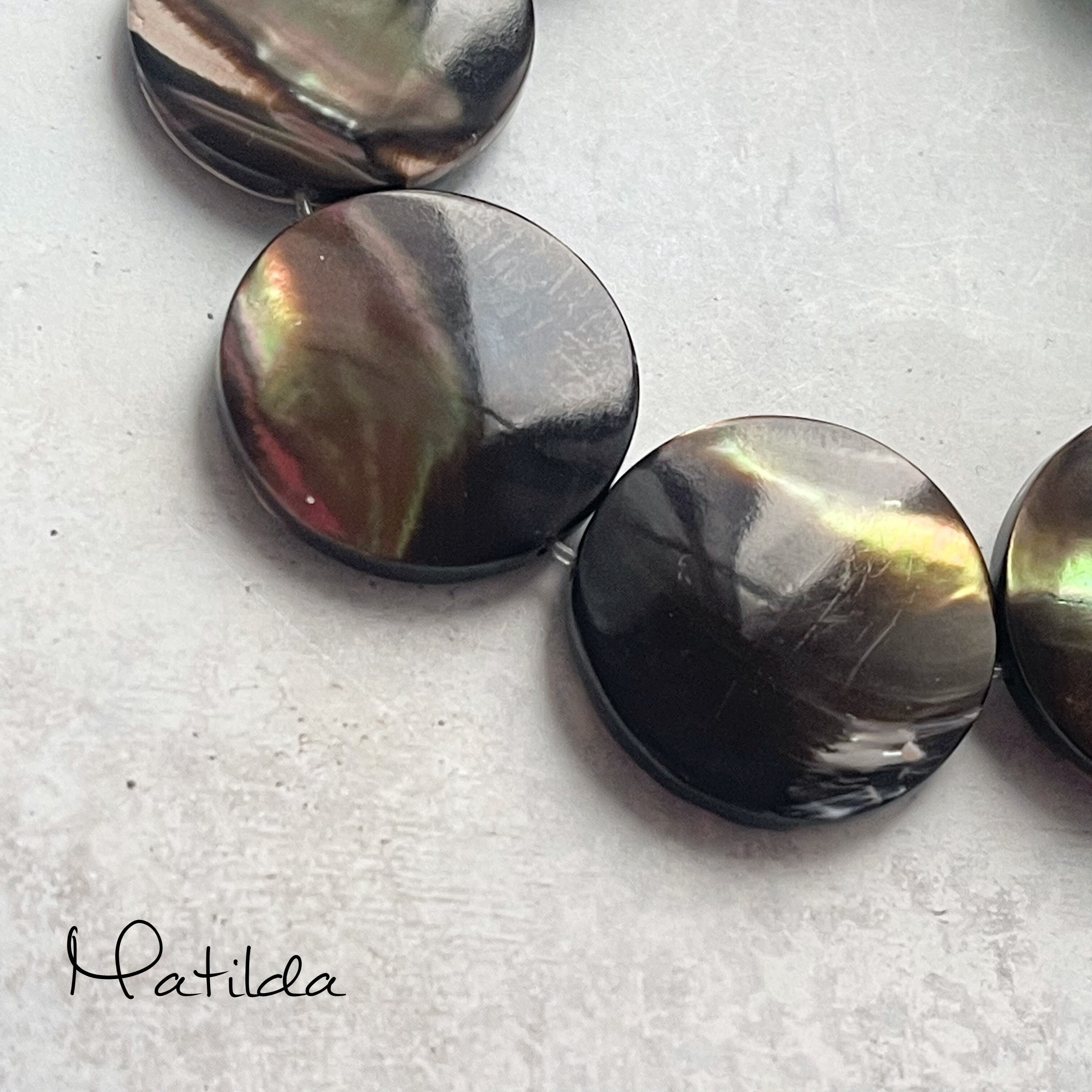 虹色が見られるブラウンカラーのマザーオブパールと、エメラルドグリーンのカルセドニー。