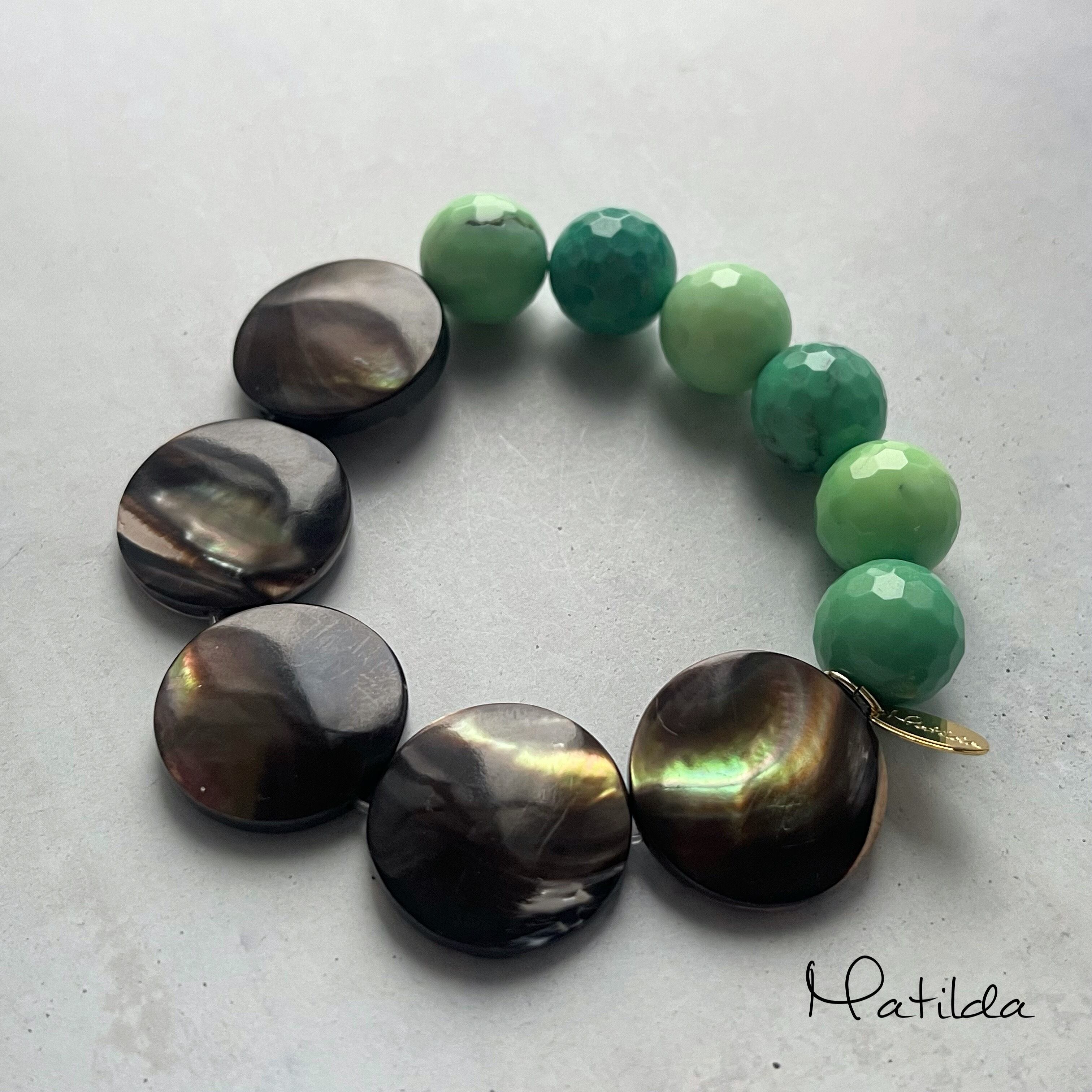 【再販】bicolor bracelet(マザーオブパール×グリーンカルセドニー)