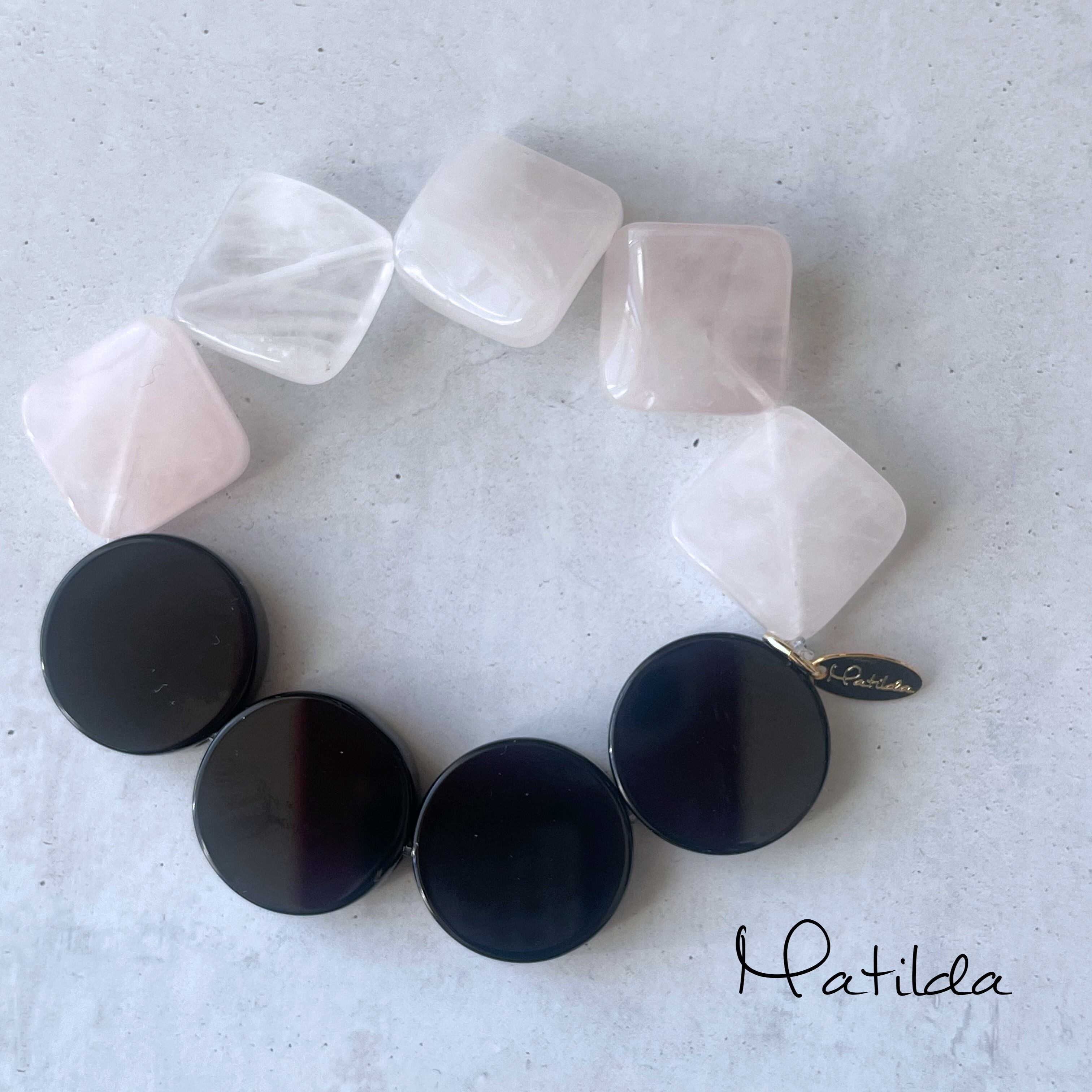 【再販】bicolor bracelet(ローズクォーツ×オニキス)