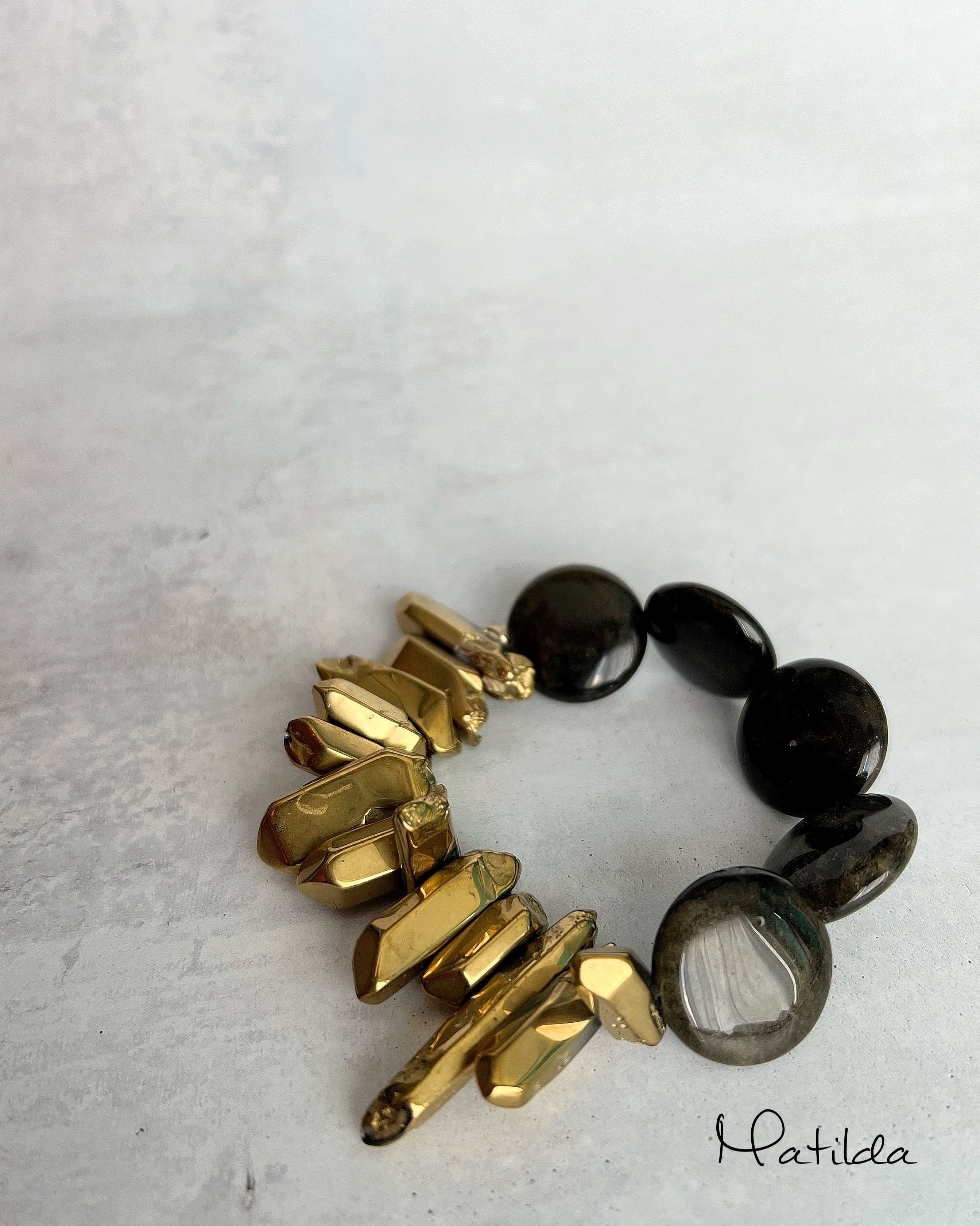 【再販】bicolor bracelet(ゴールデンオブシディアン×クリスタル)