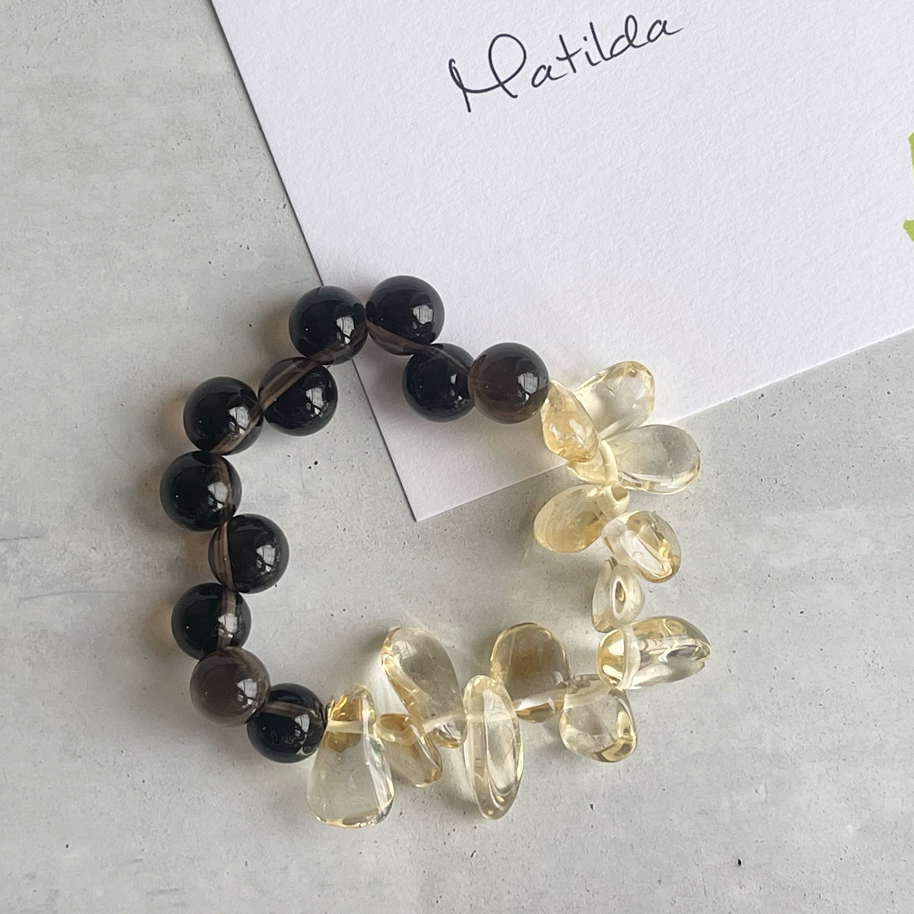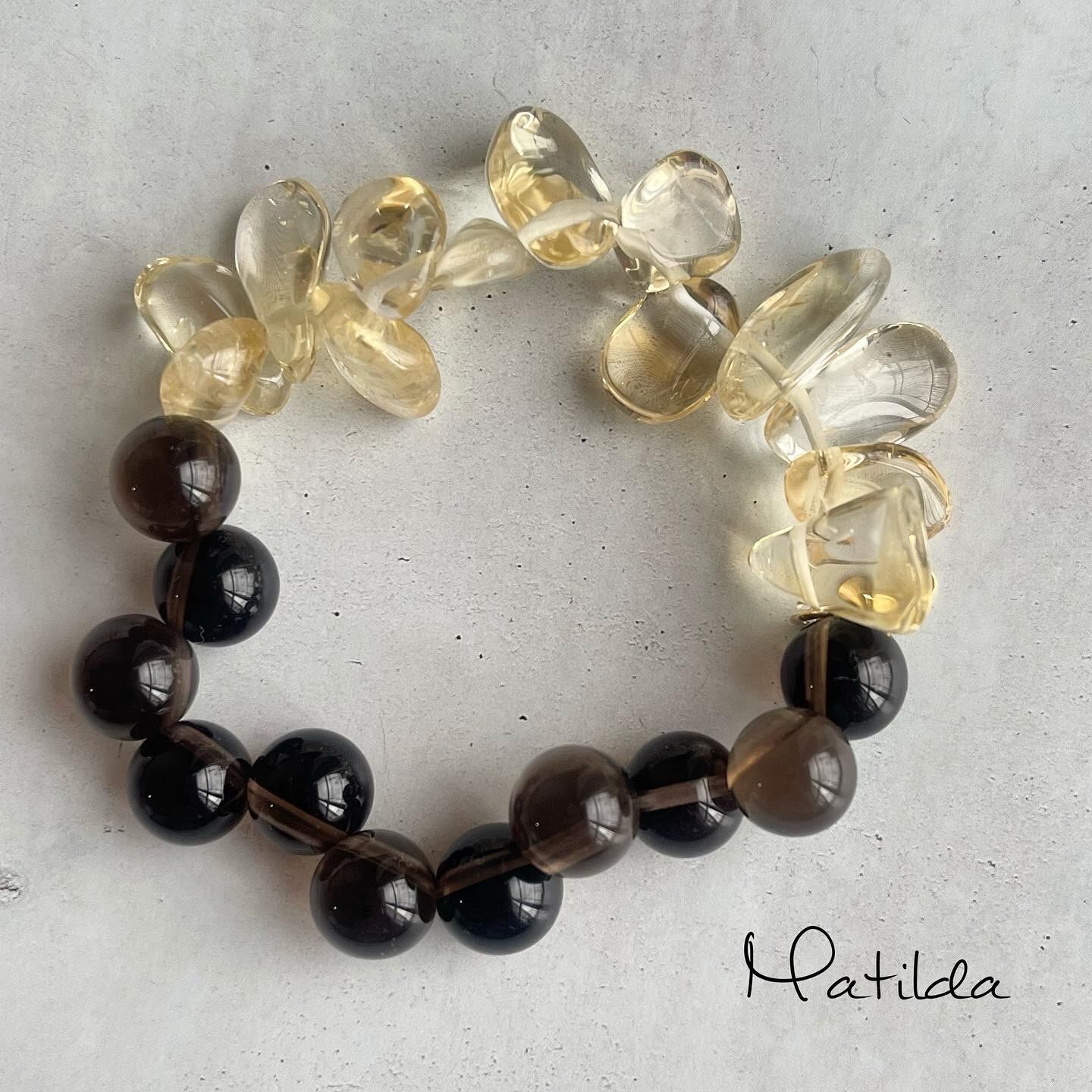 【再販】bicolor bracelet(シトリン×スモーキークォーツ)