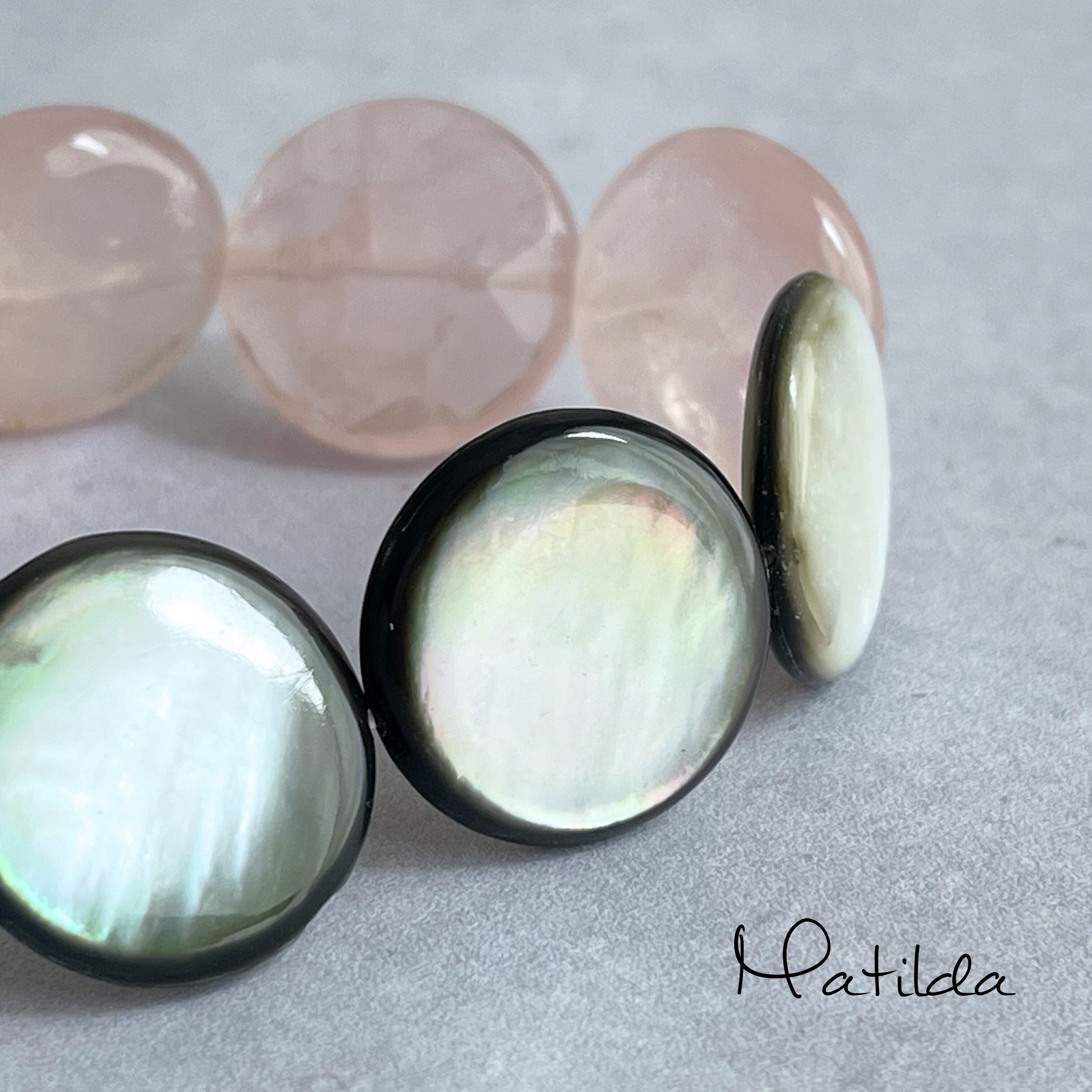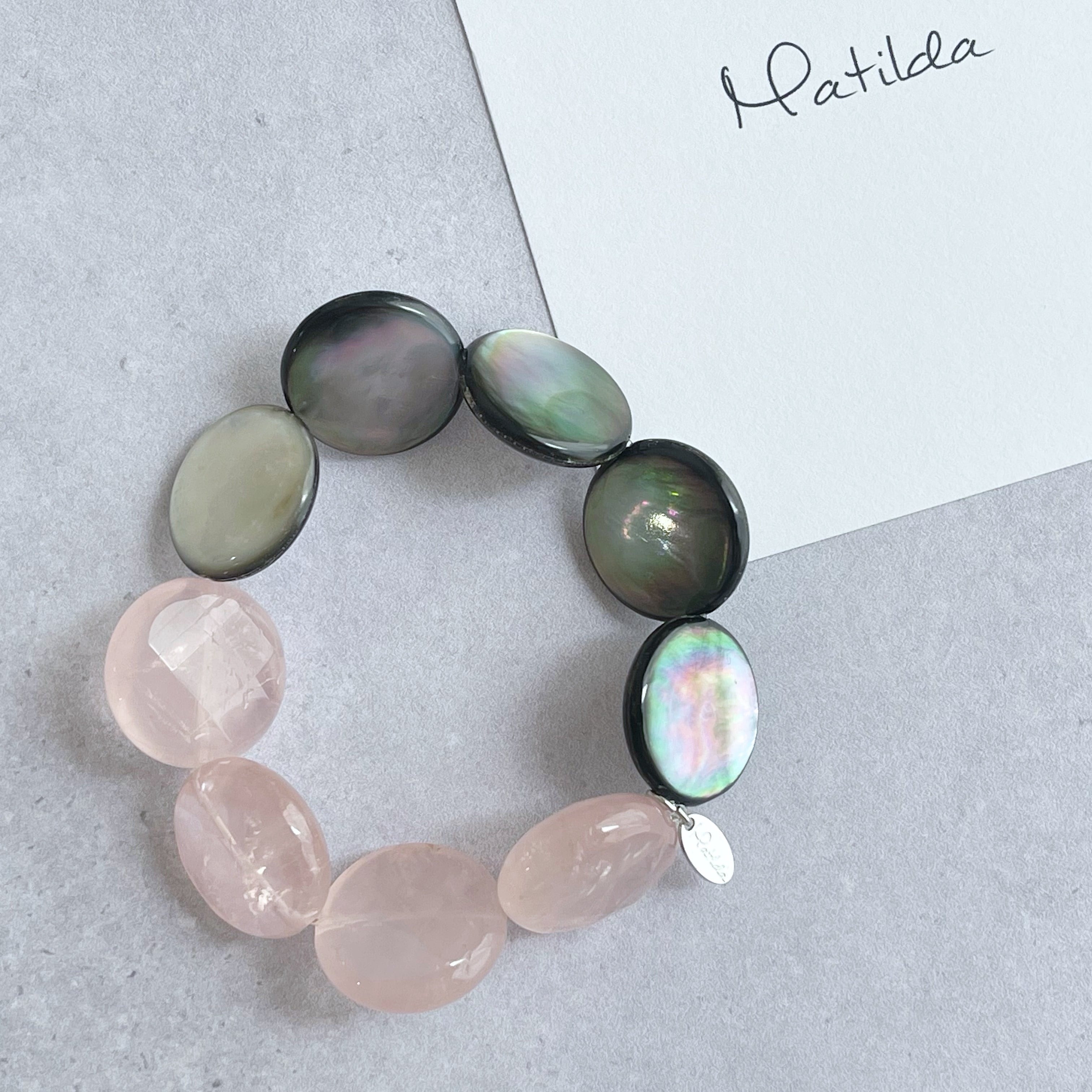 【再販】bicolor bracelet(ローズクォーツ×ブラックシェル)