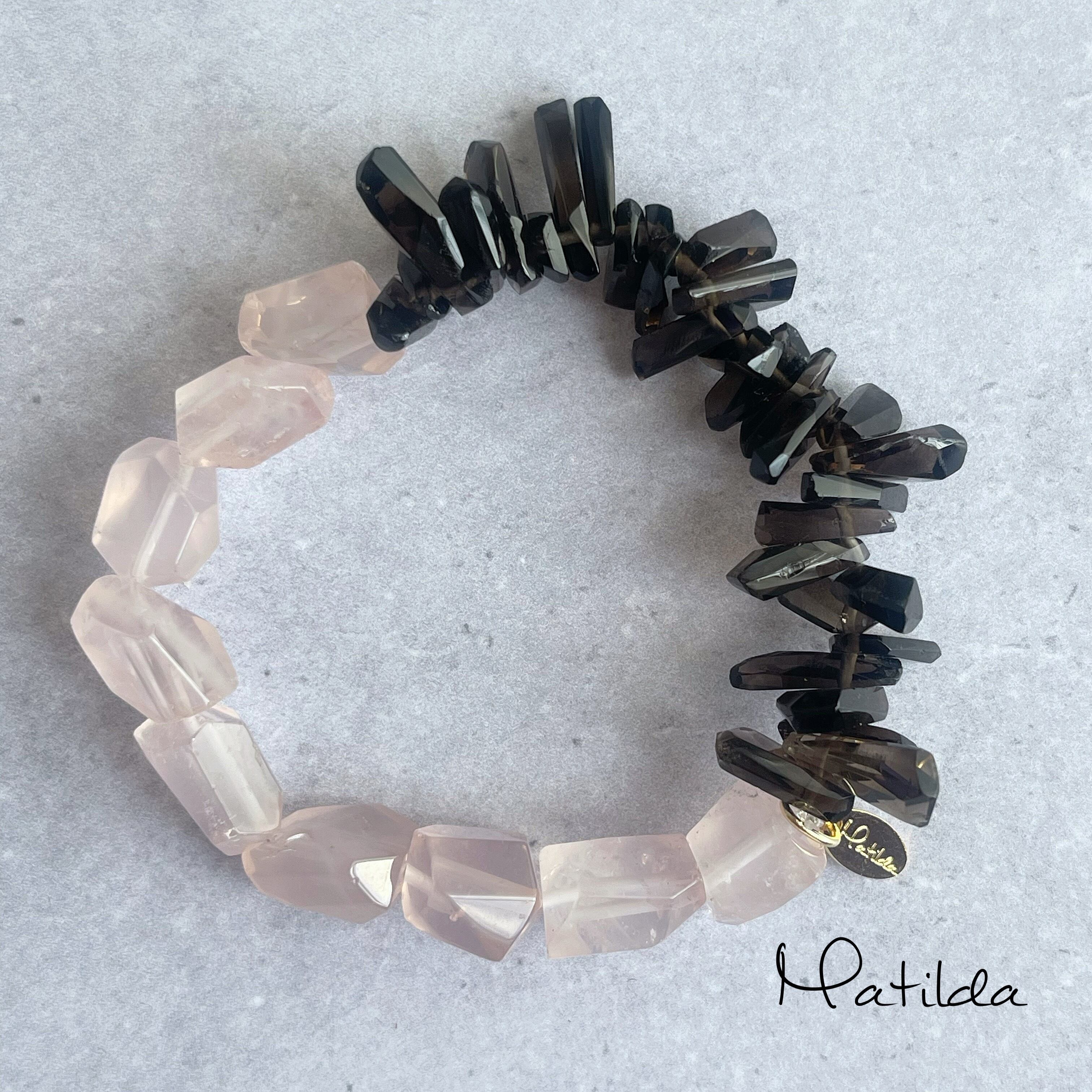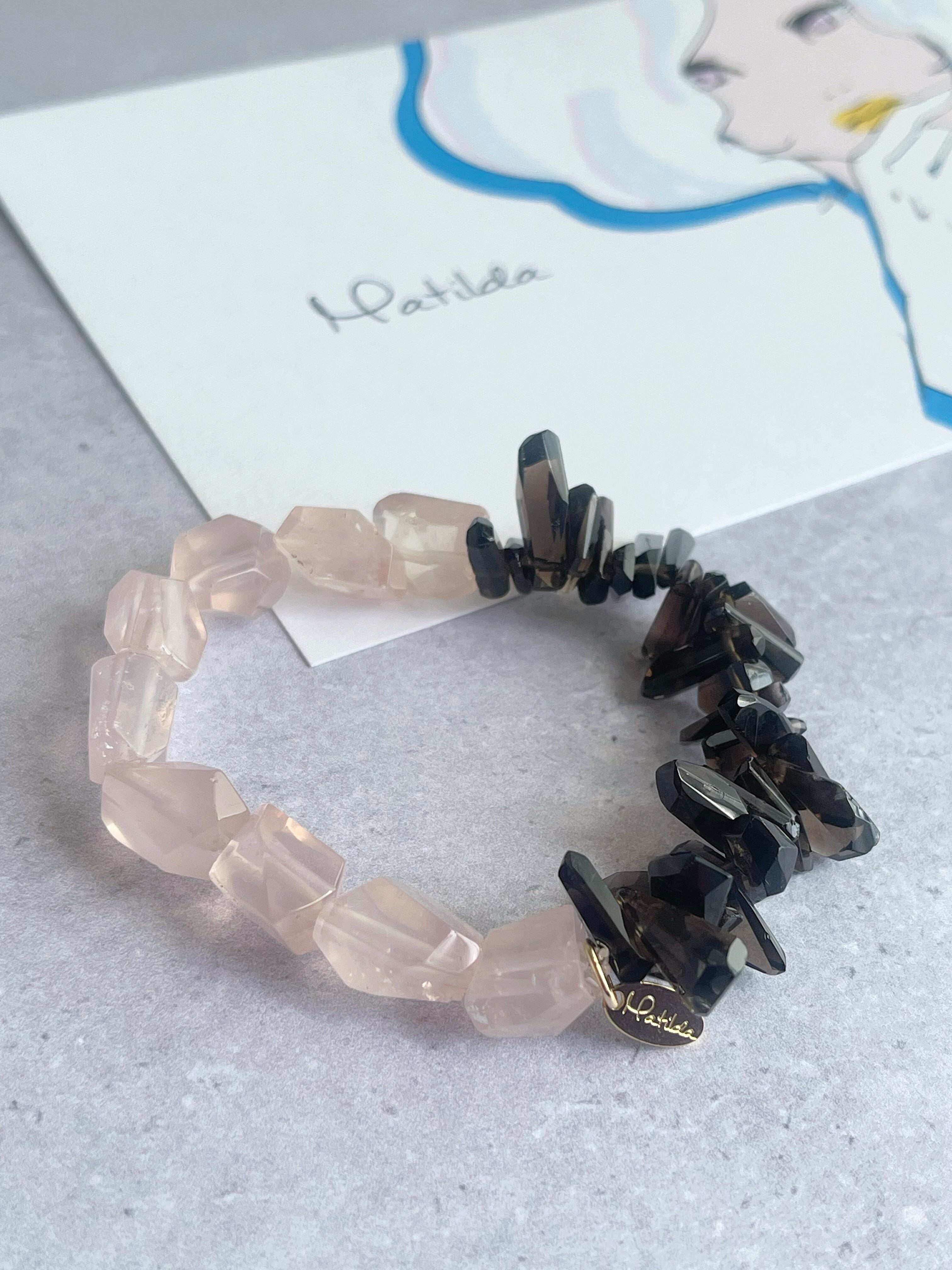 【再販】bicolor bracelet(ローズクォーツ×スモーキークォーツ)