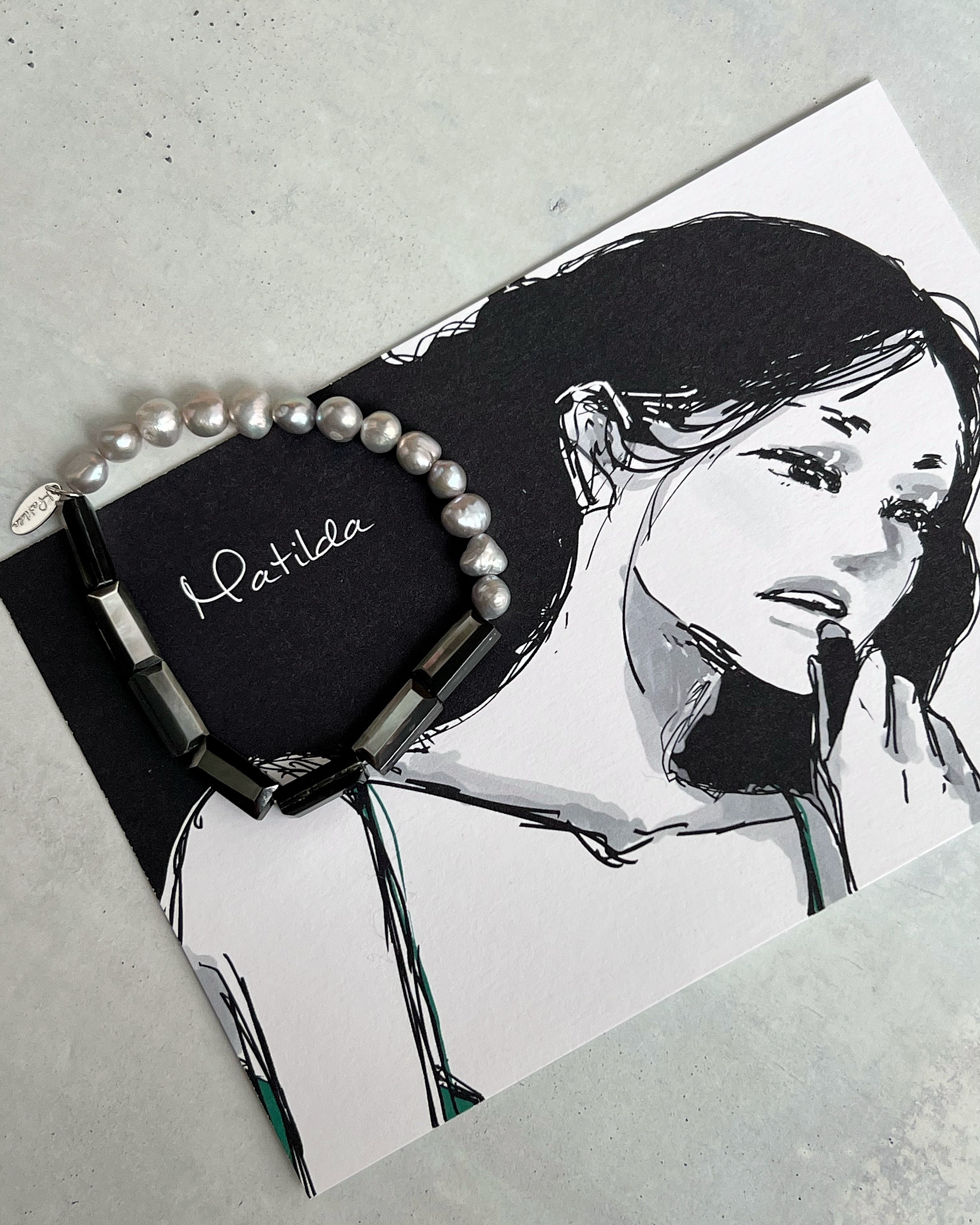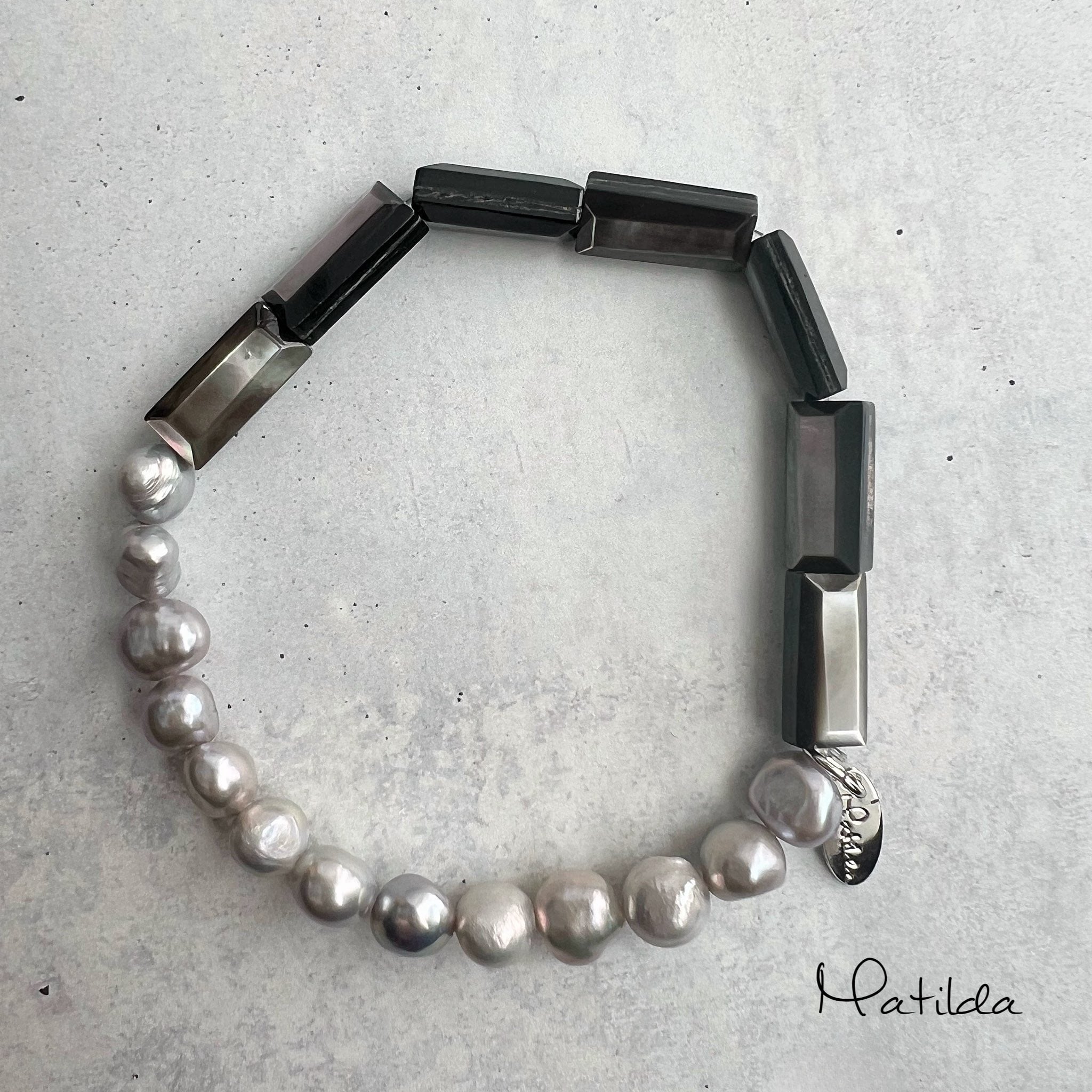シェル×淡水パールというレディの定番の組み合わせを、MatildaらしいクールでスタイリッシュなMEN/UNISEX ラインに仕上げました。