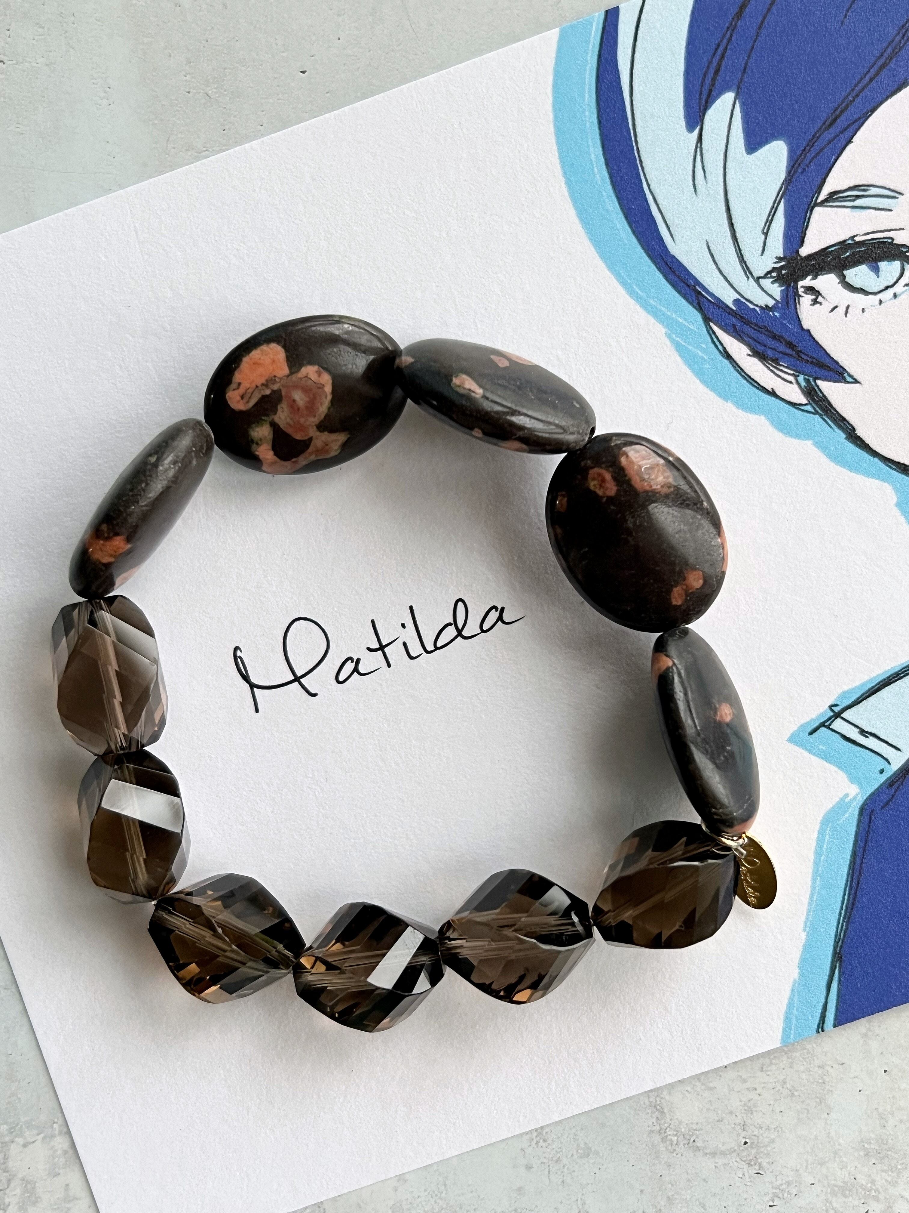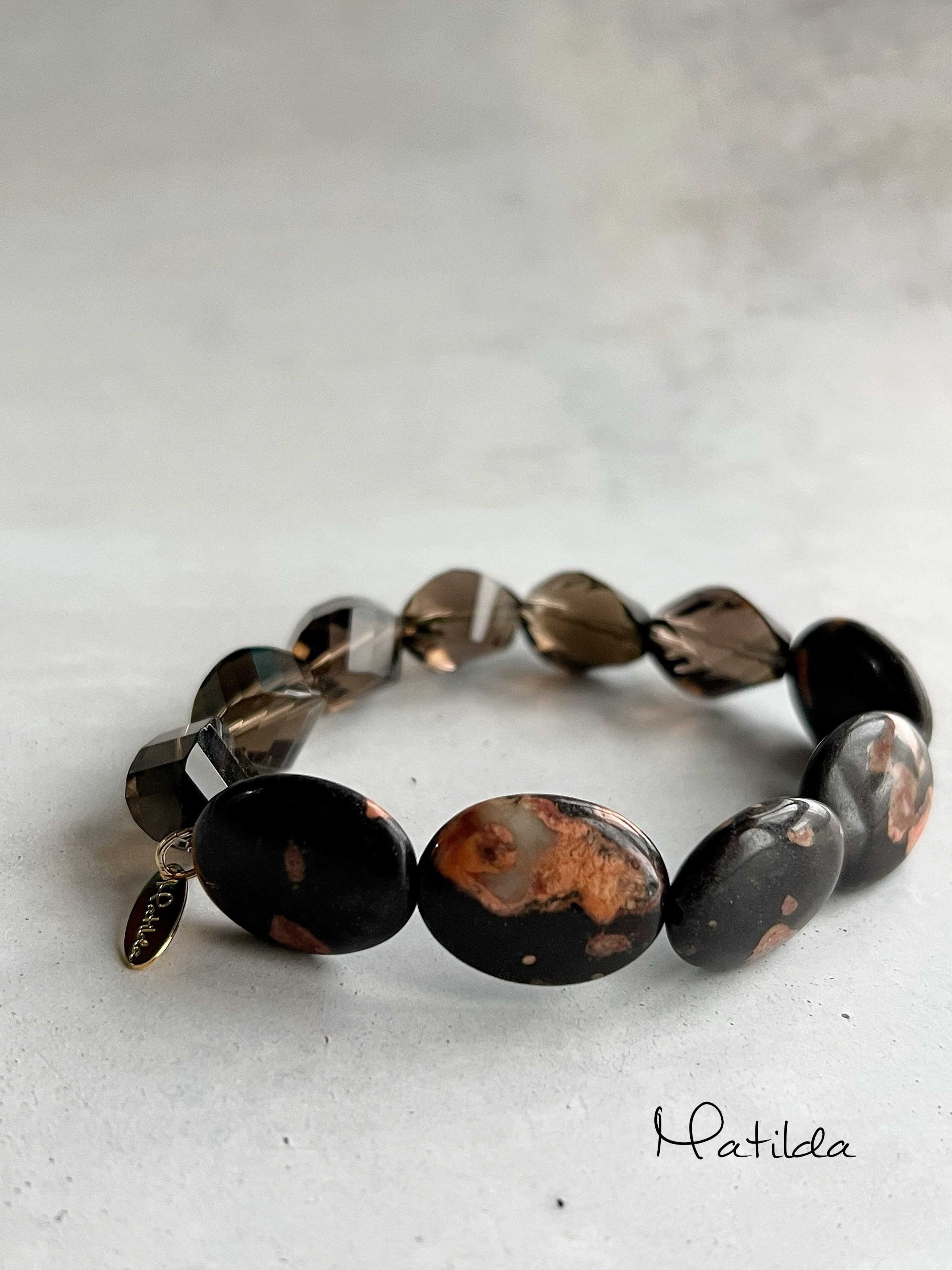 bicolor bracelet(レオパードジャスパー×スモーキークォーツ)