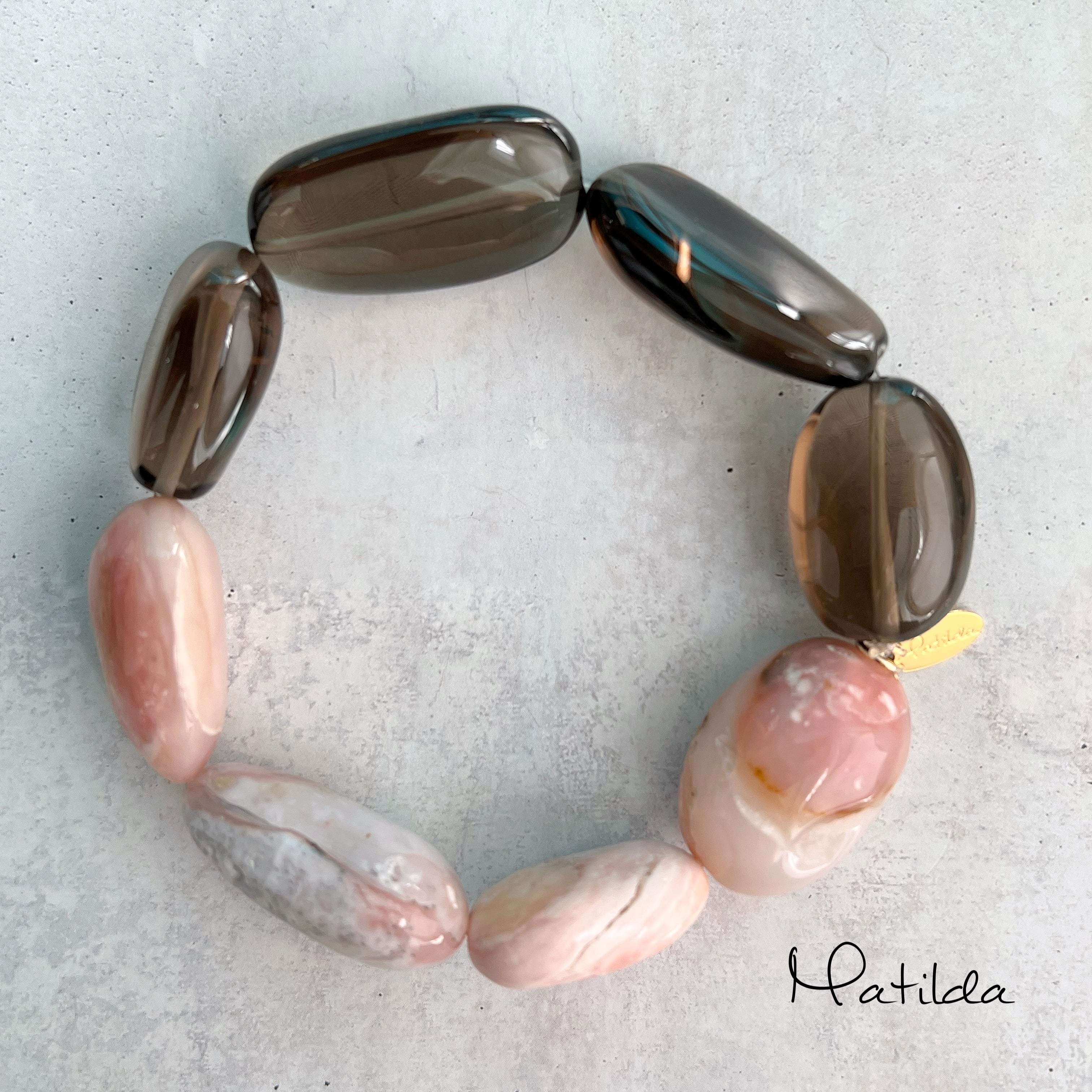 【再販】bicolor bracelet(ピンクオパール×スモーキークォーツ)
