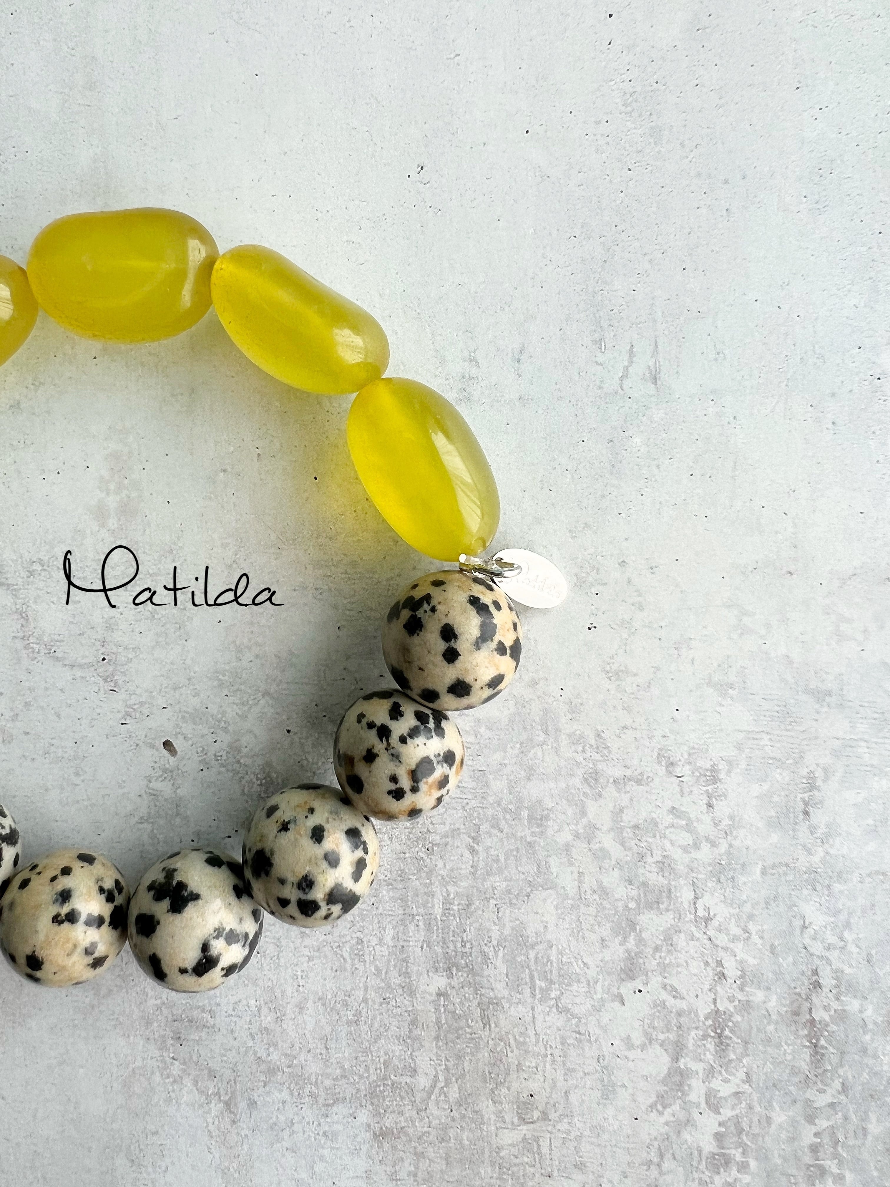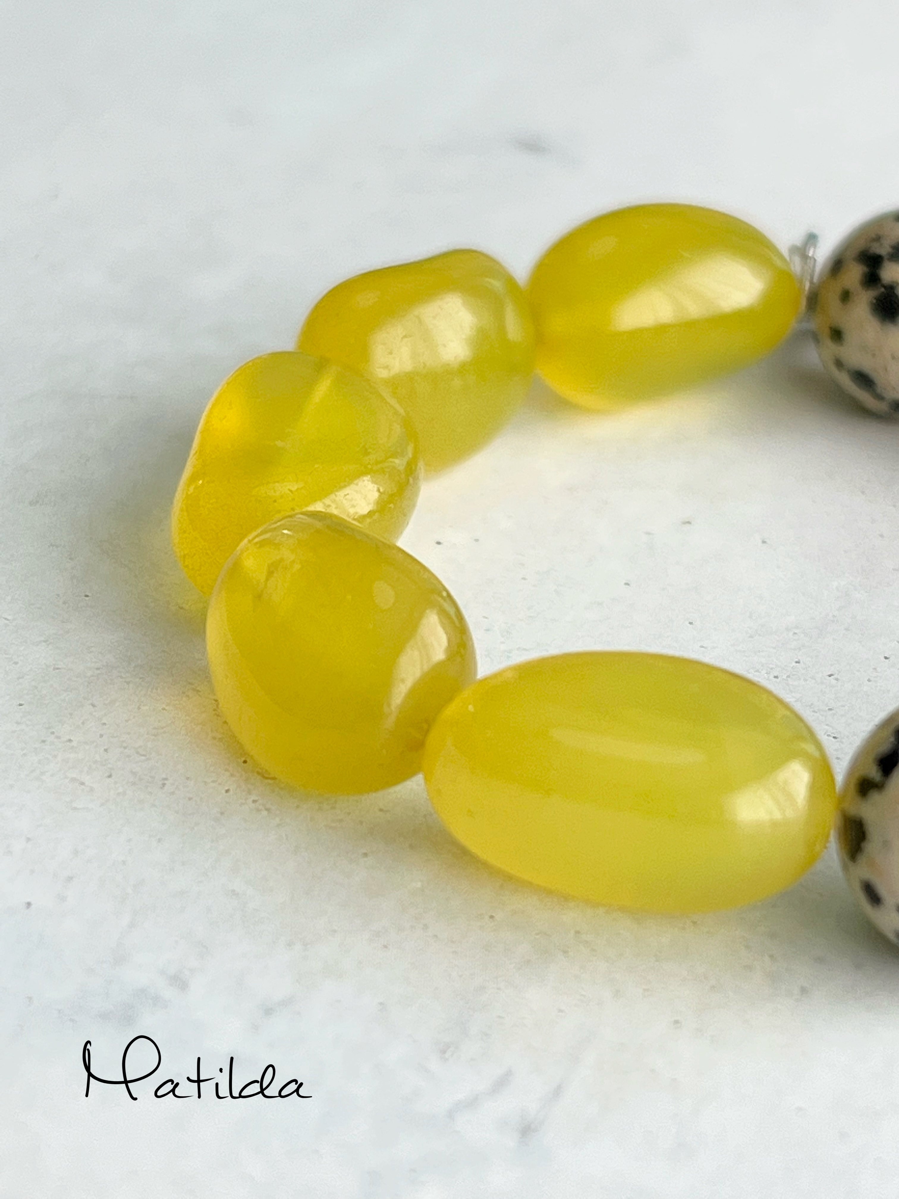 bicolor bracelet(ダルメシアンジャスパー×イエローカルセドニー)