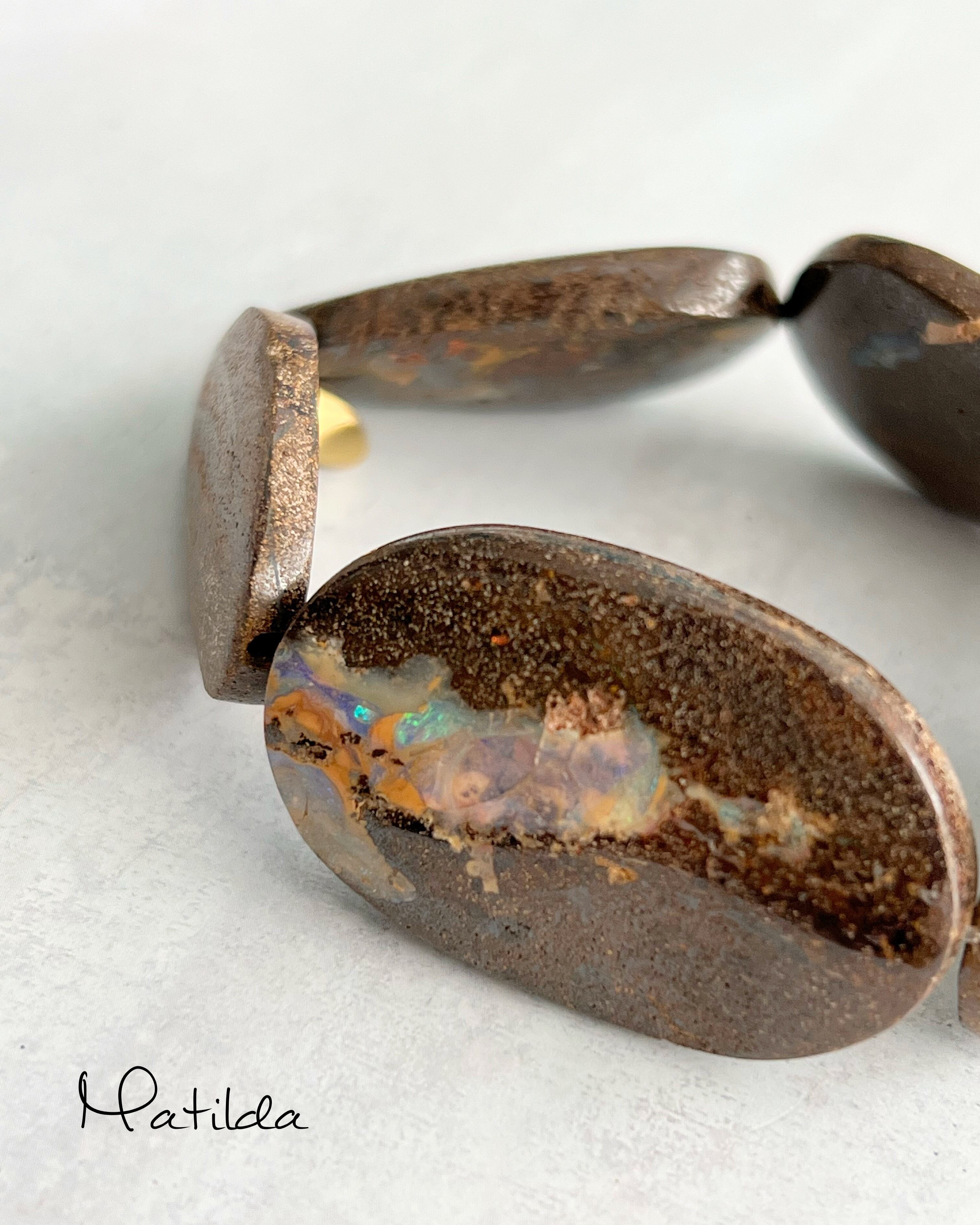 力強くアーシィなカラーがドラマティックな艶めきひときわ引き立てるボルダーオパールのみで編み上げた、唯一無二の存在感を放つ一本。