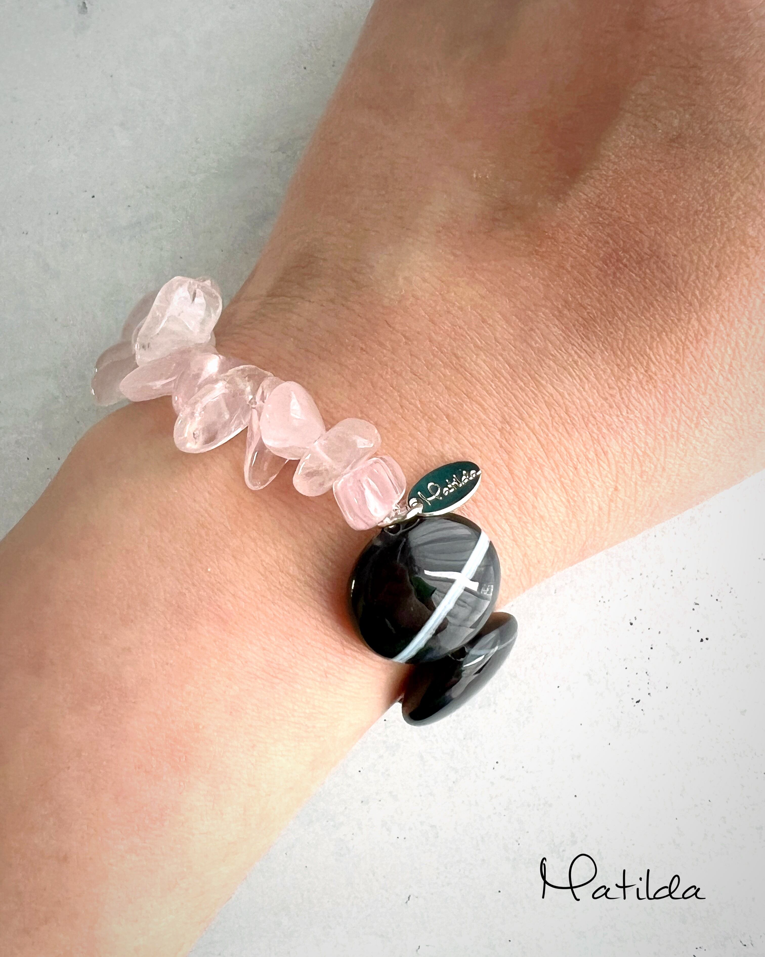 【再販】bicolor bracelet(ストライプオニキス×ローズクォーツ)