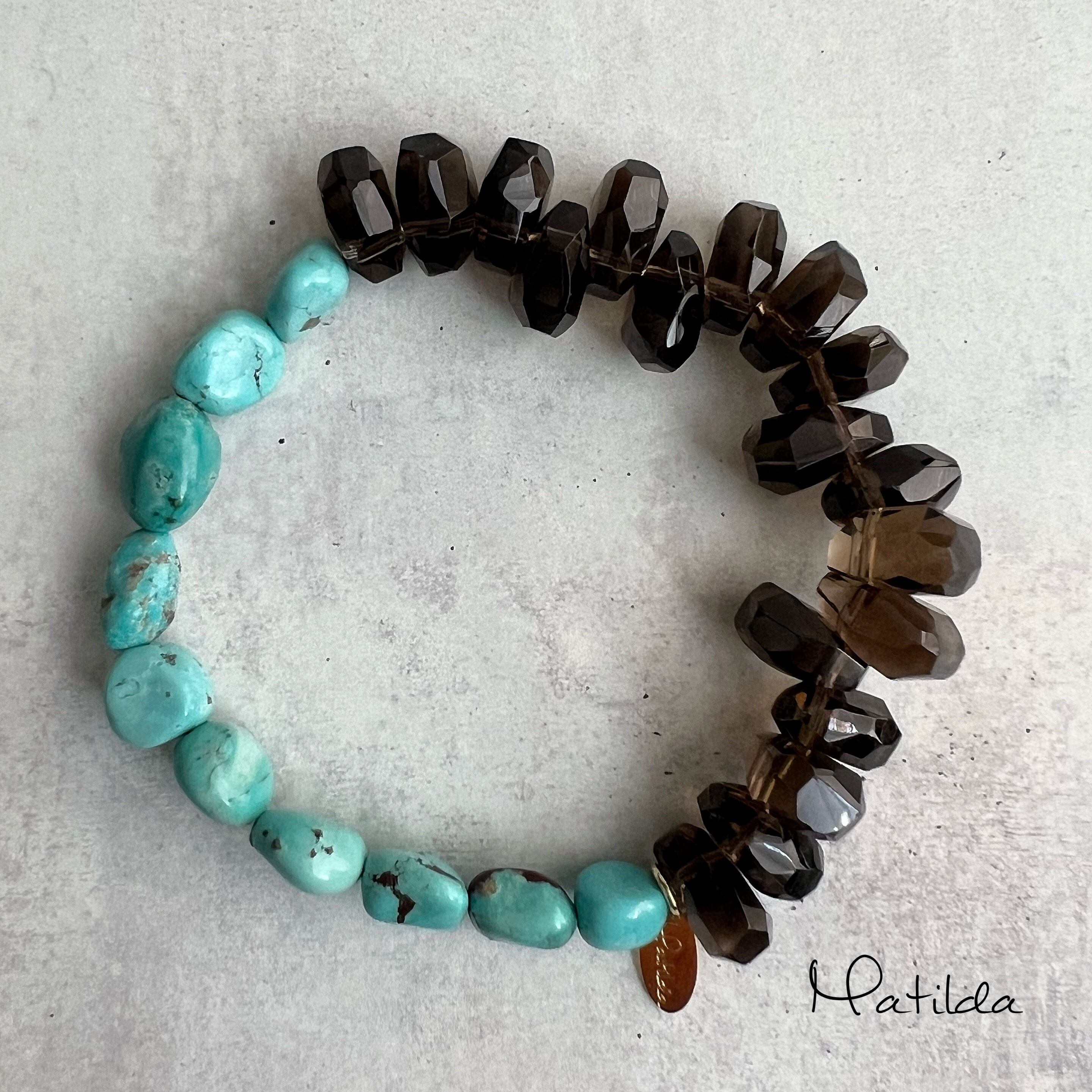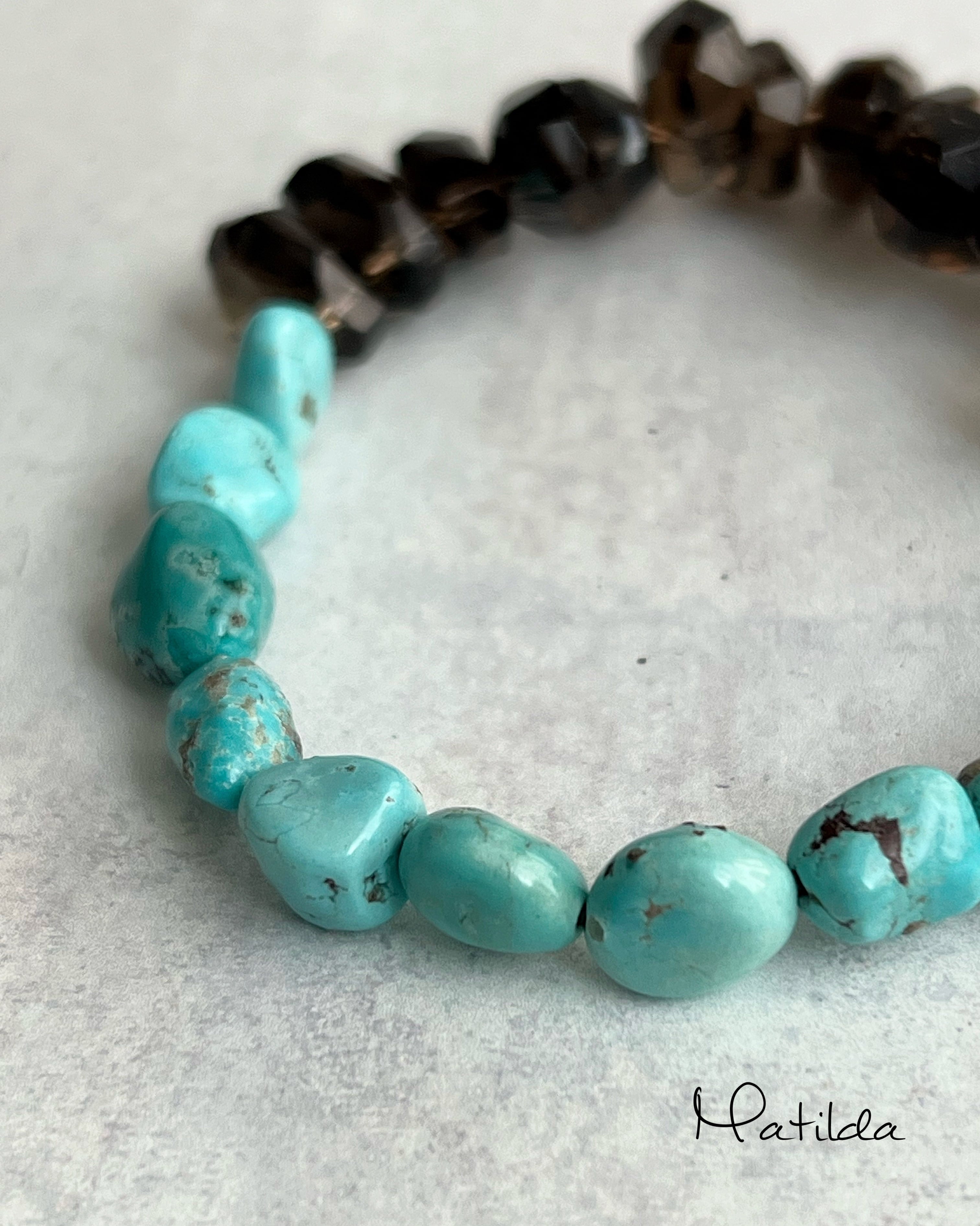 【再販】bicolor bracelet(ターコイズ×スモーキークォーツ)