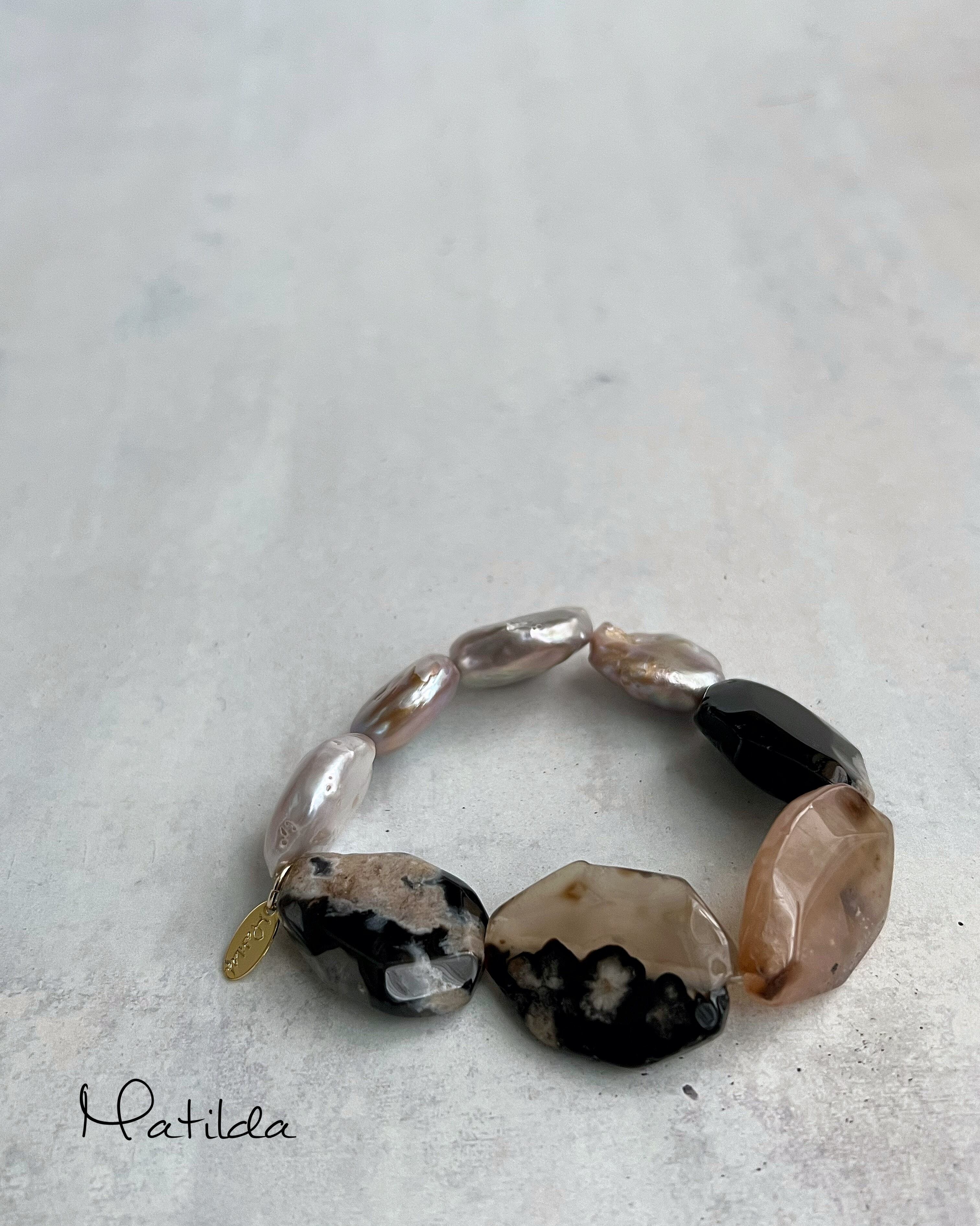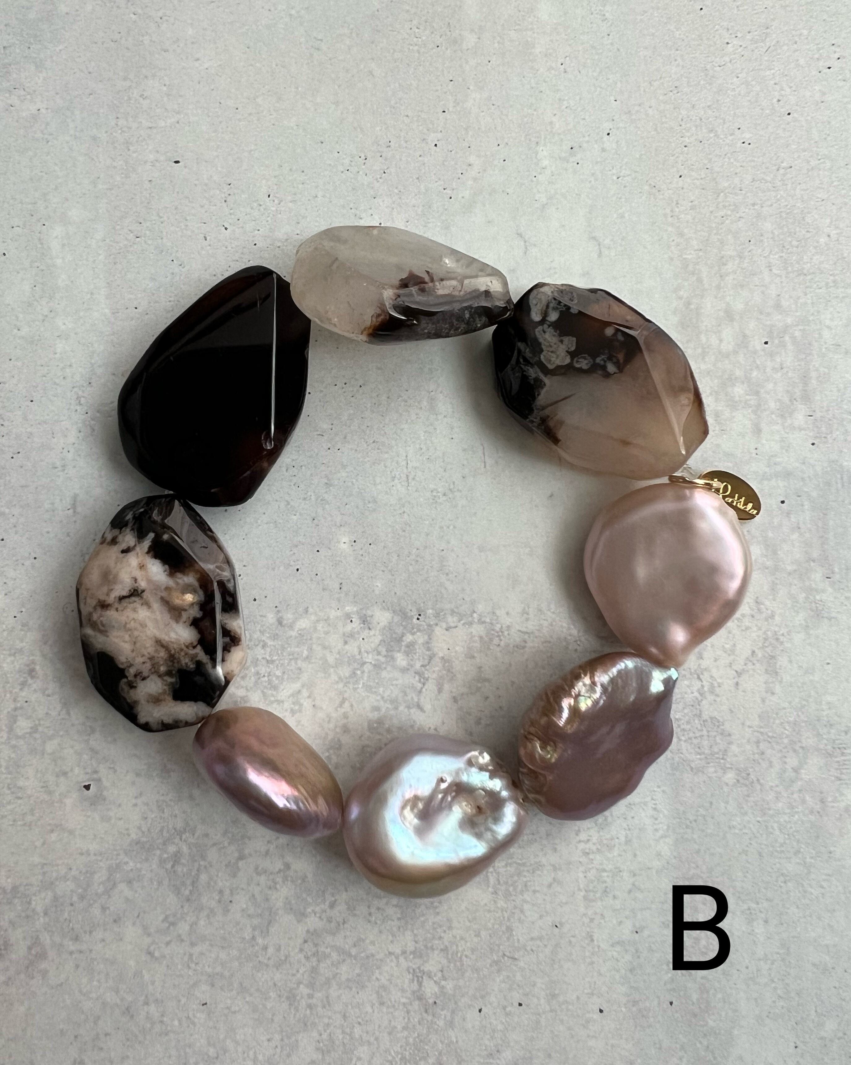bicolor bracelet(チェリーブロッサムアゲート×淡水パール)