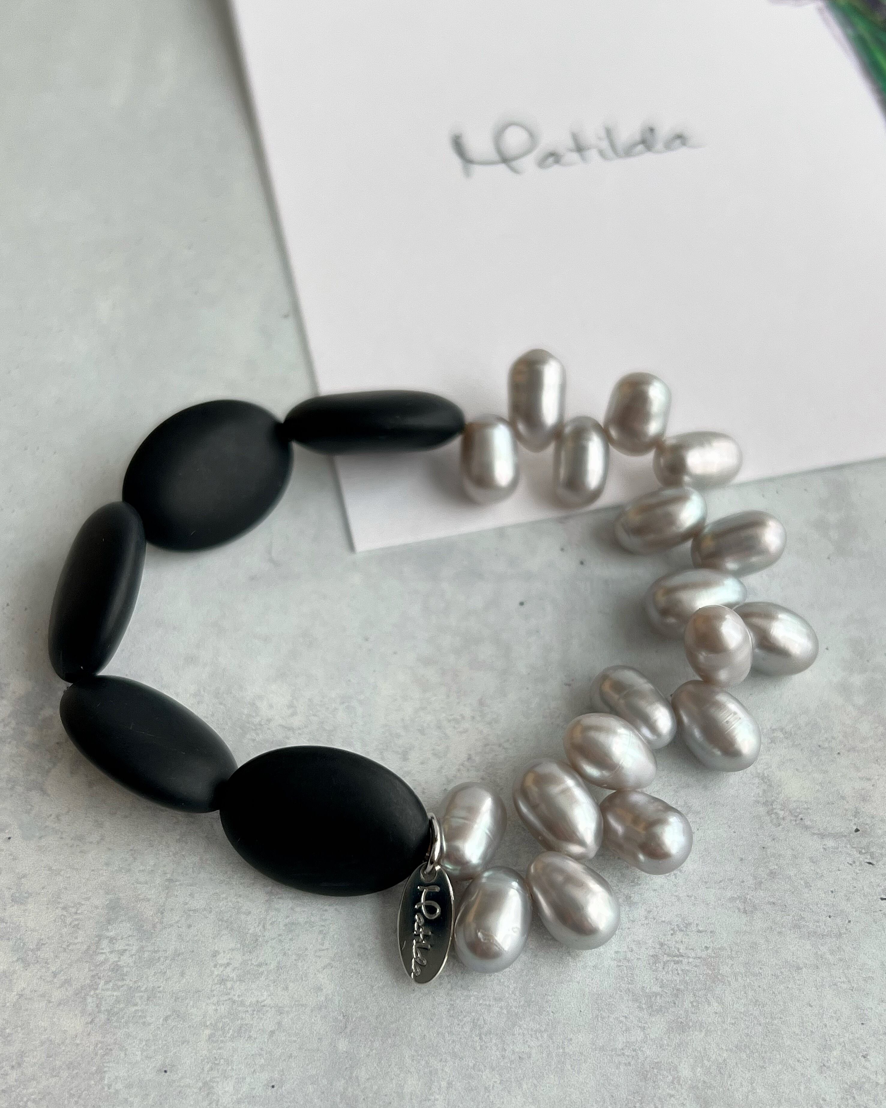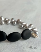 【再販】bicolor bracelet(マットオニキス×淡水パール)