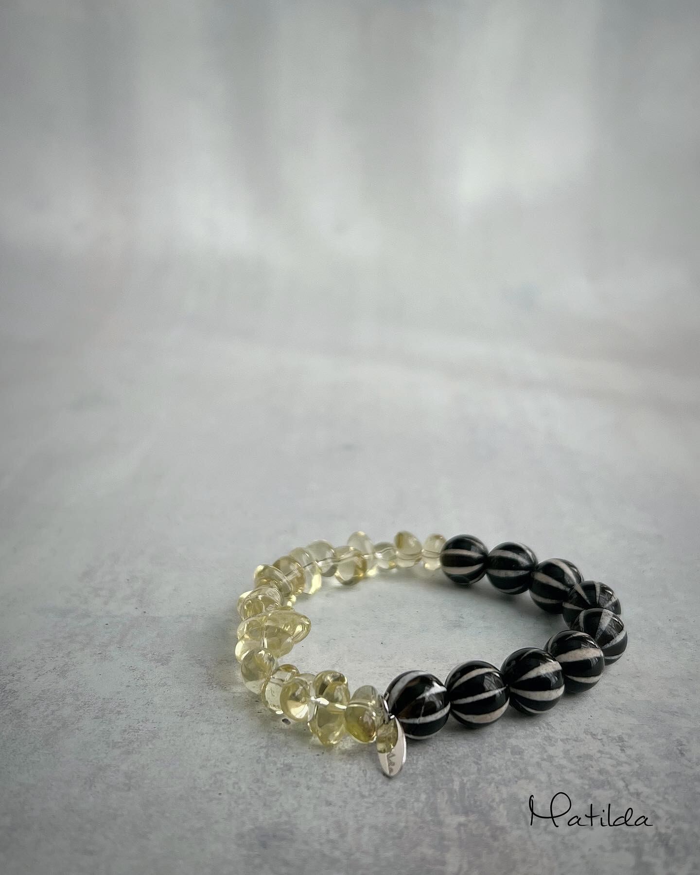 【再販】bicolor bracelet(レモンクォーツ×チベットアゲート)