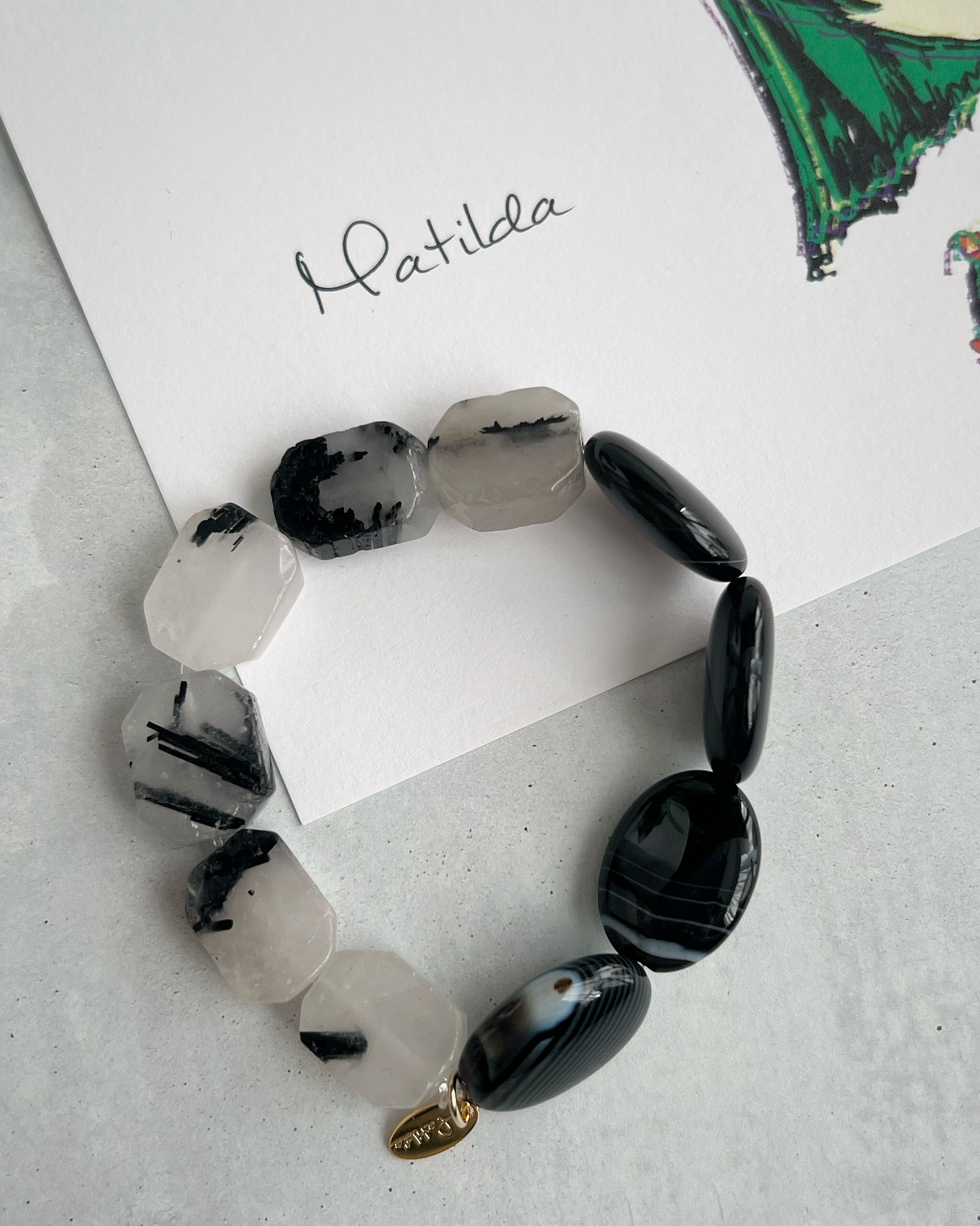 【再販】bicolor bracelet(ストライプオニキス×ブラックトルマリンインクォーツ)