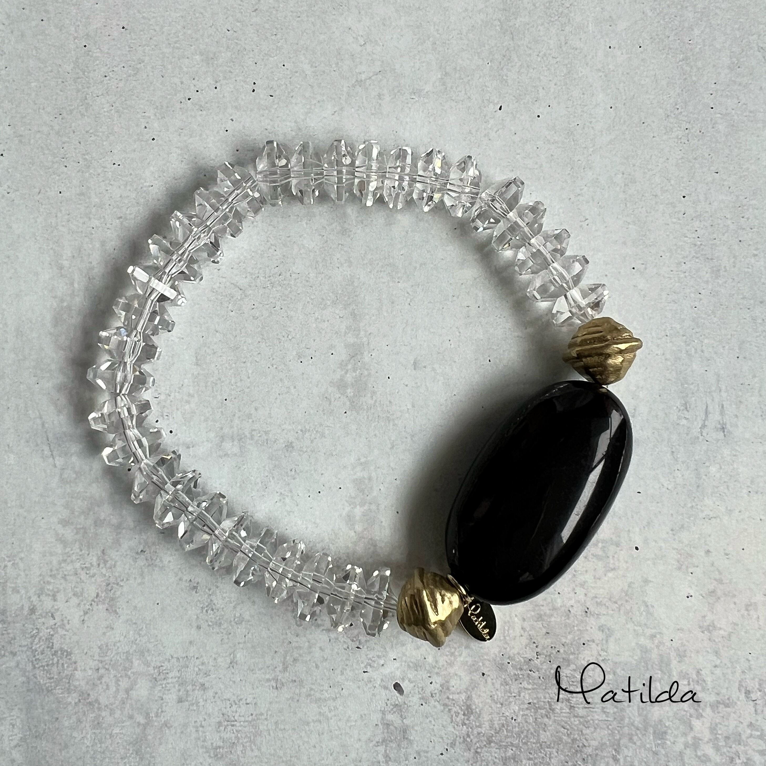 【再販】bicolor bracelet(レインボーオブシディアン×クォーツ)