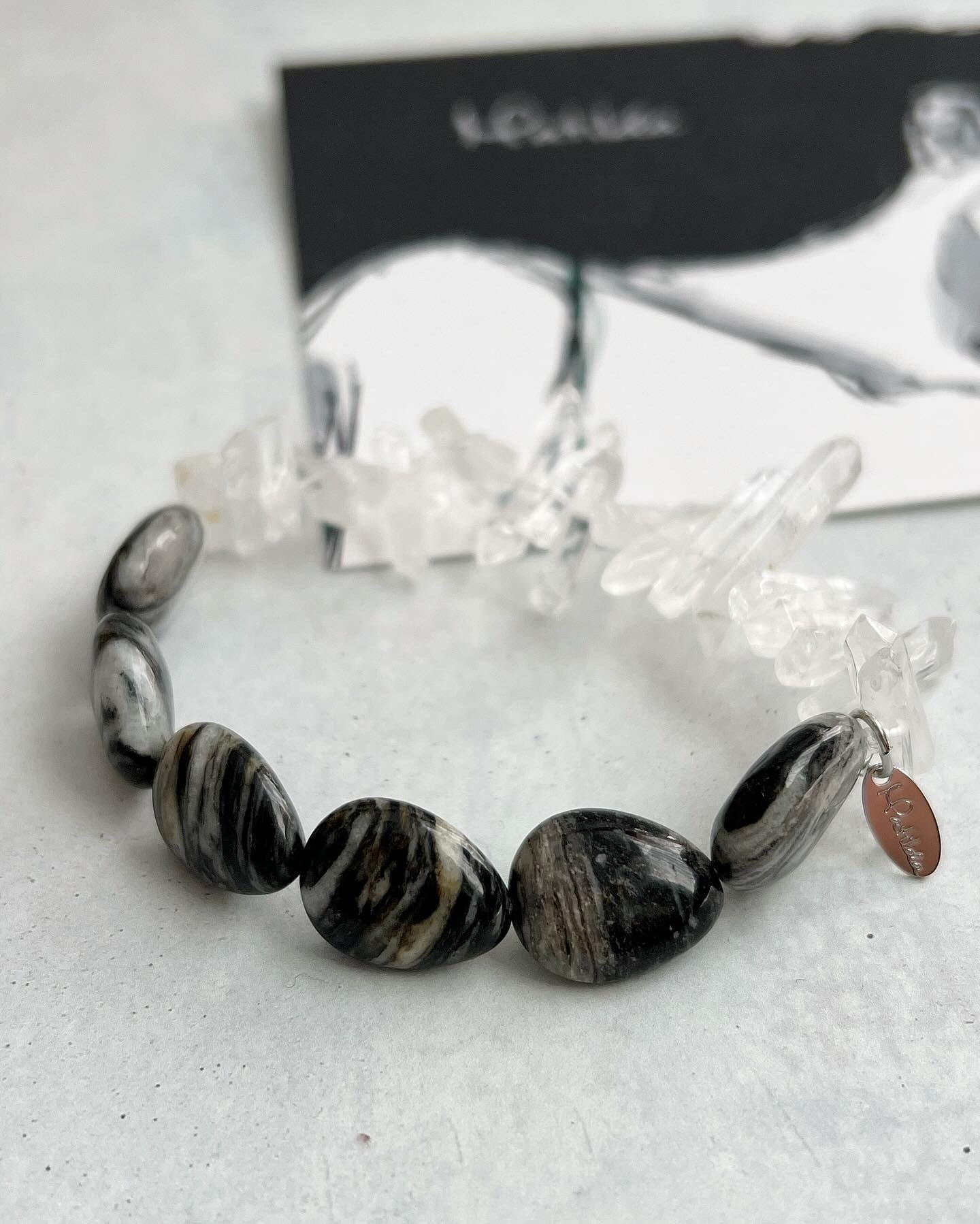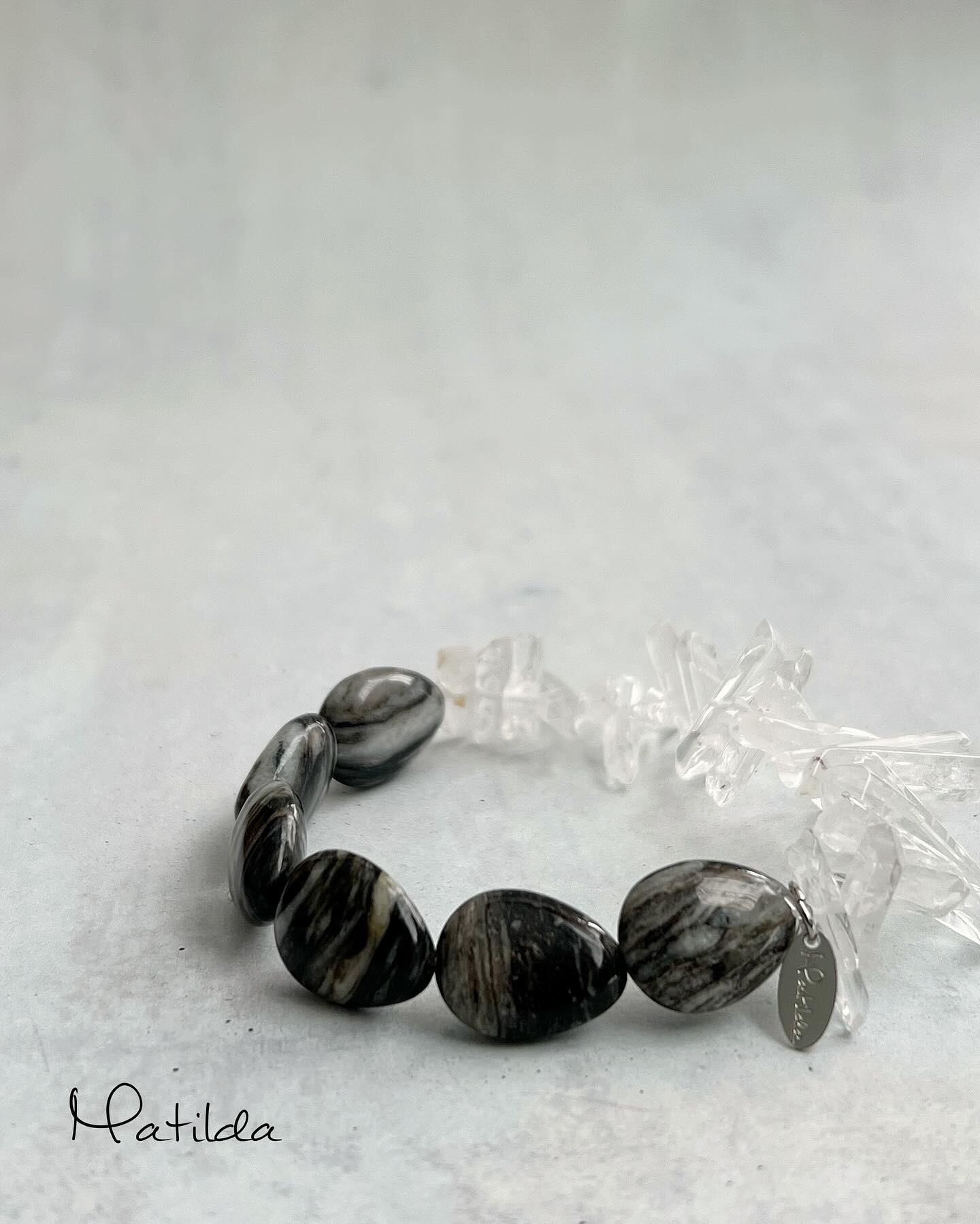 bicolor bracelet(ゼブラジャスパー×クォーツ)