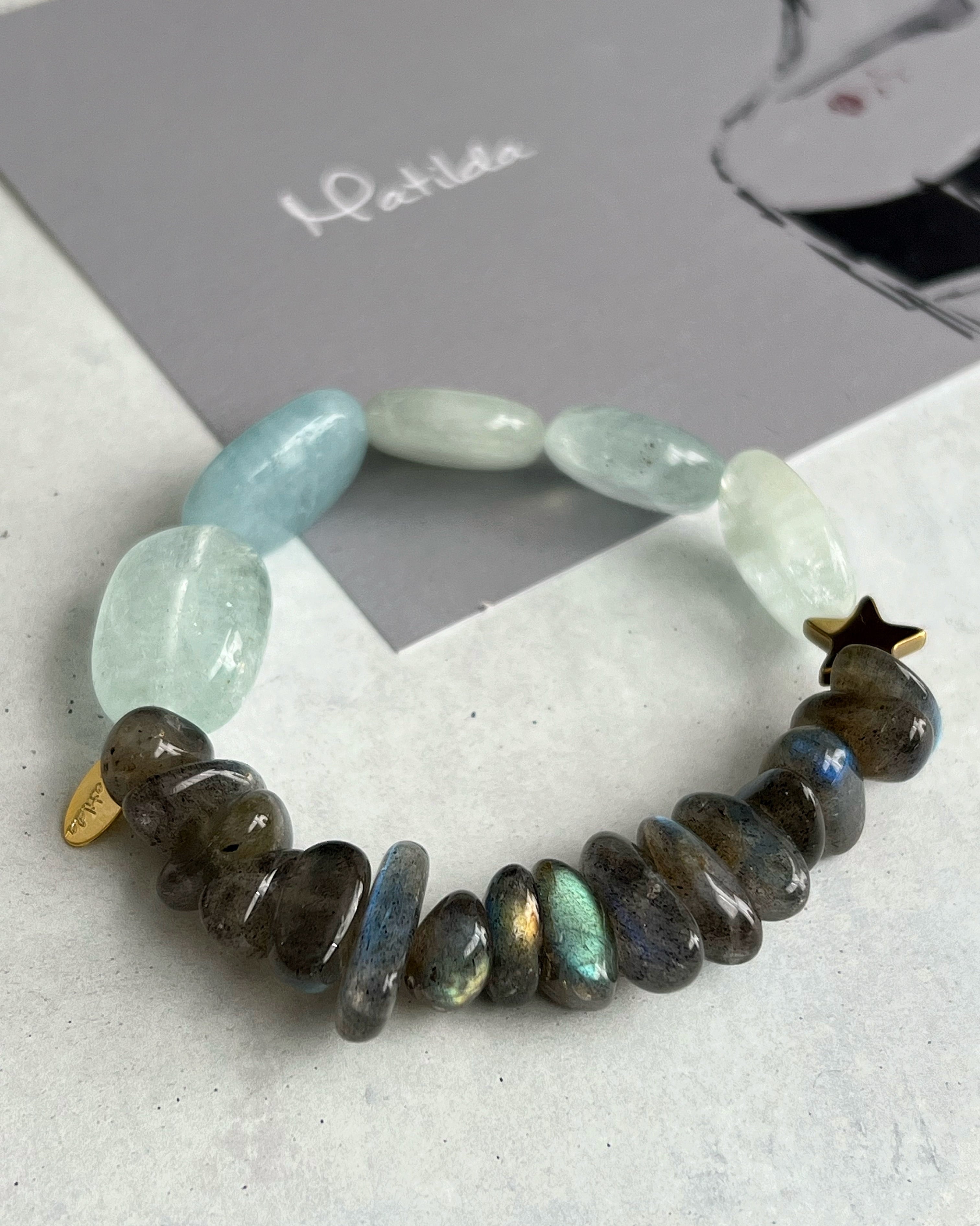 【再販】bicolor bracelet(ラブラドライト×アクアマリン)