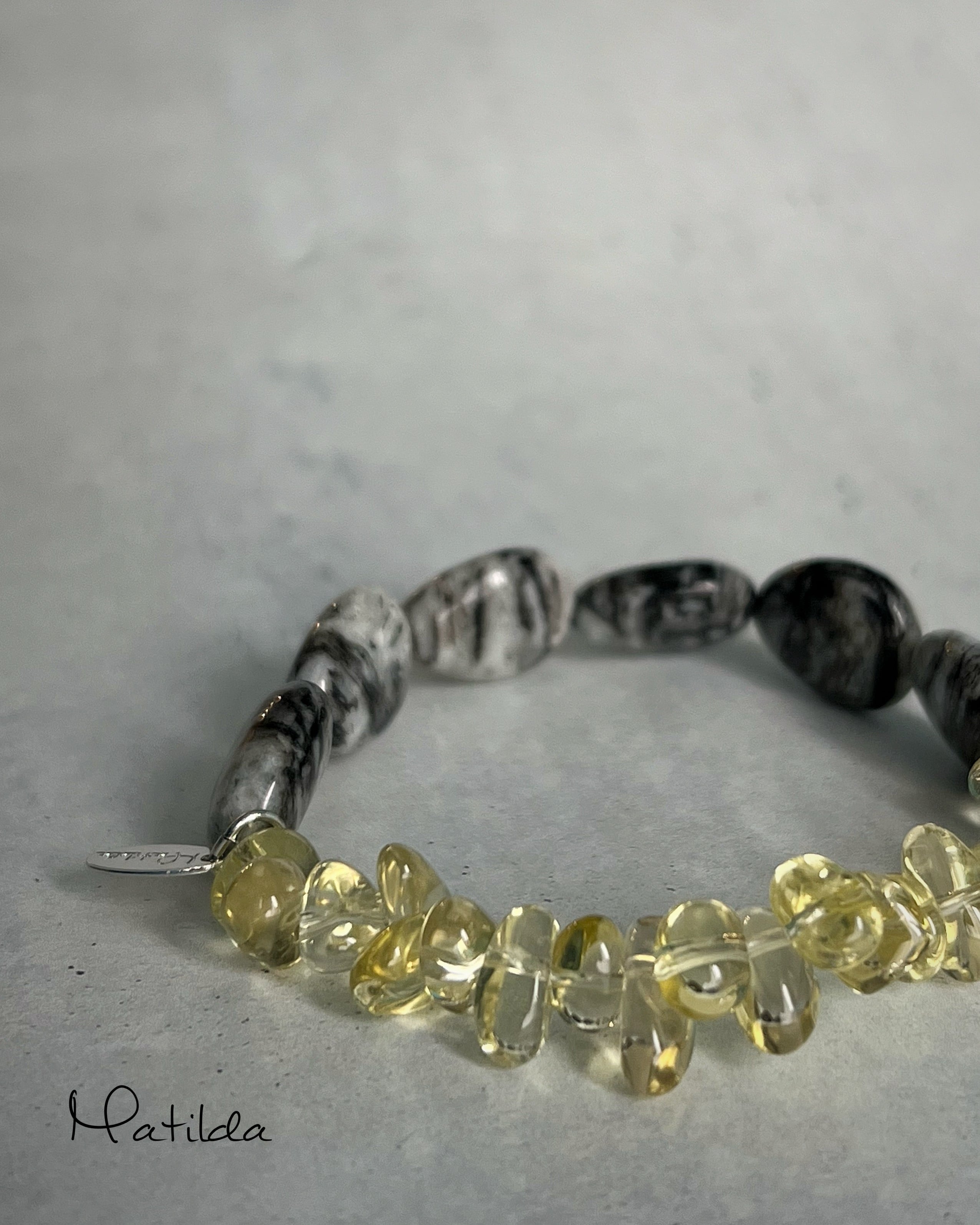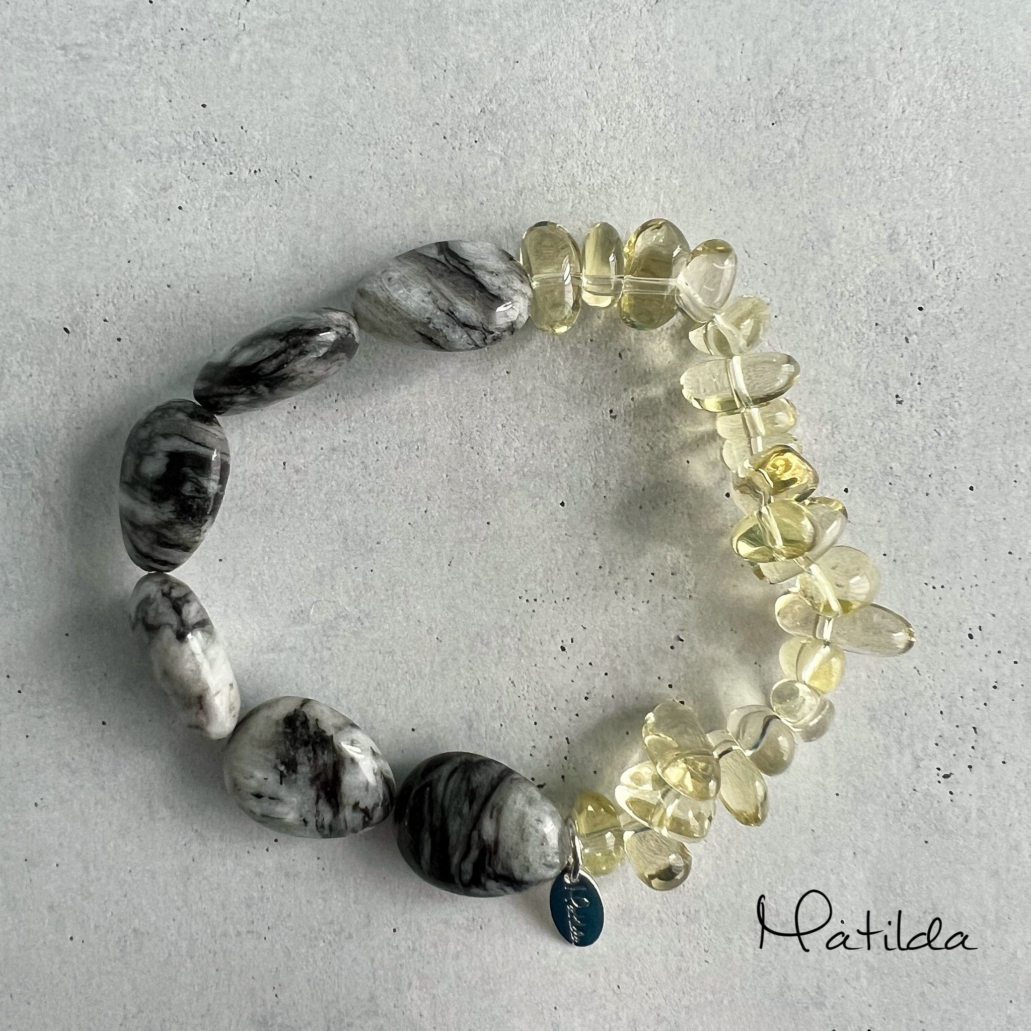 【再販】bicolor bracelet(レモンクォーツ×ゼブラジャスパー)