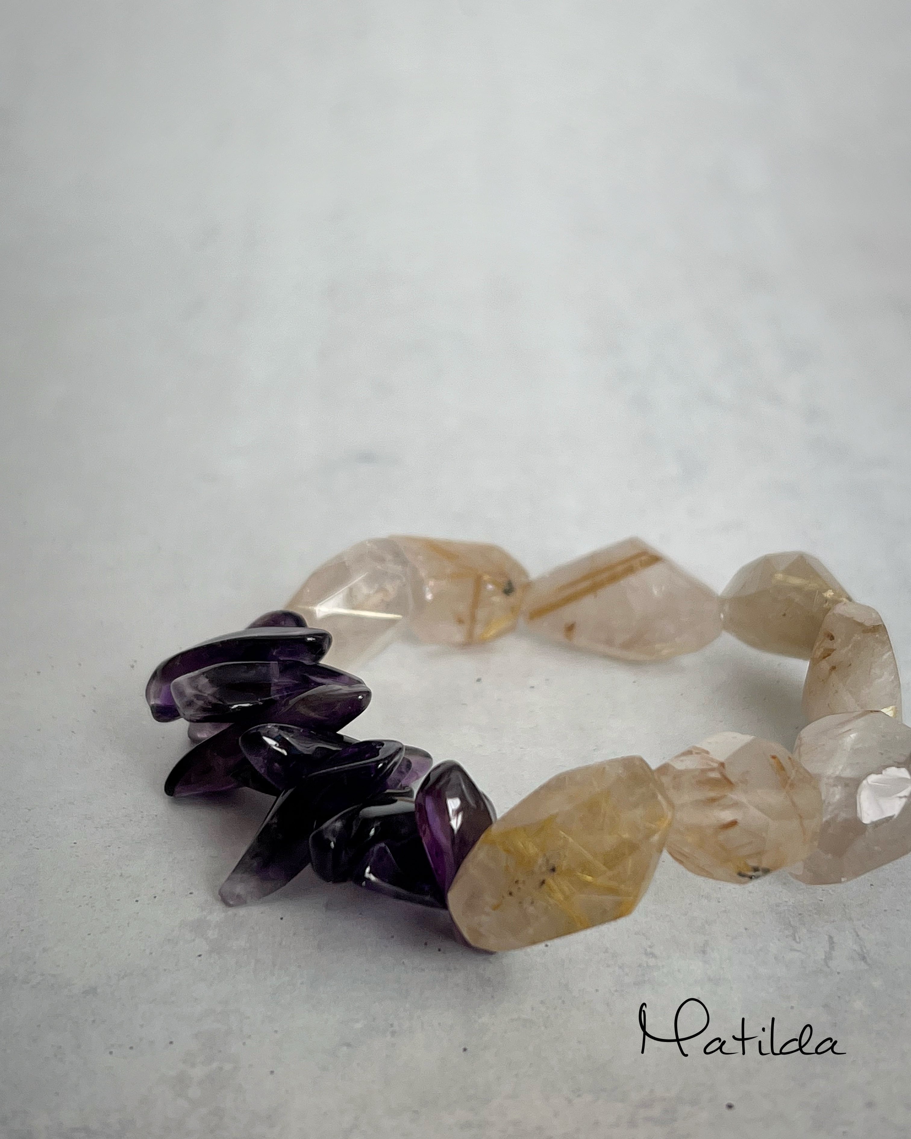 【再販】bicolor bracelet (ルチルクォーツ×アメジスト)