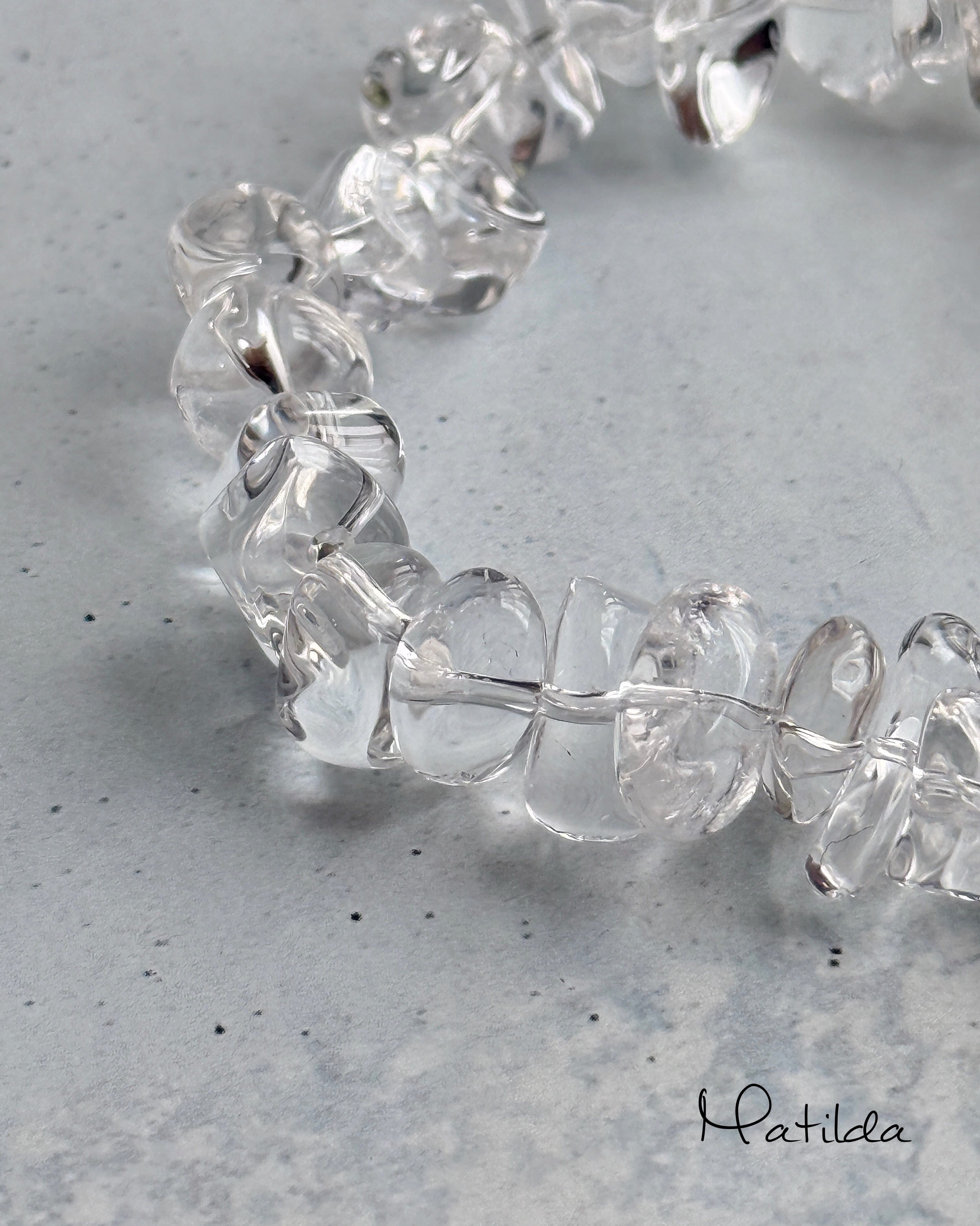 鮮やかなアクアブルーが晴れやかなアマゾナイトを、抜けるような透明感が凛々しいクォーツのチップとペアリング。